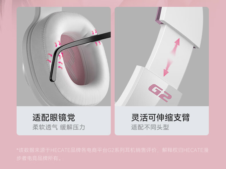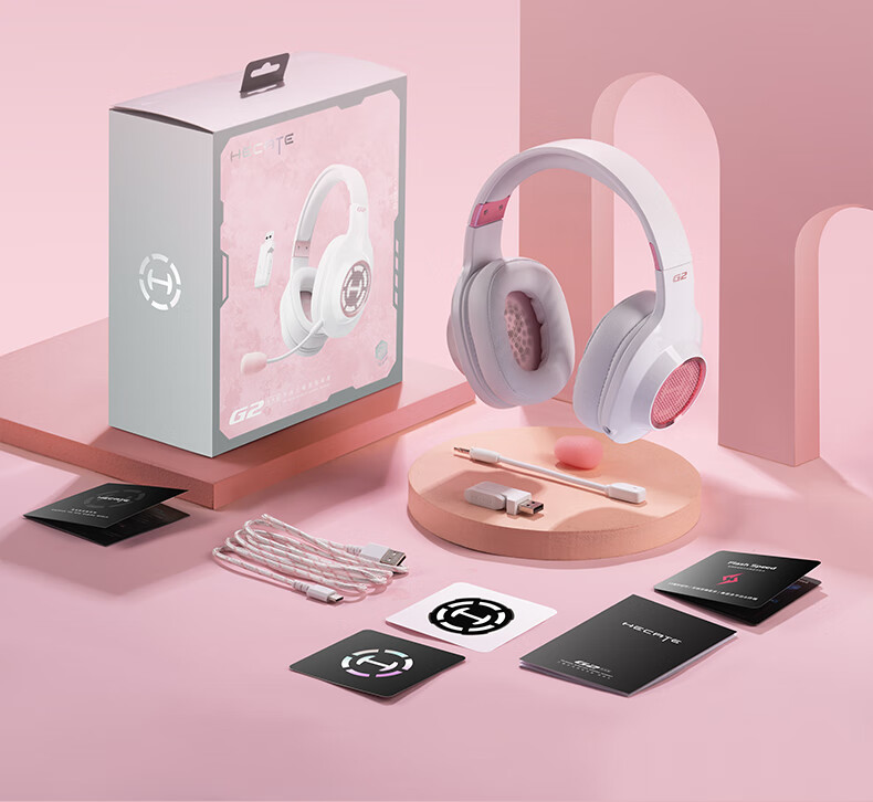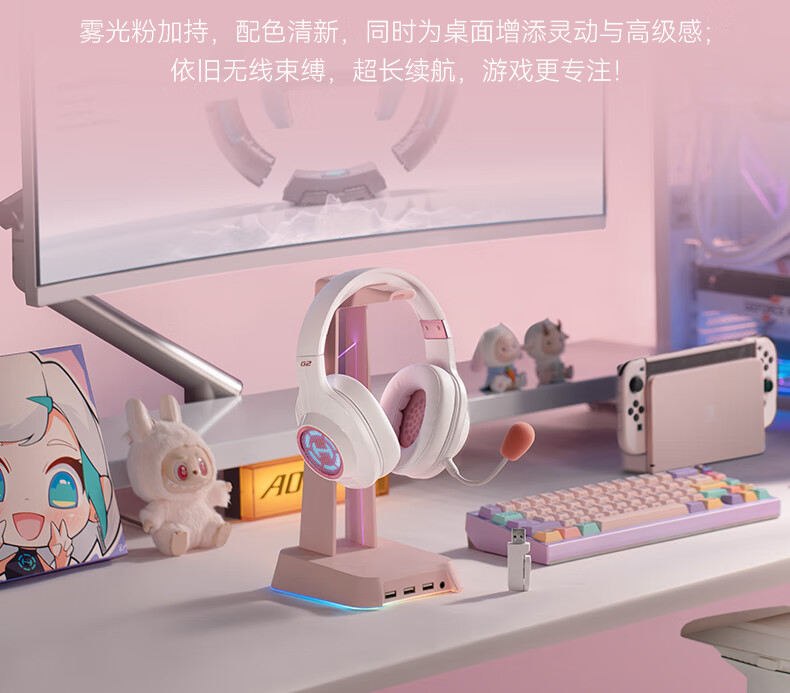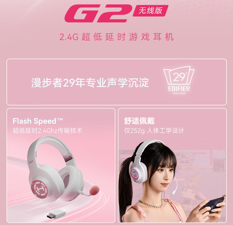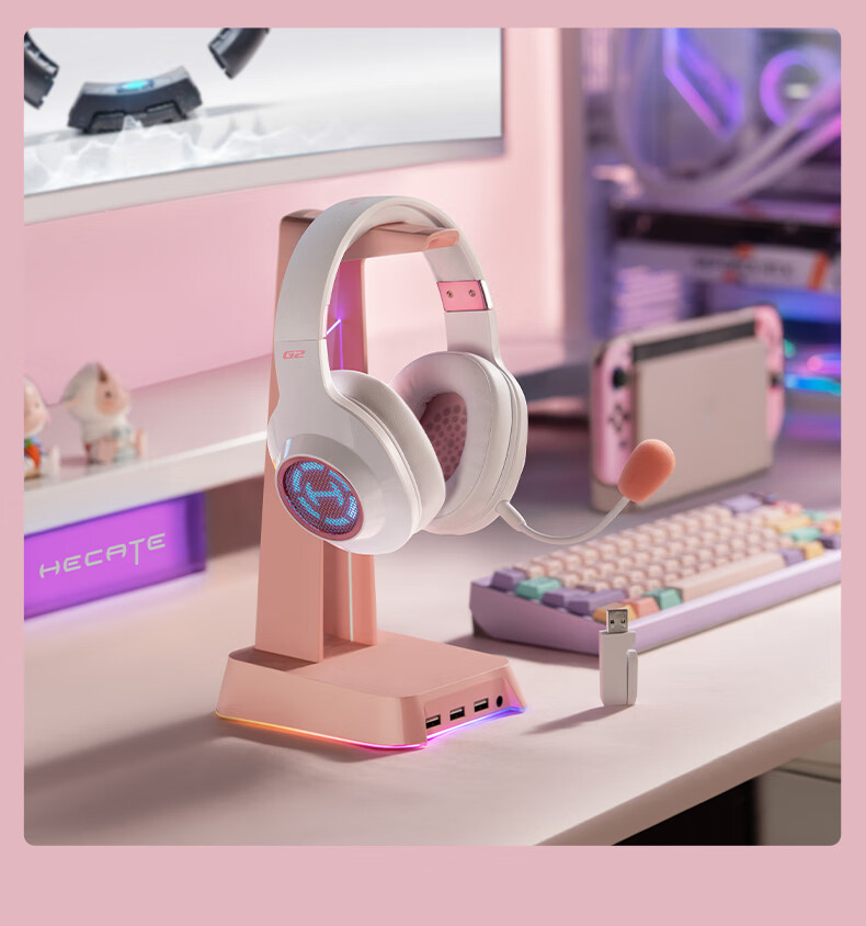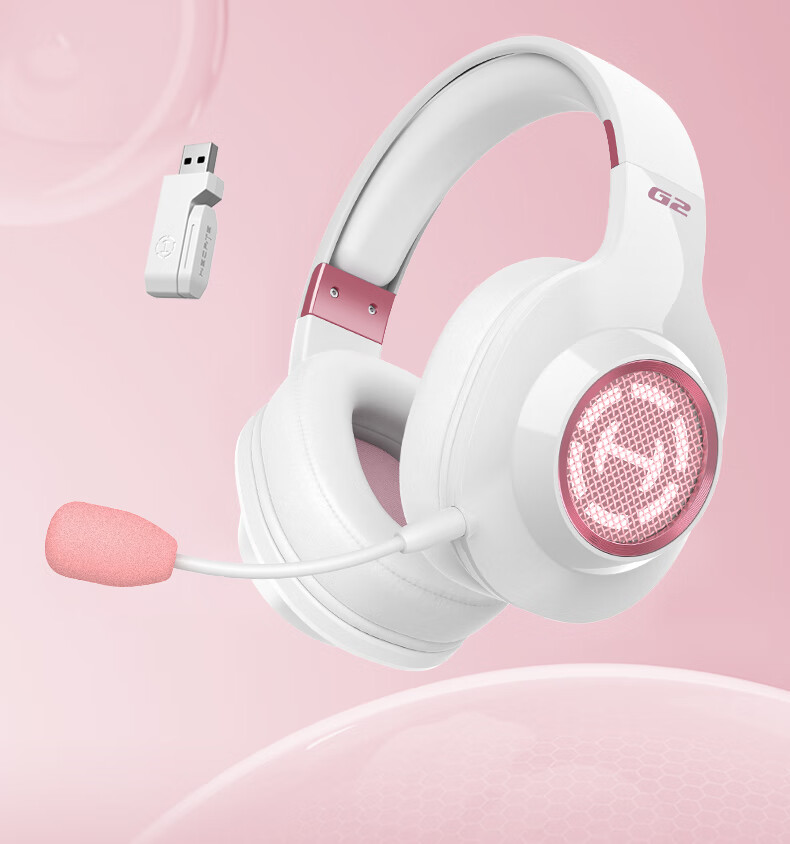 漫步者(EDIFIER)HECATE G2无线版 2.4G有线蓝牙四模头戴式耳机电竞游戏电脑无线专用三角洲FPS吃鸡无畏契约 雾光粉
