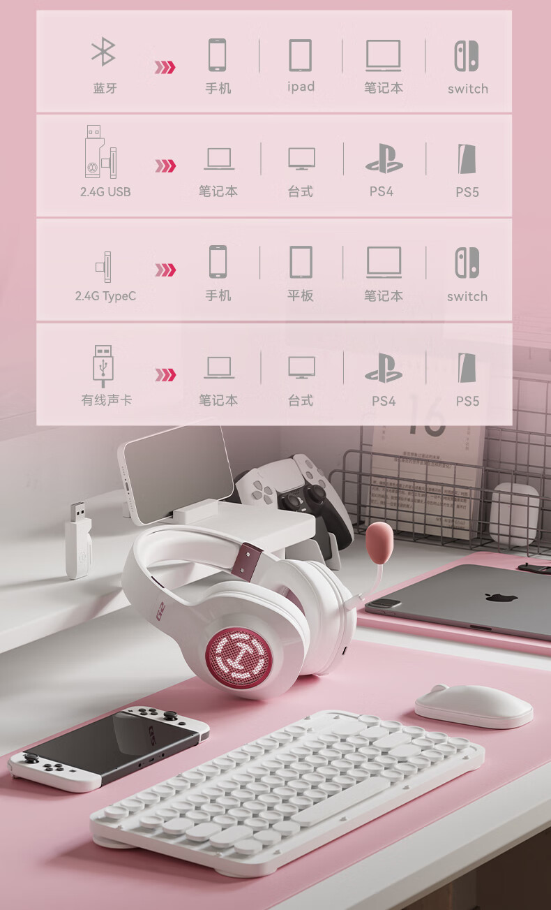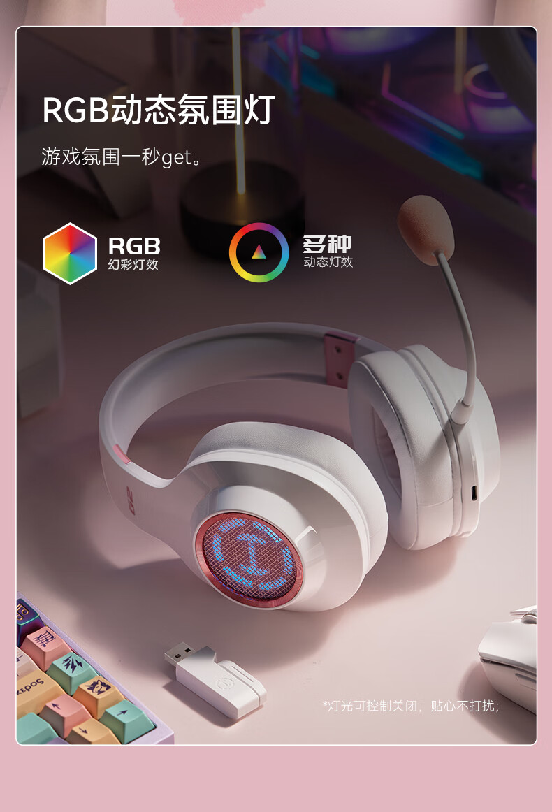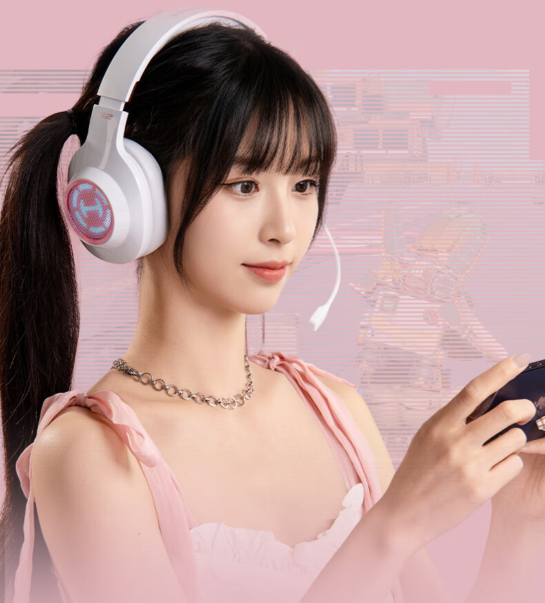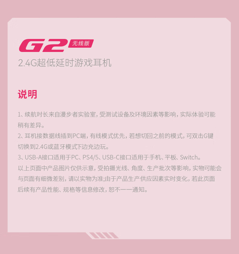 漫步者(EDIFIER)HECATE G2无线版 2.4G有线蓝牙四模头戴式耳机电竞游戏电脑无线专用三角洲FPS吃鸡无畏契约 雾光粉