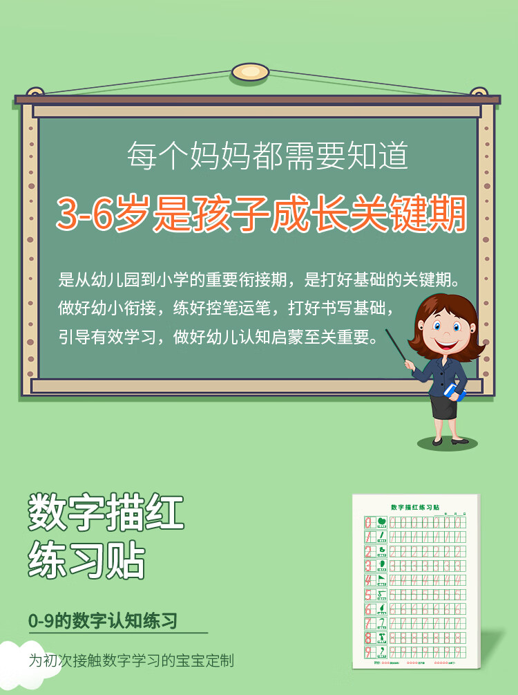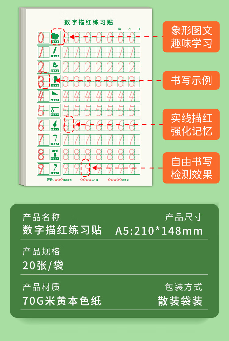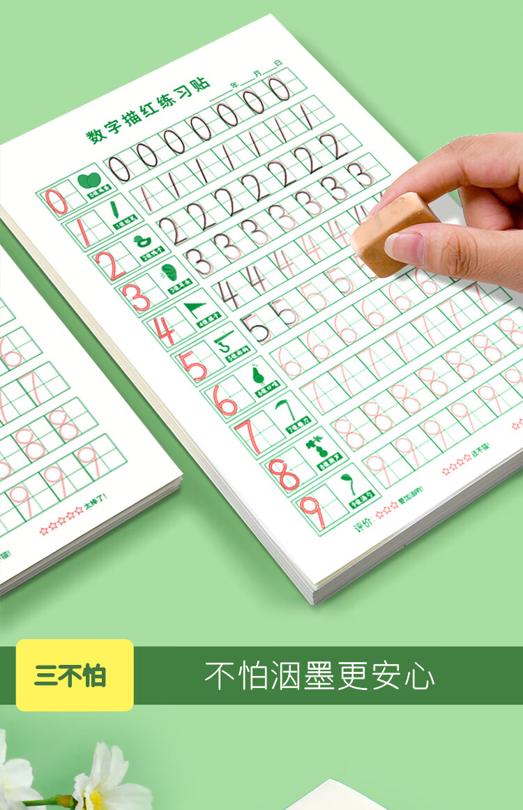 多利博士40张数字描红本幼儿3-6岁幼小衔接小学生一年级控笔训练幼儿园学前班启蒙0-9数字练字帖学习必备