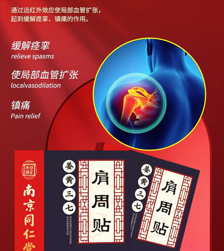 南京同仁堂肩周炎专用膏药贴肩膀疼痛僵硬抬臂困难胳膊抬不起来肩袖损伤撕裂 特效一盒【肩周疼痛】多买多送 日本进口严重肩周珍疏服贴神器