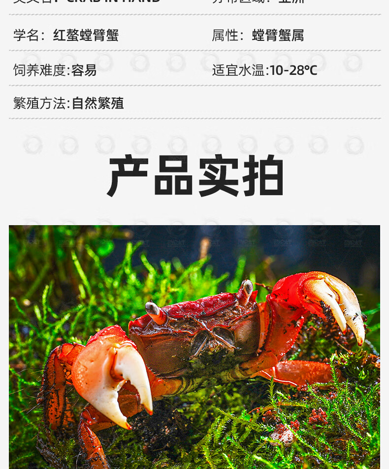 百纶木千红鳌相手蟹招财蟹活体宠物螃蟹淡水深水观赏蟹鱼缸除藻将军相守蟹 2.5-3cm背甲相手蟹6只送饲料