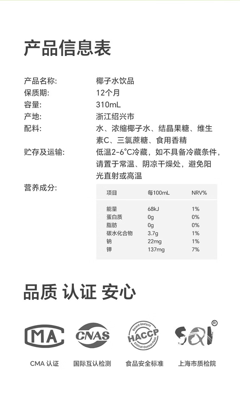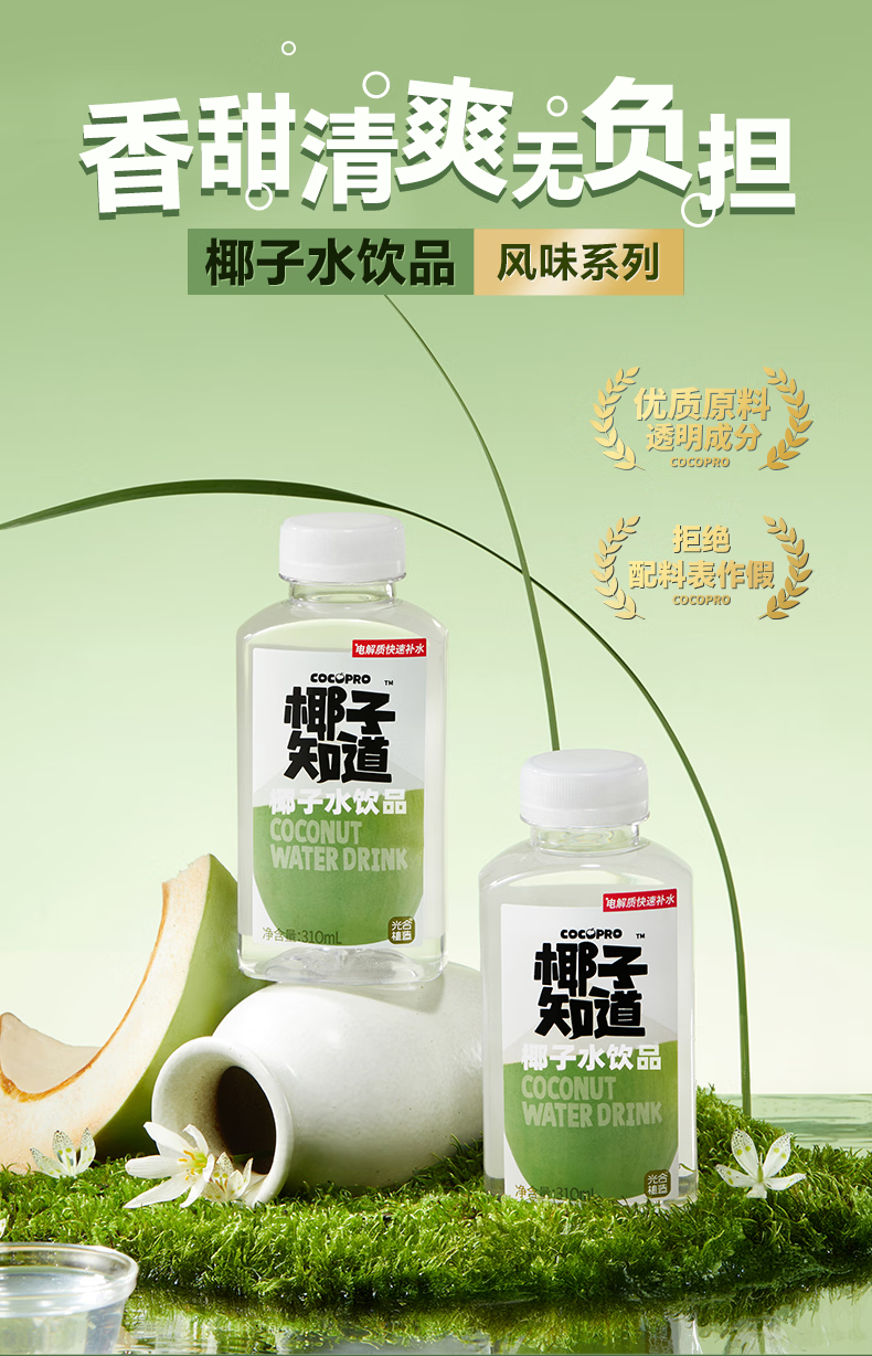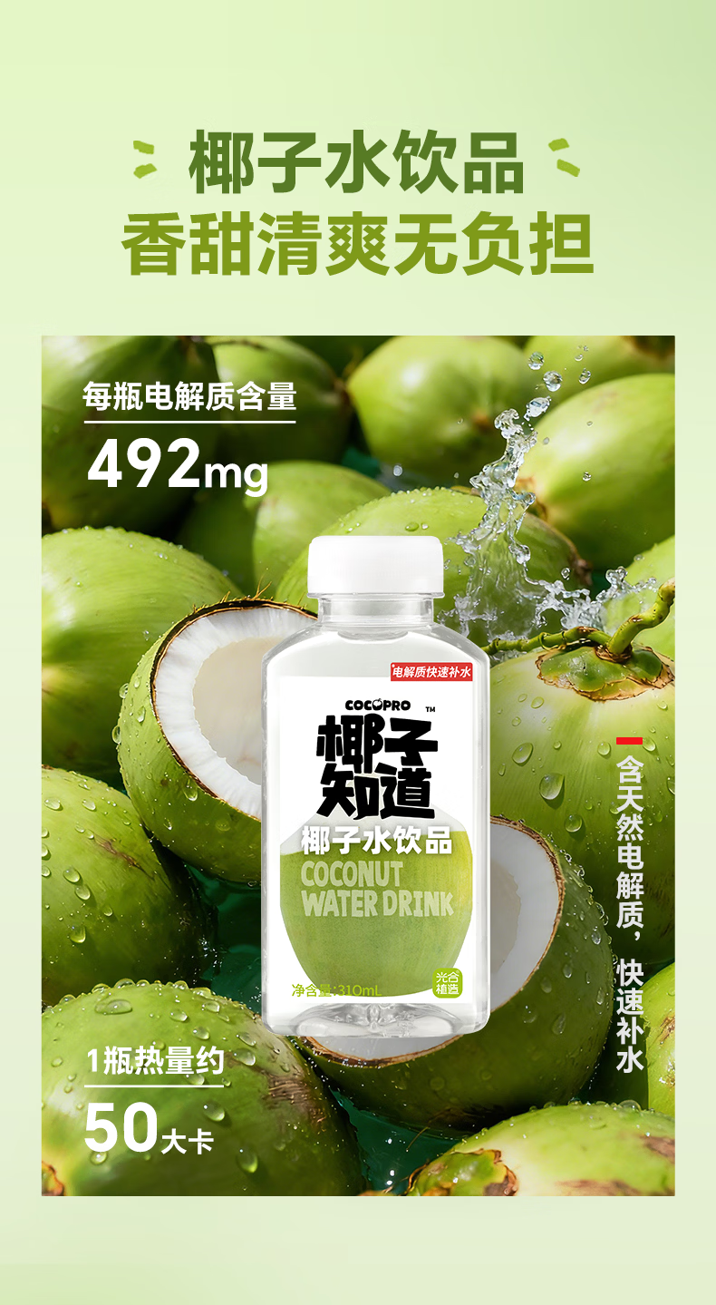 椰子知道椰子水风味饮料天然电解质水果汁饮料原浆整箱310ml 0糖鲜椰汁200ml*6盒
