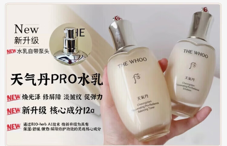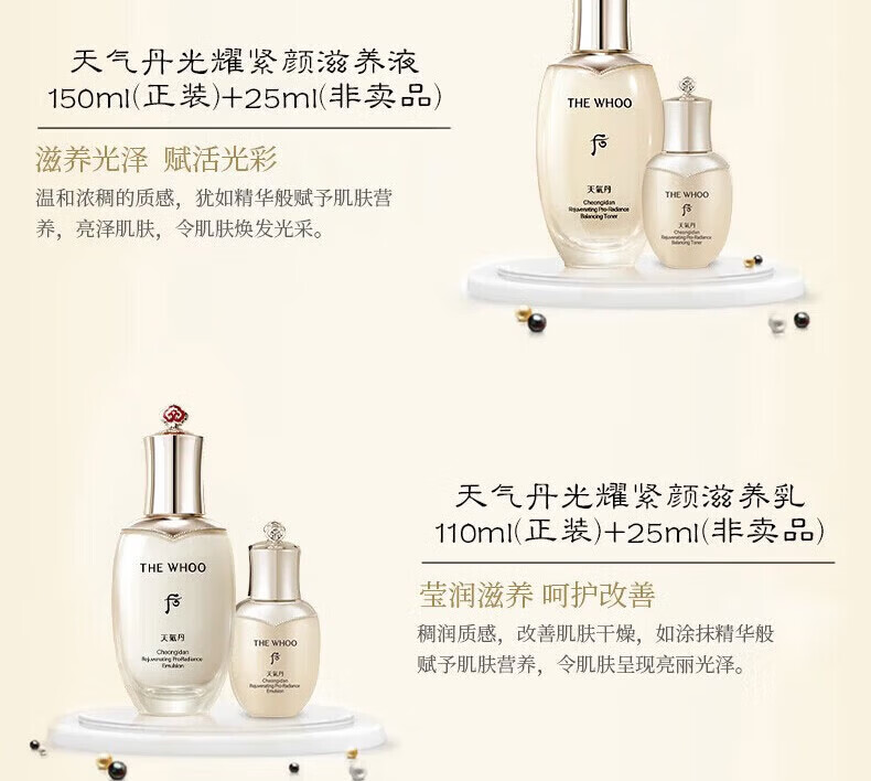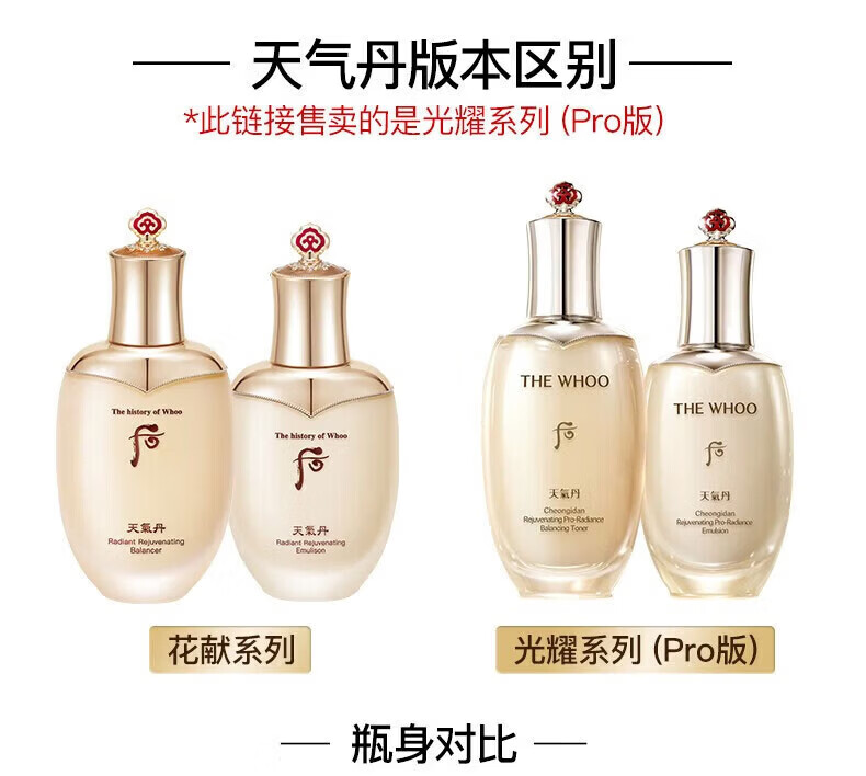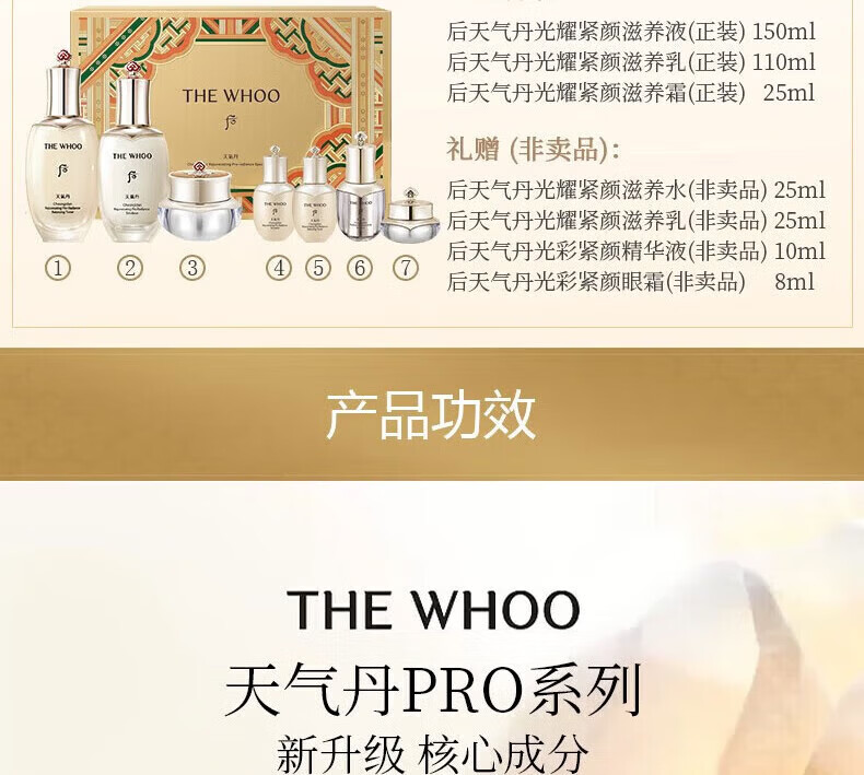 后(The history of Whoo)韩国免税版后天气丹光耀焕活PRO水乳套装护肤品礼盒套盒生日礼物 新版光耀紧颜【八件套】