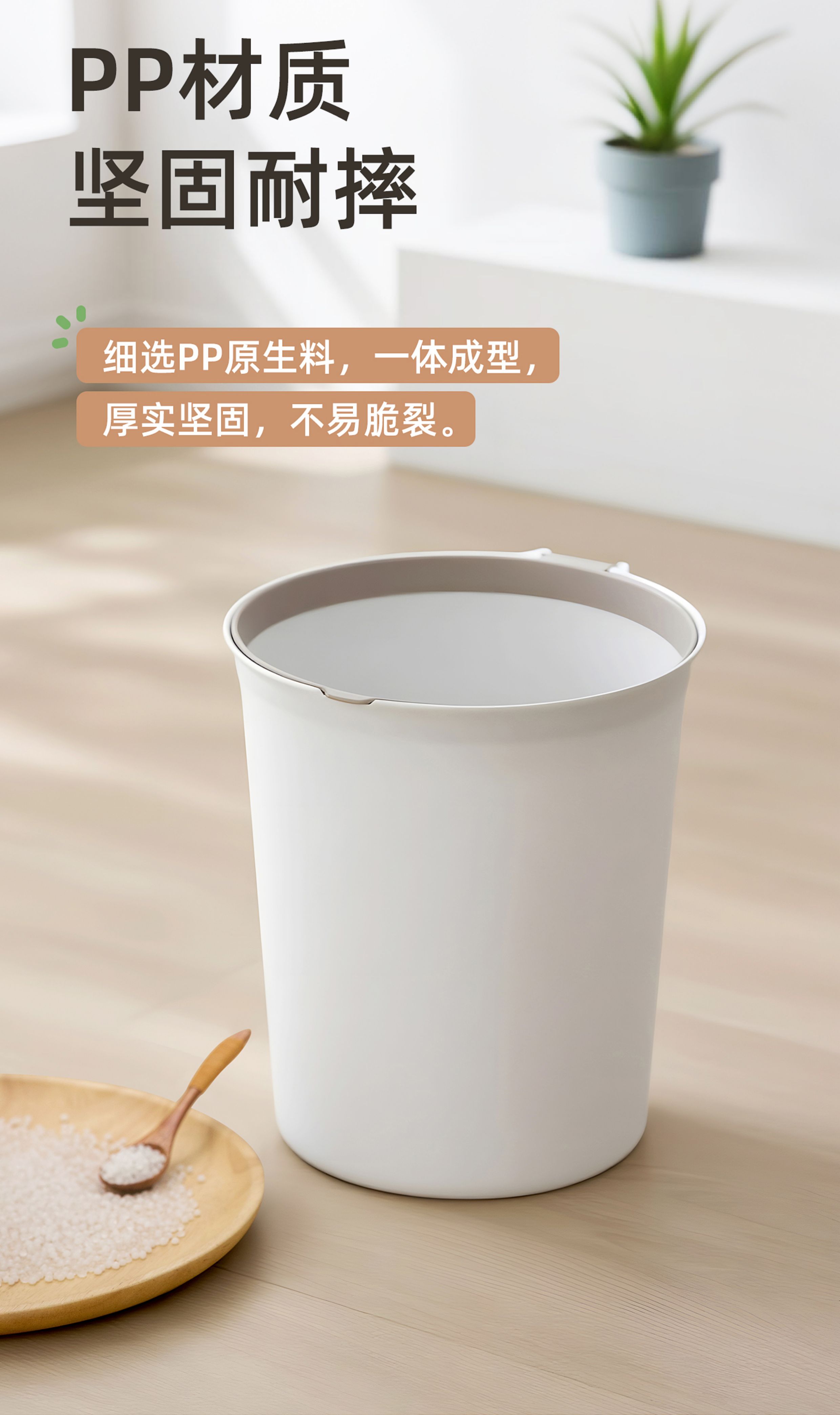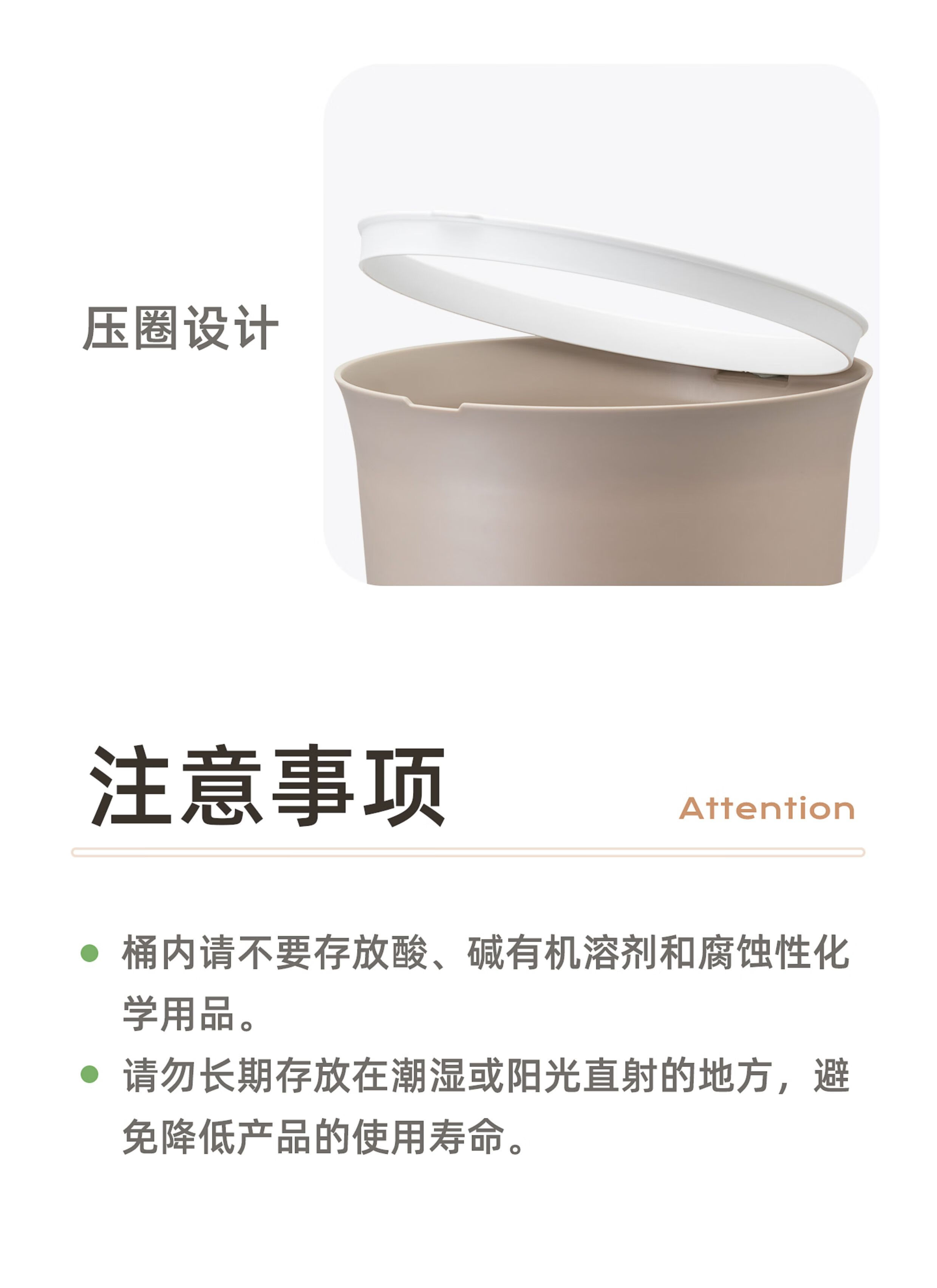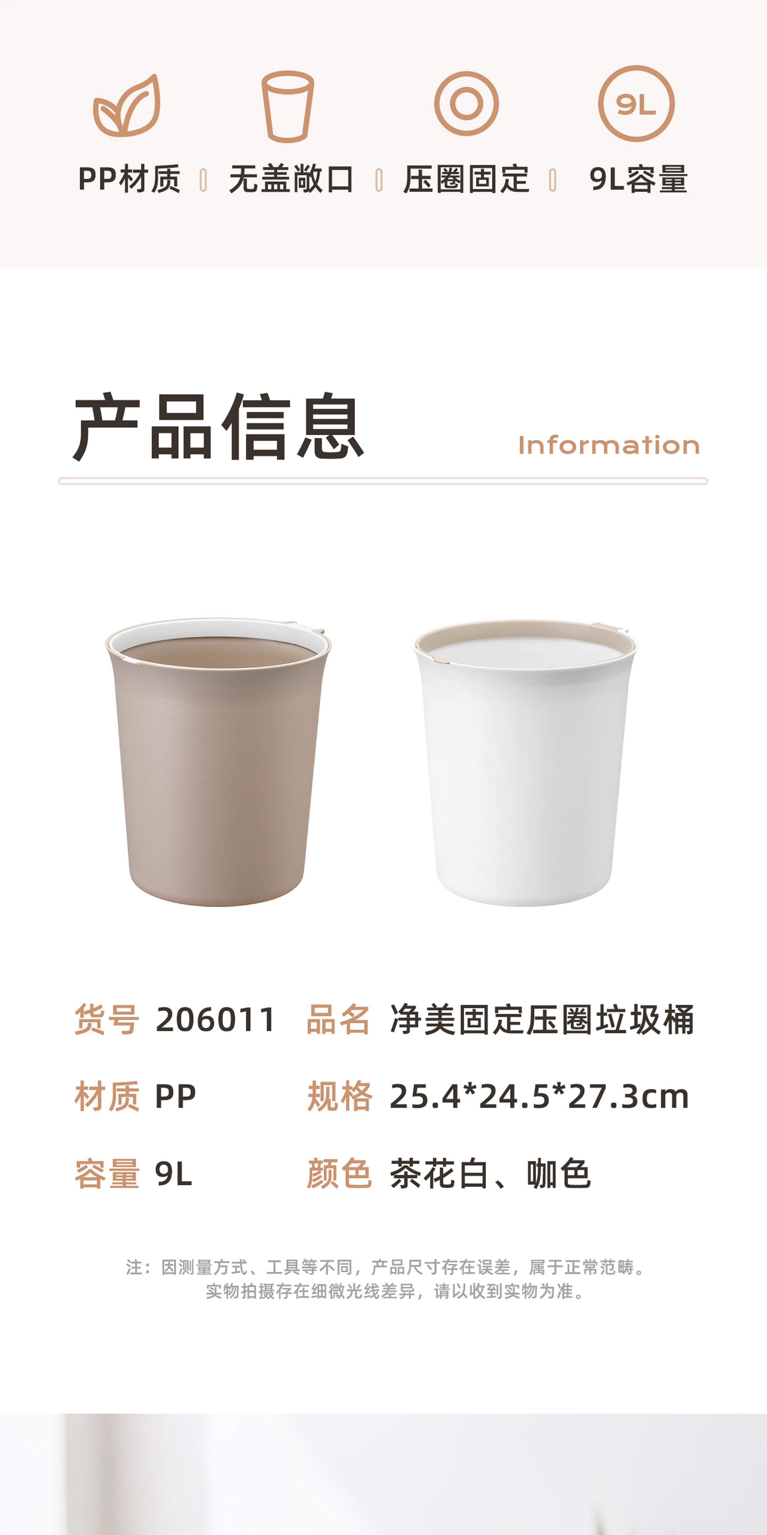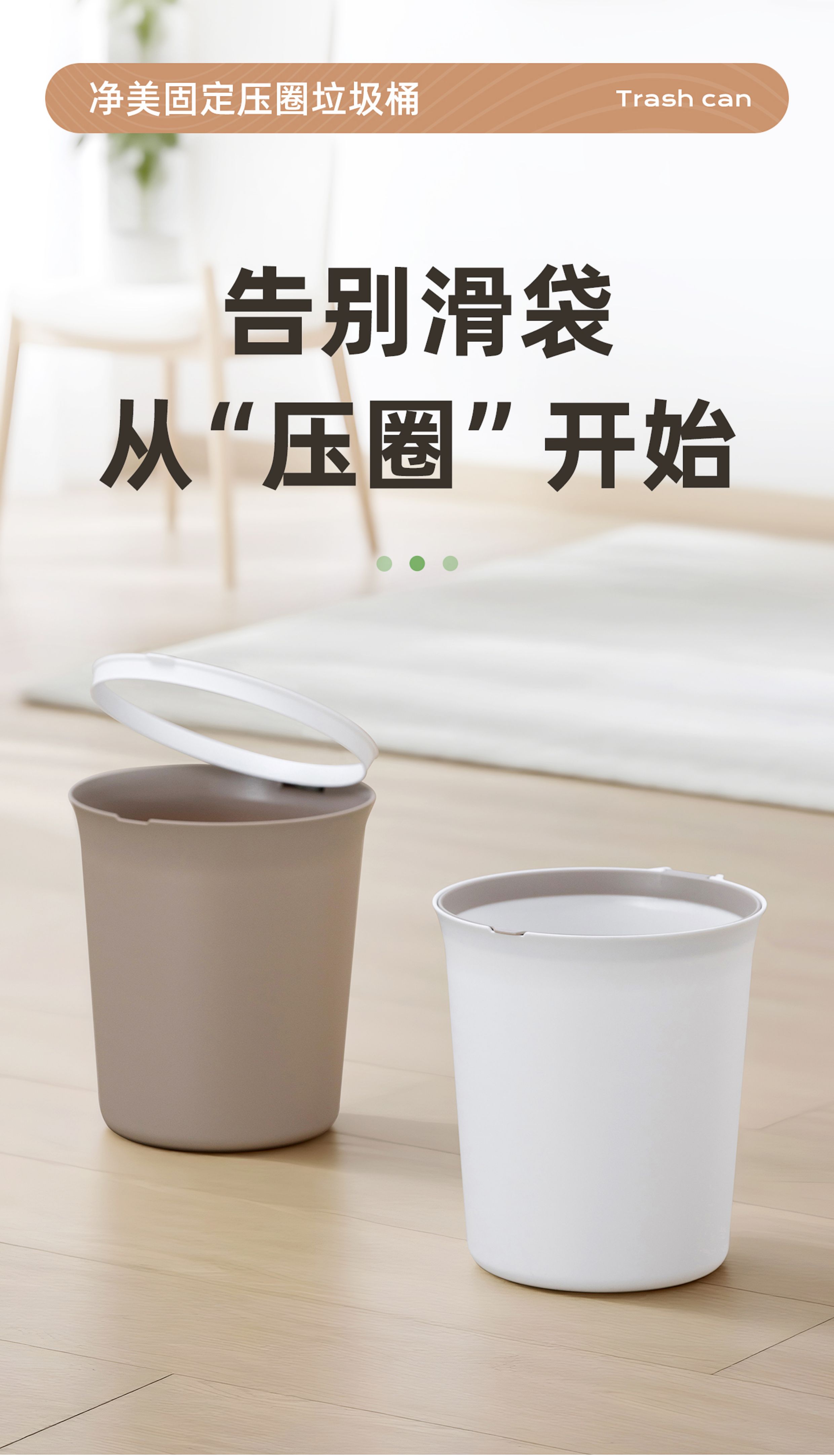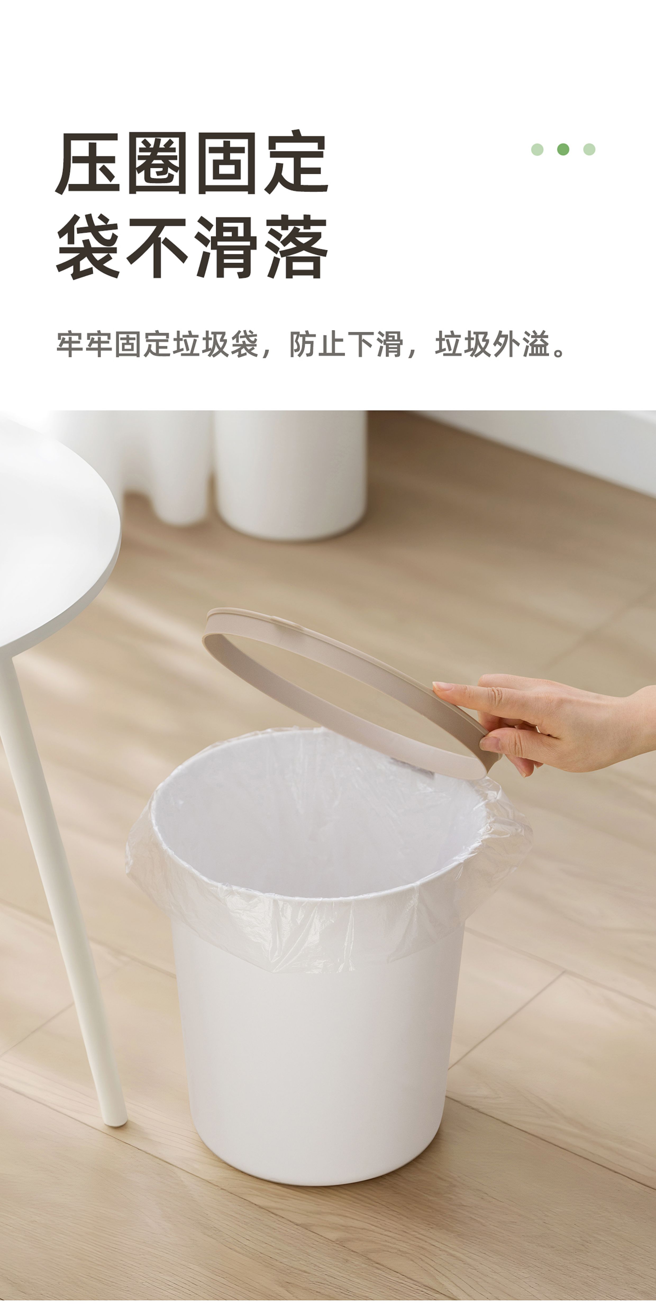 茶花垃圾桶家用压圈大号大容量客厅卧室卫生间厨房宿舍新款高颜值好物 【9L-白色+咖色】压圈固定 大敞口 9L 无规格