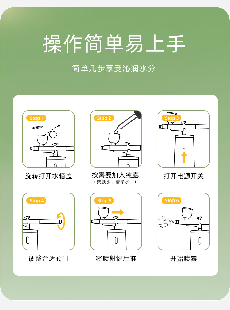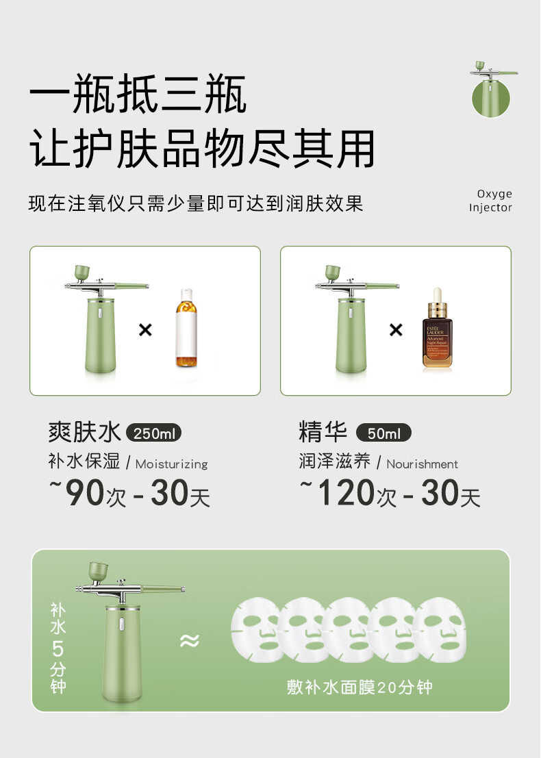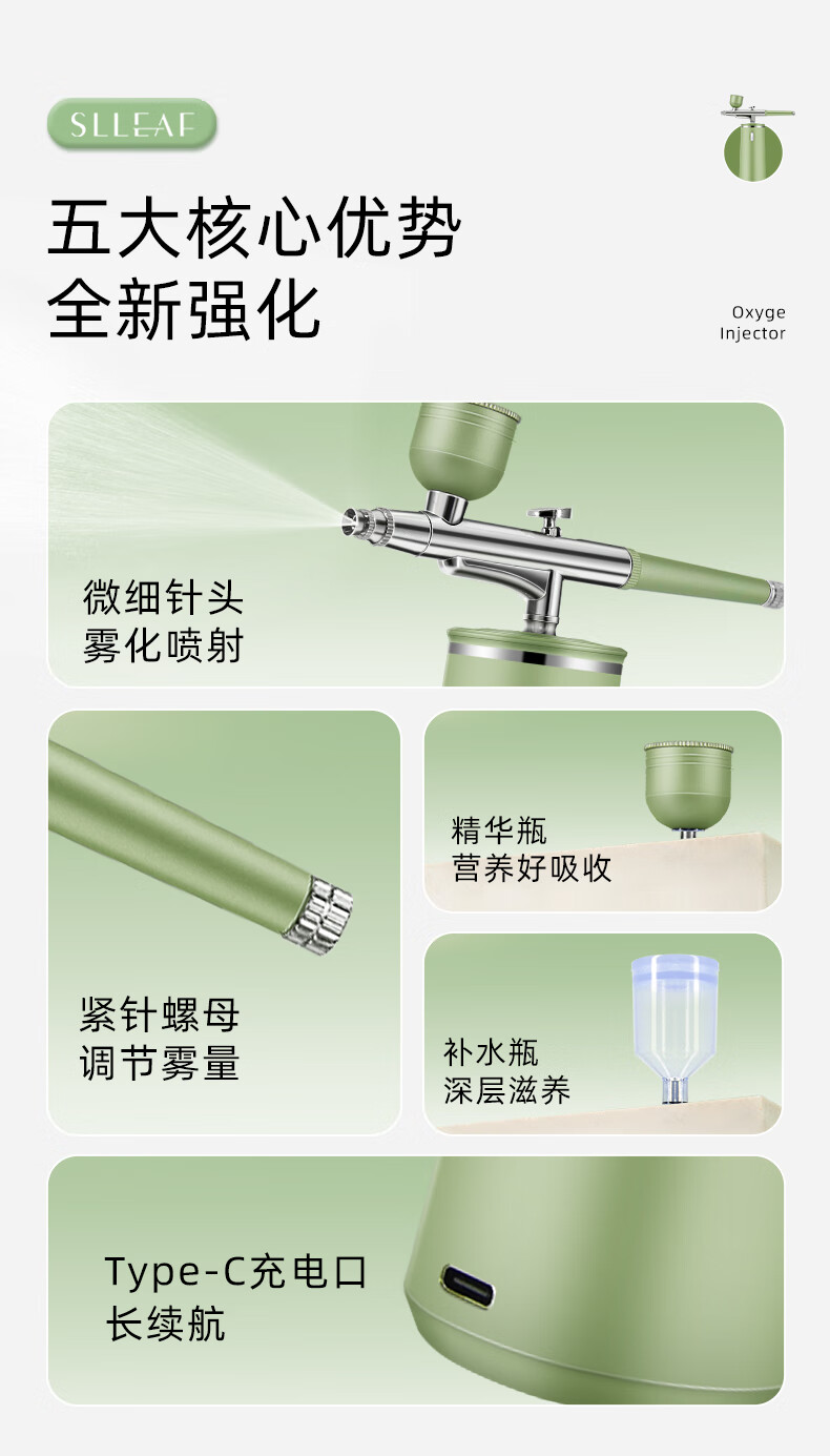 SLLEAF 素沭注氧仪家用补水仪精华水保湿冷喷机便携式手持面部水光仪脸部喷雾器送男女生女孩生日礼物 莲雾白