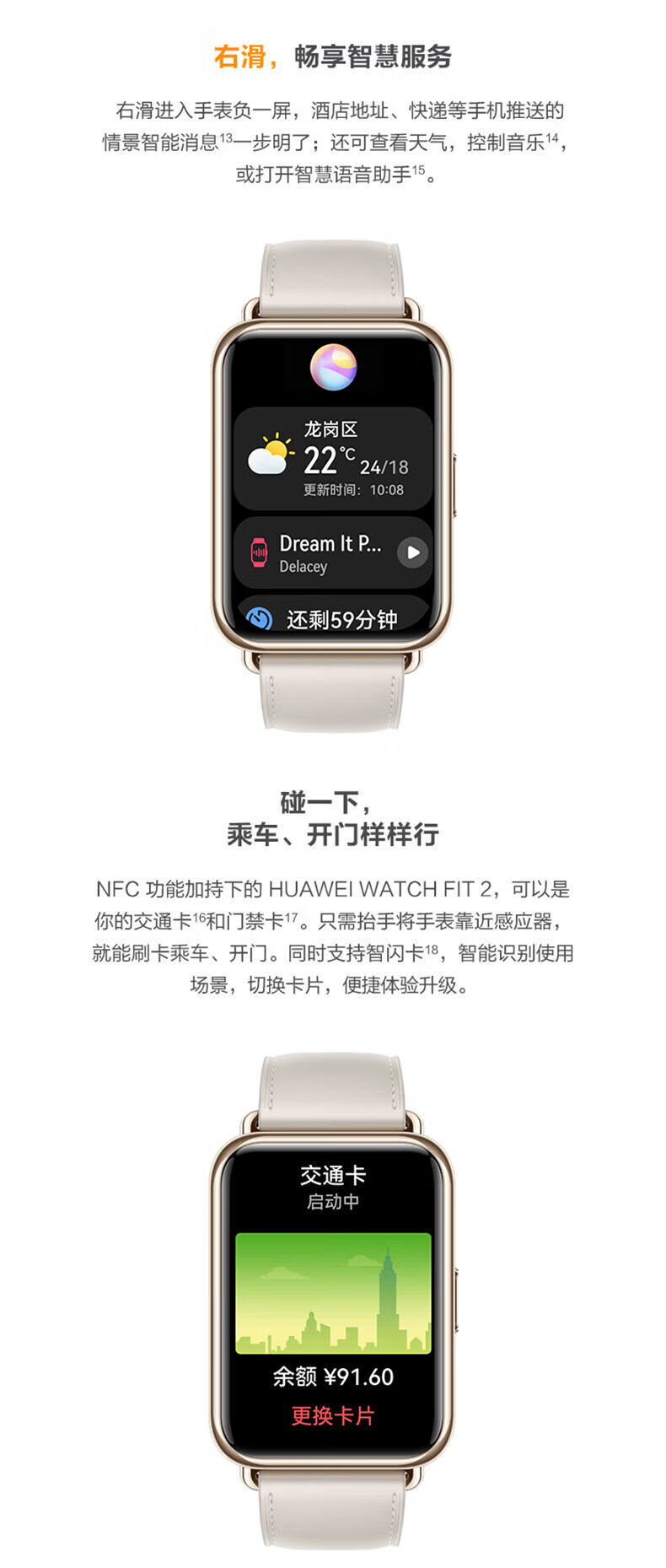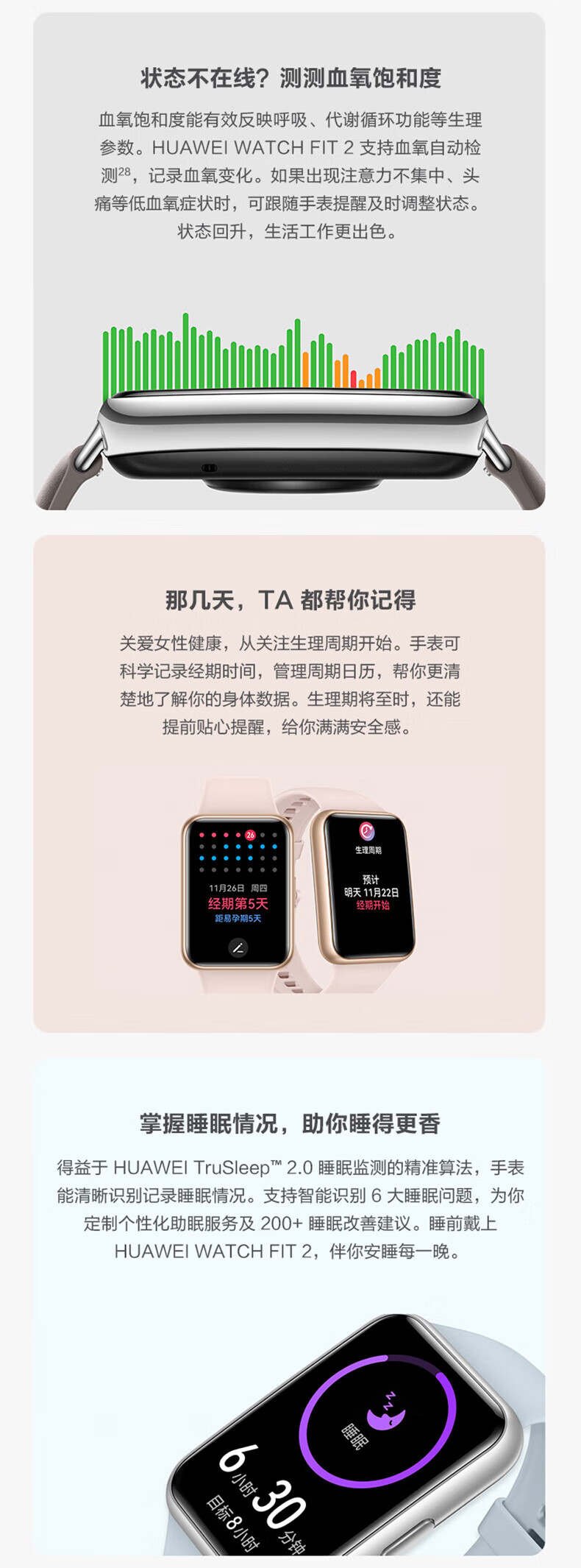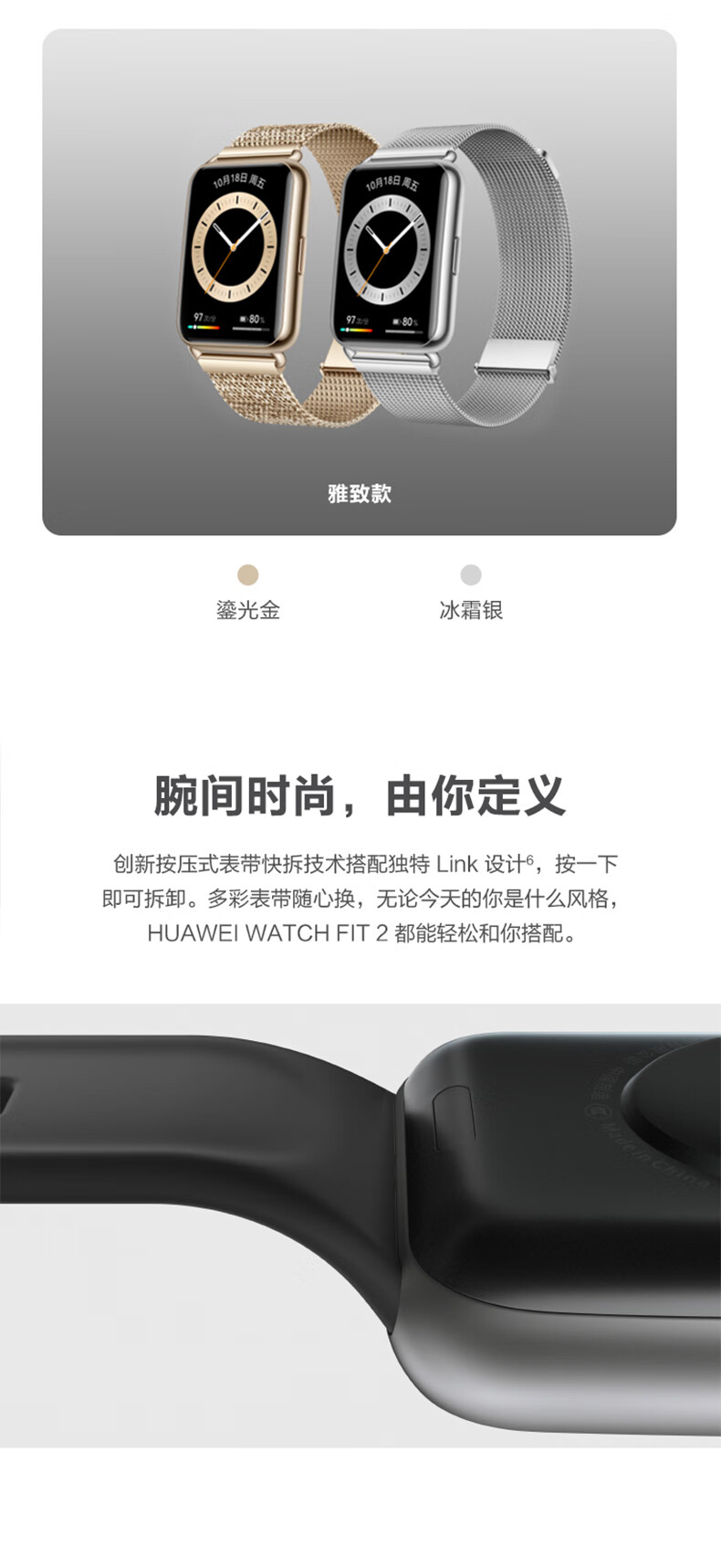 华为(HUAWEI)【送女神礼物推荐】华为手表Watch Fit女士款运动2代智能睡眠游泳NFC女友礼物血氧监测97种运动模 升级NEW雅致款-曜石黑-晒单送米兰玫瑰金钢带