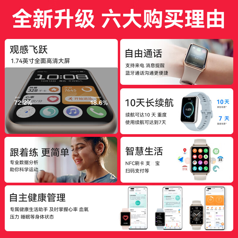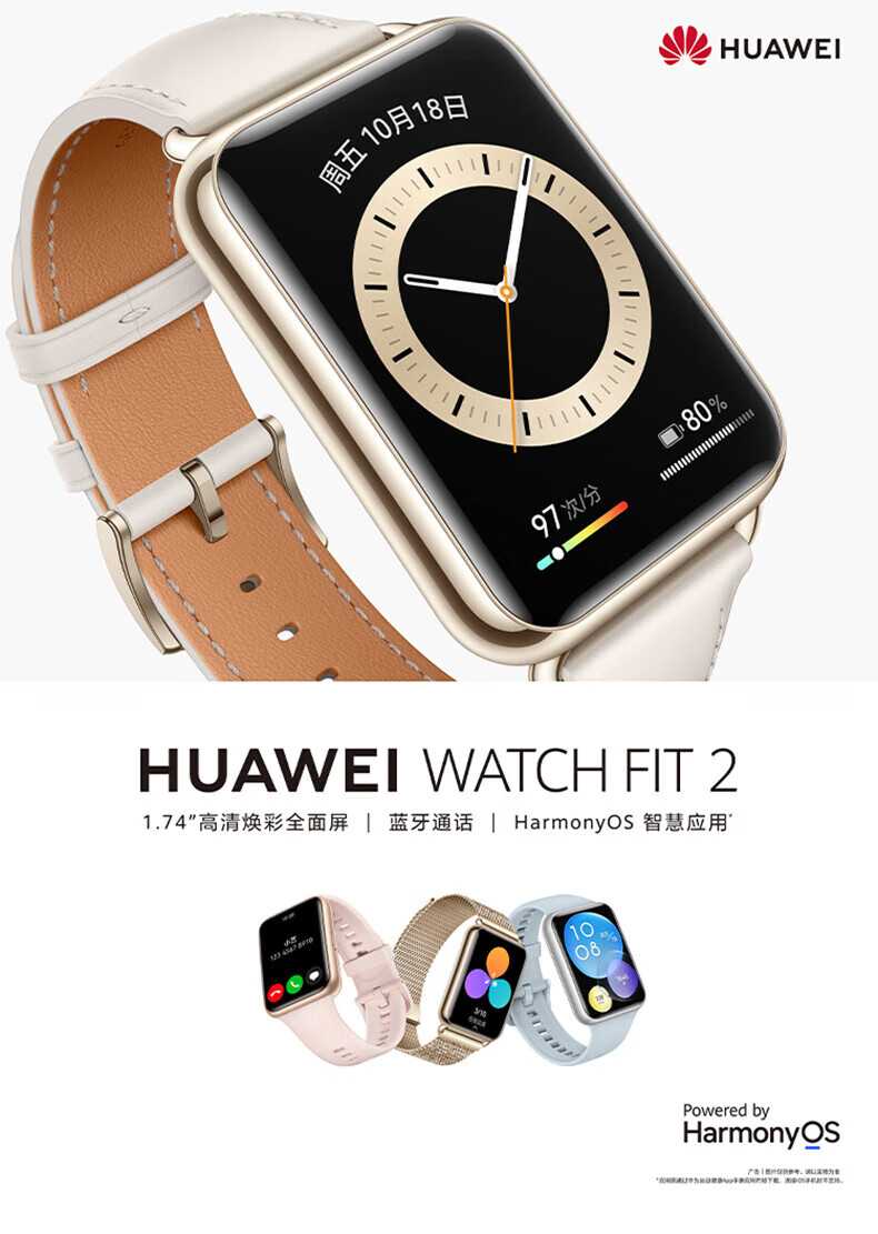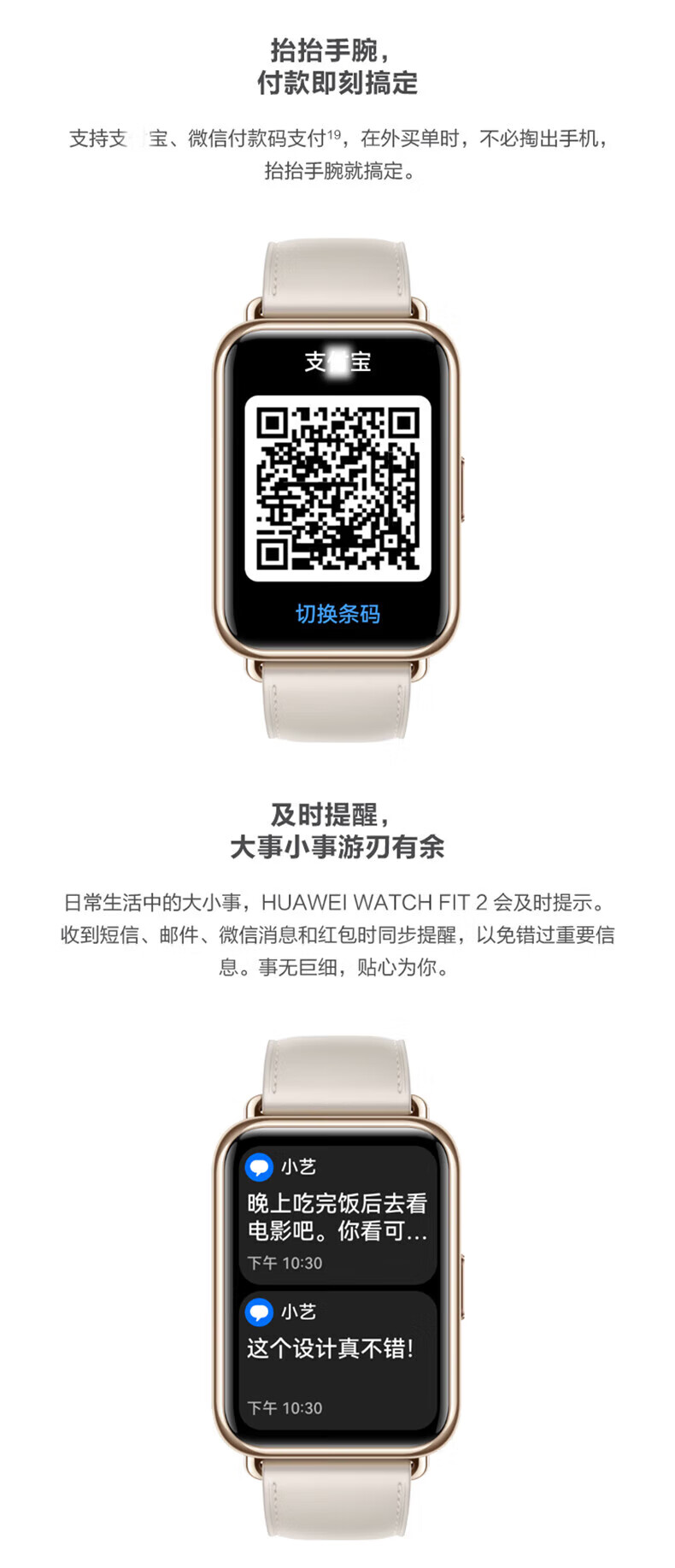 华为(HUAWEI)【送女神礼物推荐】华为手表Watch Fit女士款运动2代智能睡眠游泳NFC女友礼物血氧监测97种运动模 升级NEW雅致款-曜石黑-晒单送米兰玫瑰金钢带