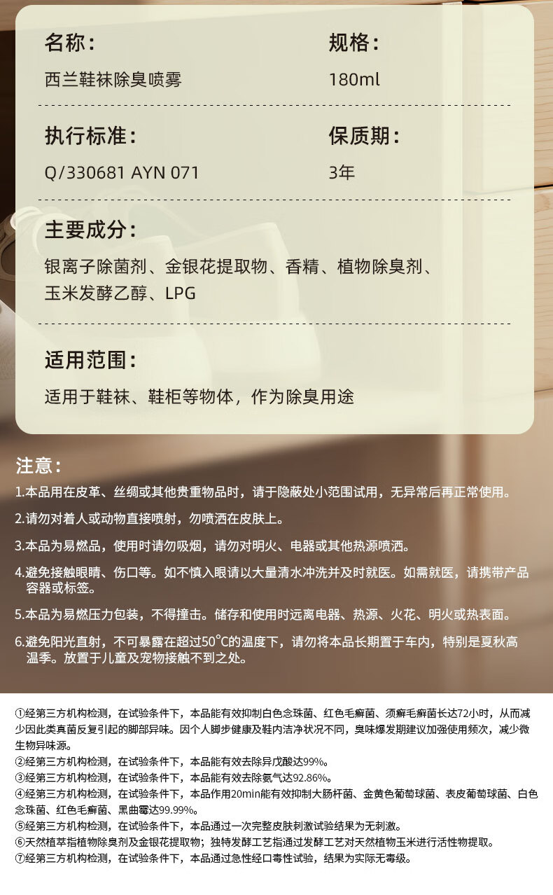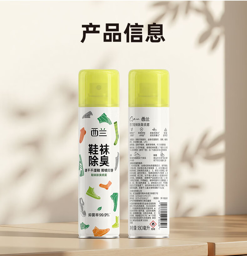 西兰鞋袜除臭喷雾180ml球鞋运动鞋鞋柜防臭抑菌除臭速干去味脚气杀菌