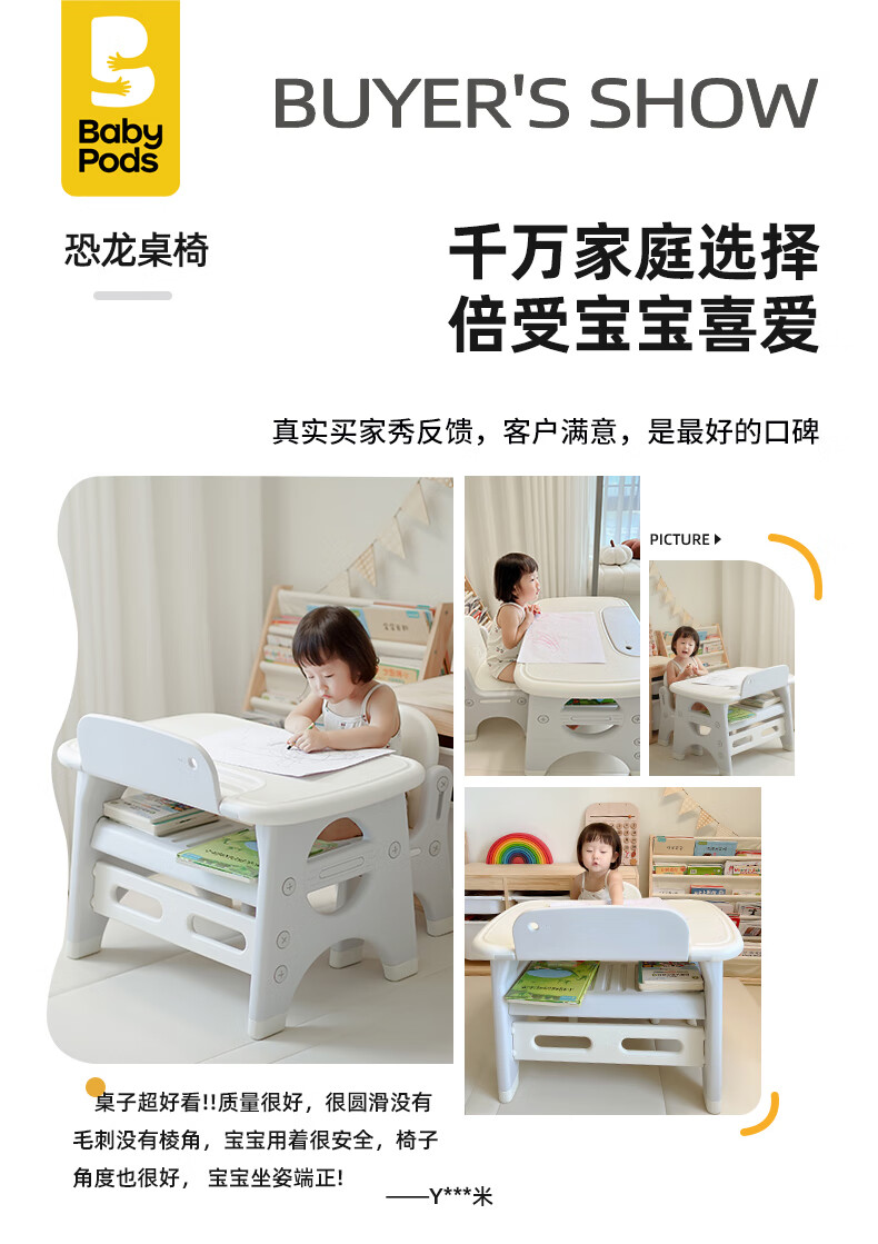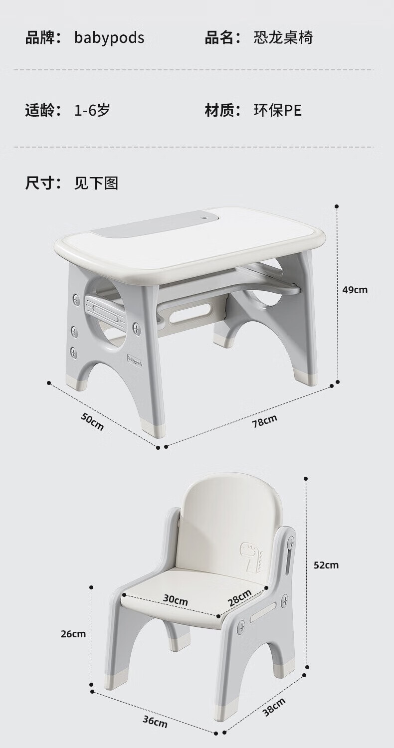 babypods儿童桌椅套装宝宝学习桌写字阅读区家用小桌子幼儿园游戏玩具桌
