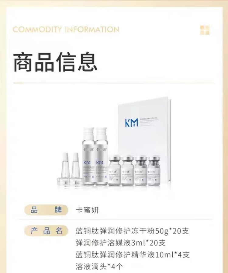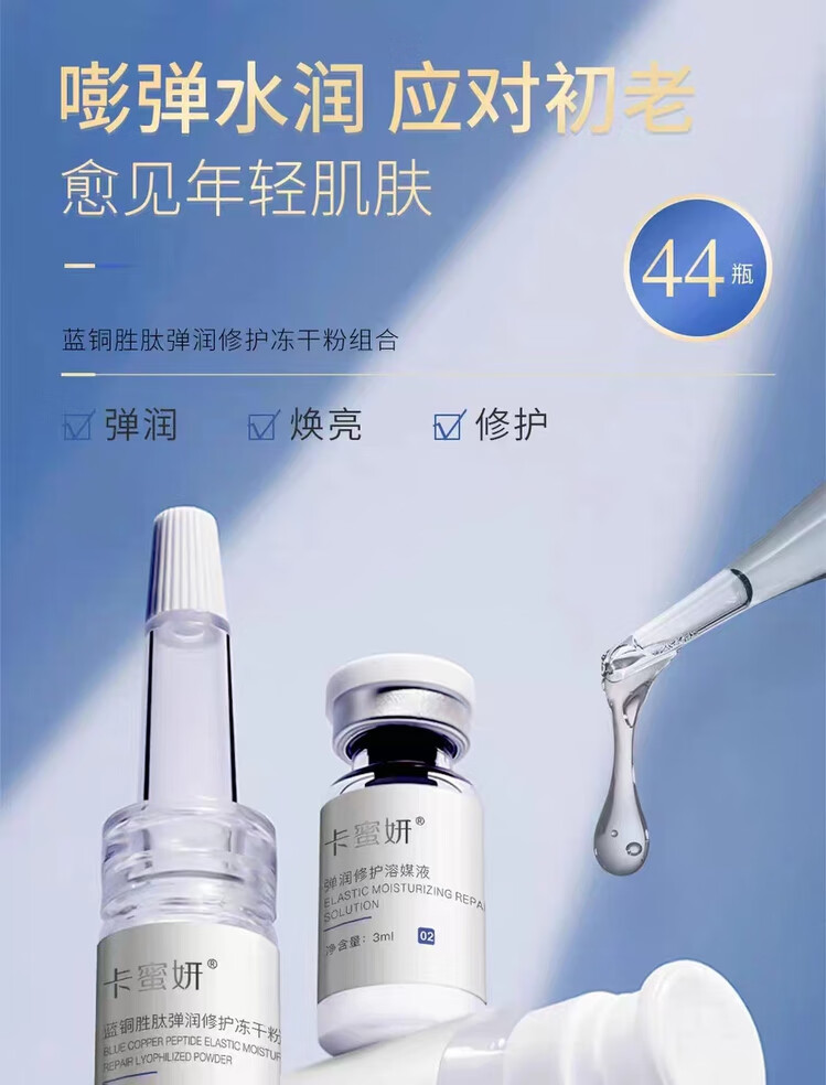 卡蜜妍蓝铜胜肽冻干粉术后修复医用皮肤屏障受损泛红祛斑美白祛黄提亮肤 1盒 44支 礼盒装(激光祛斑术后修复) 升级款(礼盒包装)