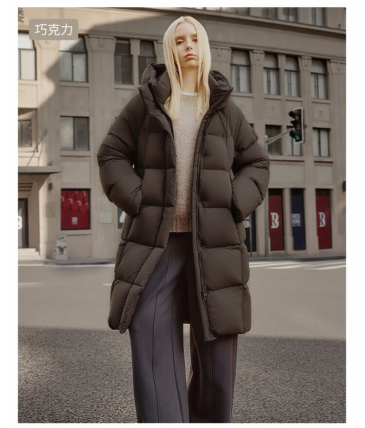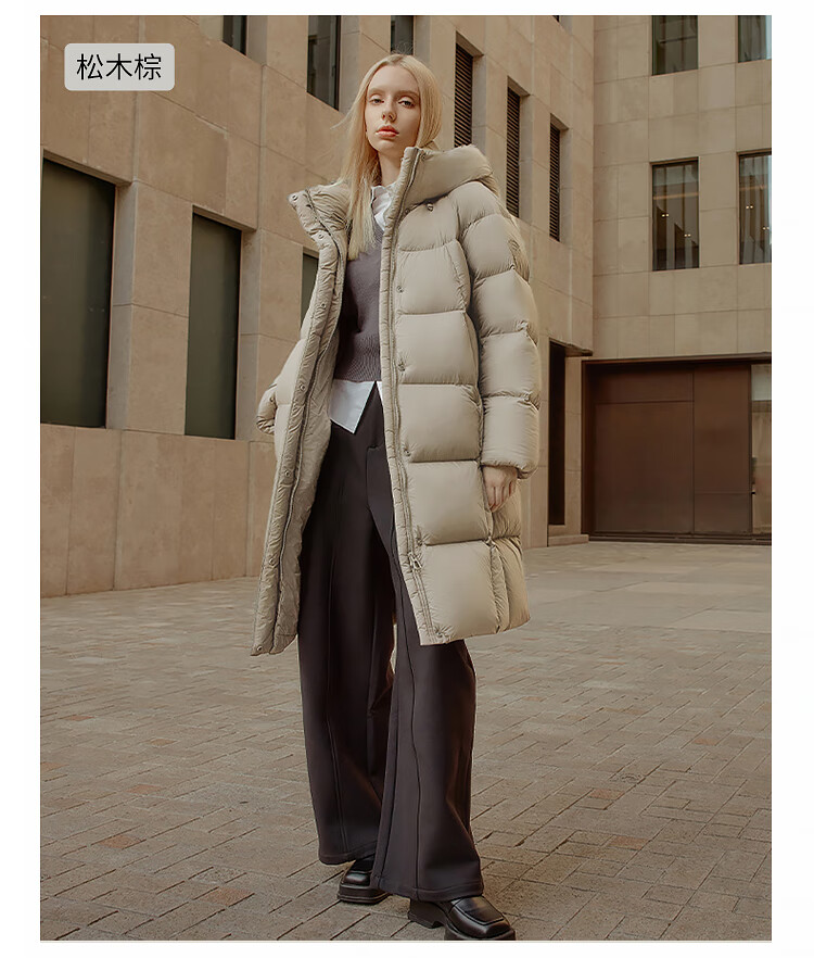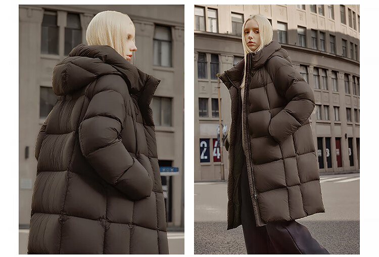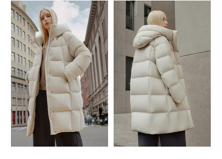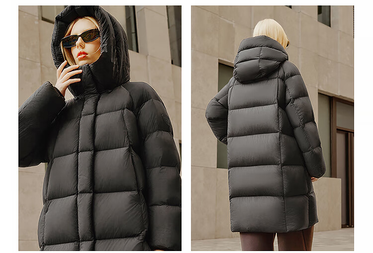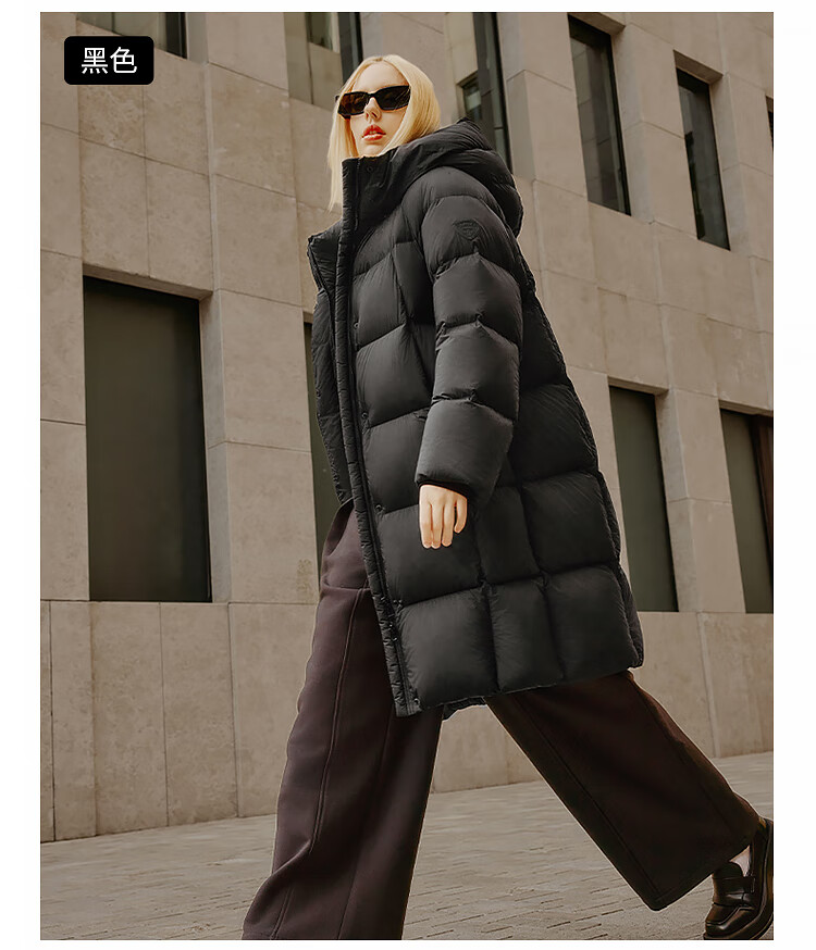 坦博尔高充绒冬季热卖连帽羽绒服女中长款加厚保暖泡芙外套TBF530780J 黑色 M (165)