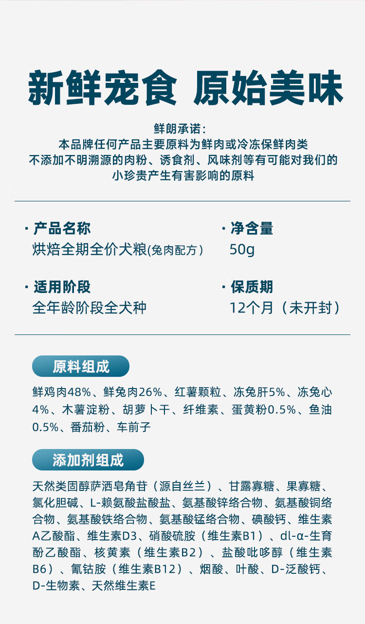 鲜朗低温烘焙狗粮冻干生骨肉天然无谷幼犬成犬全阶段换粮试吃试用 烘焙犬粮试吃装 100g(尝鲜装50g*2包)