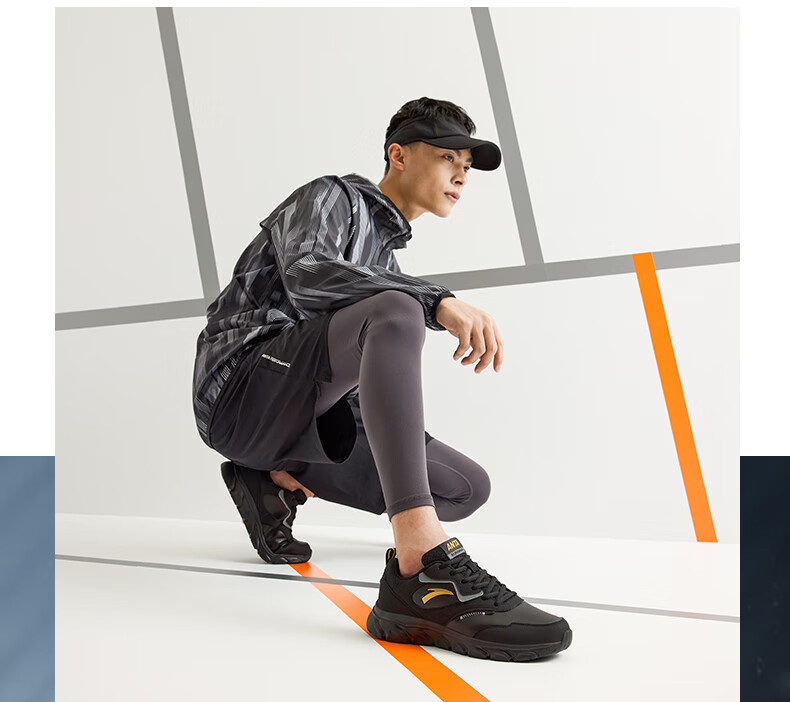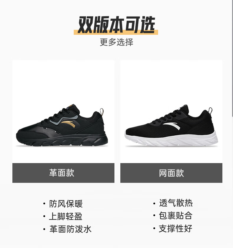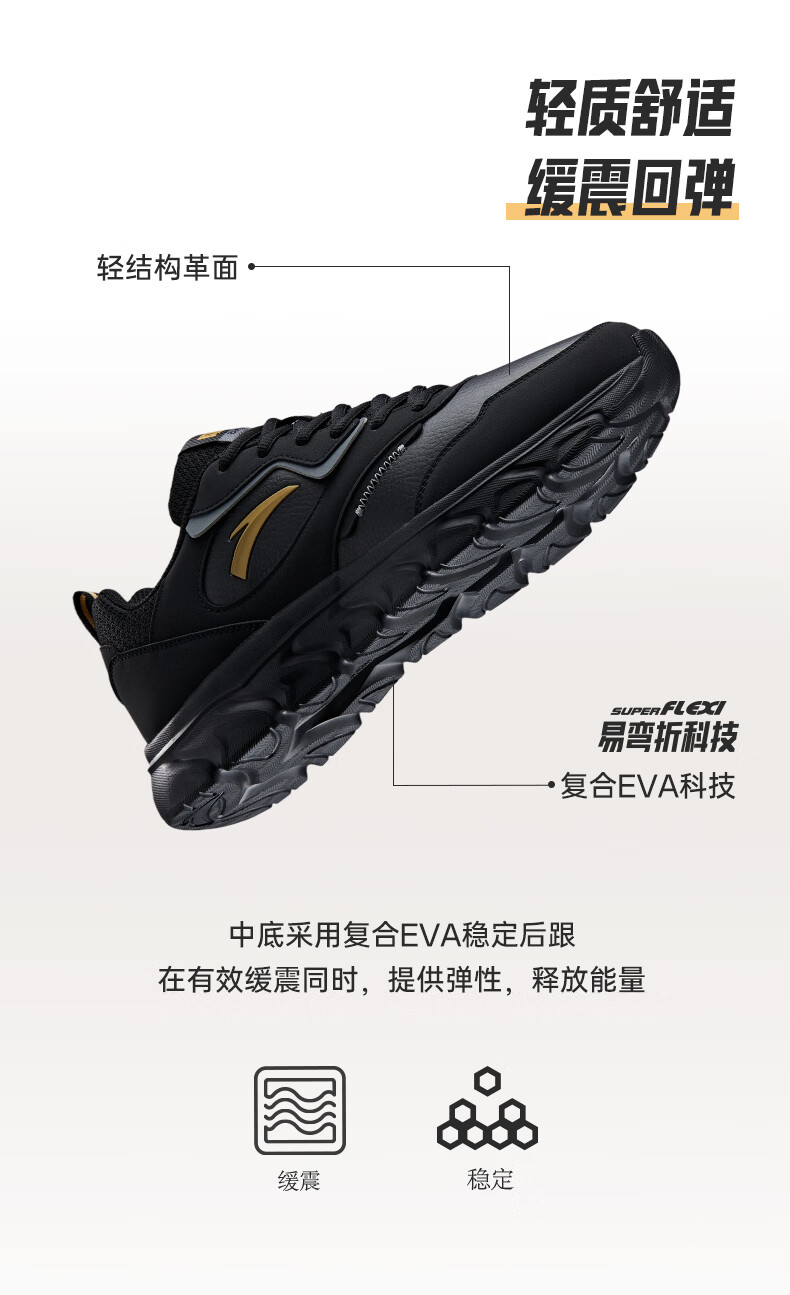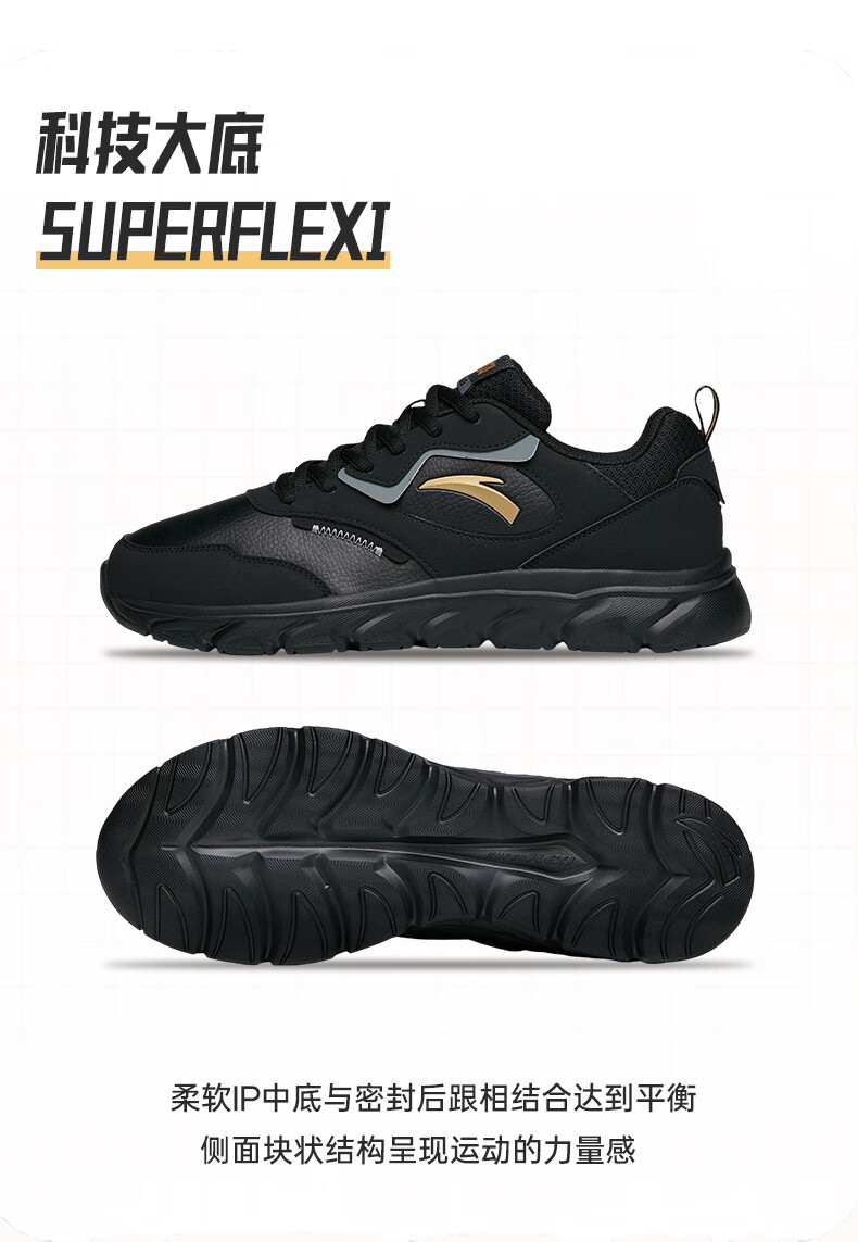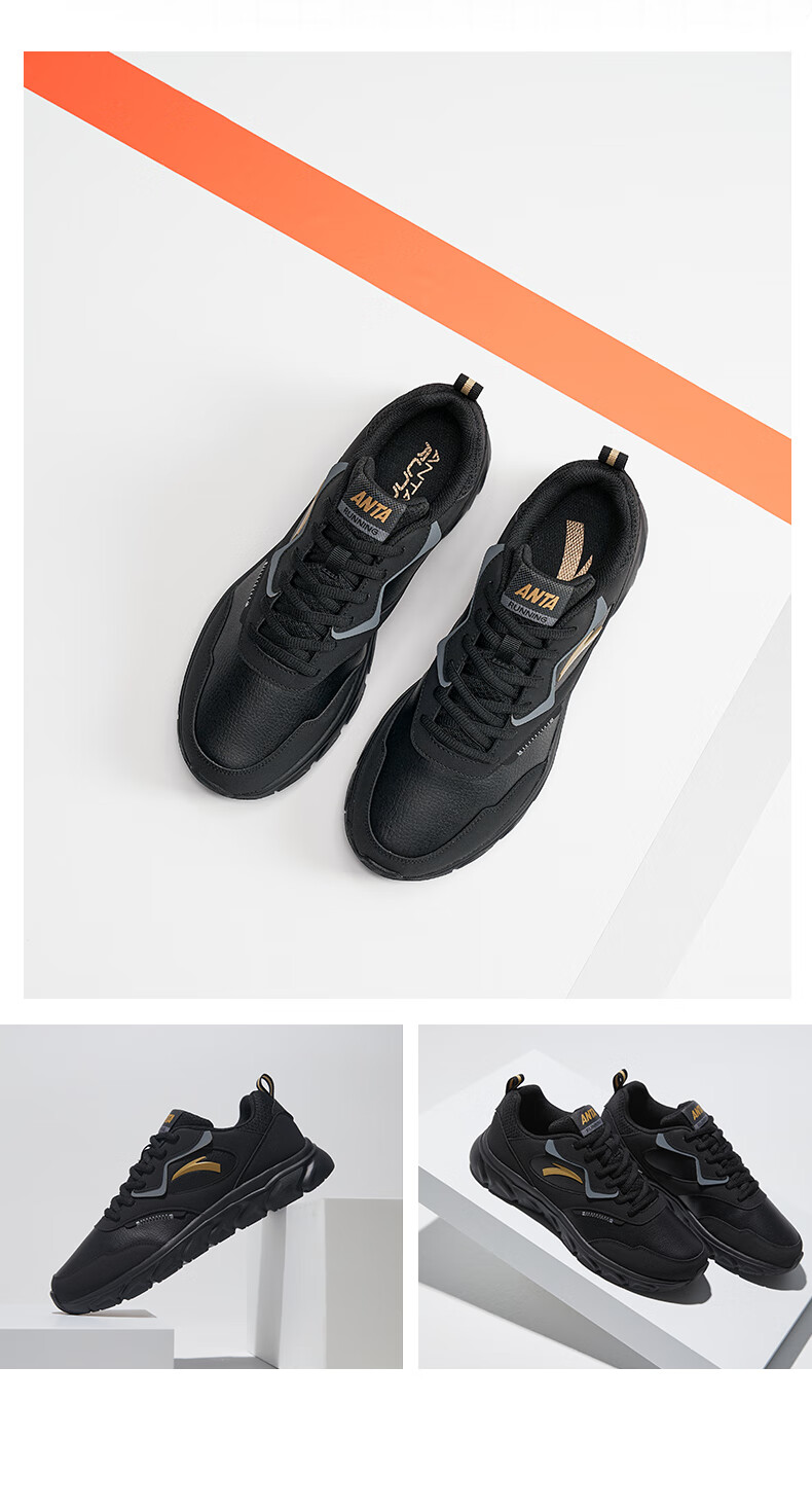 安踏男鞋革面防泼水跑步鞋男黑色轻便防滑休闲鞋运动鞋旅游鞋子男