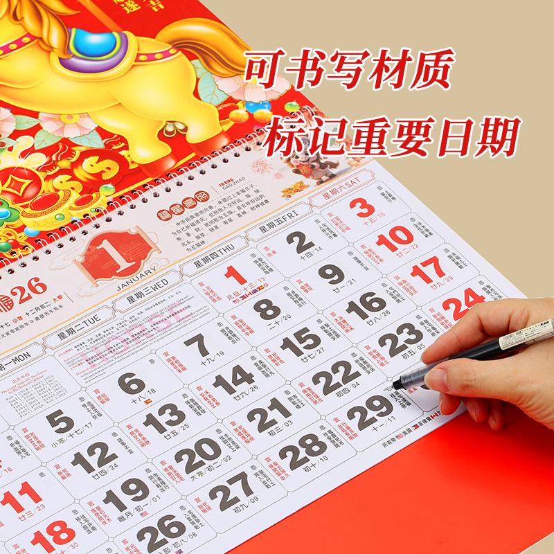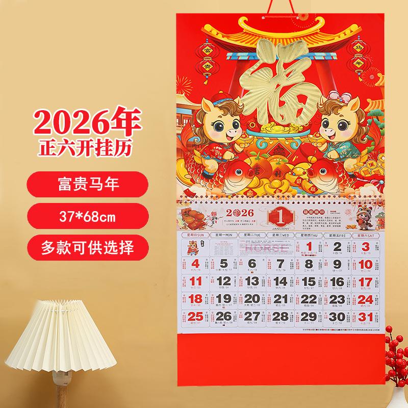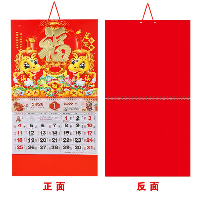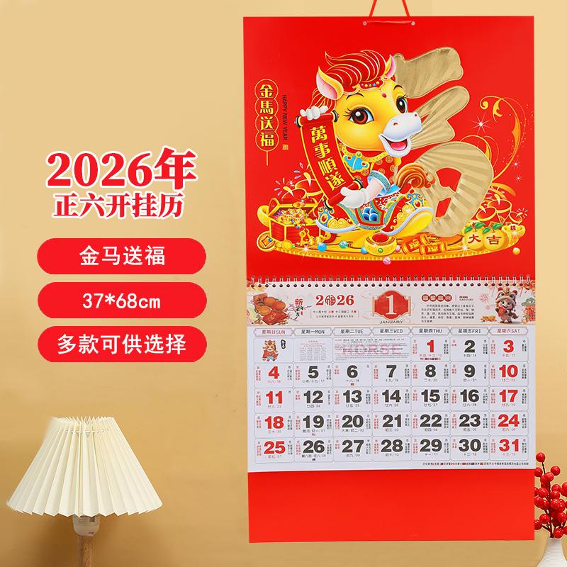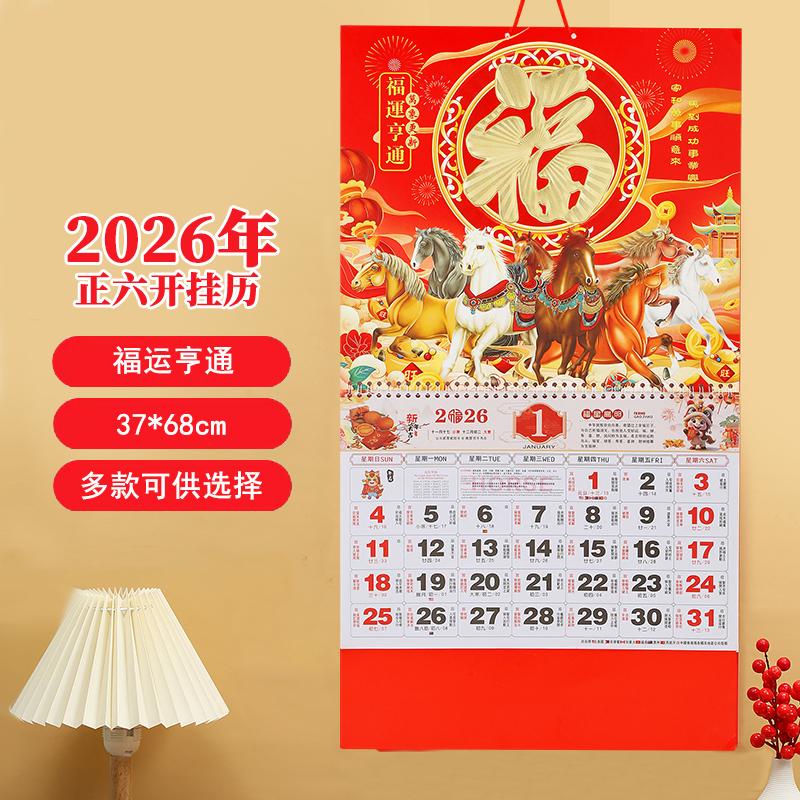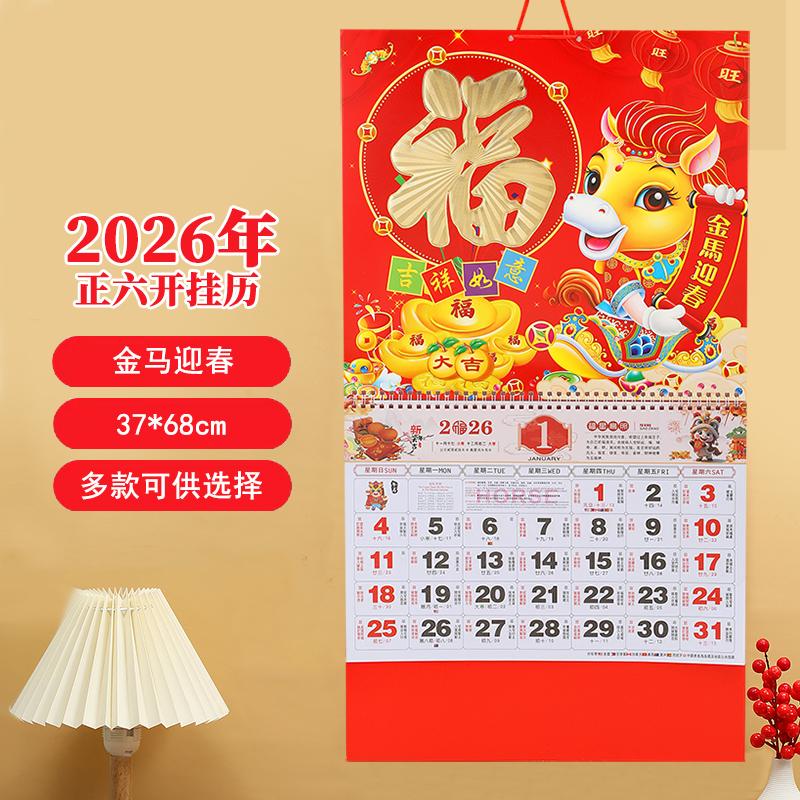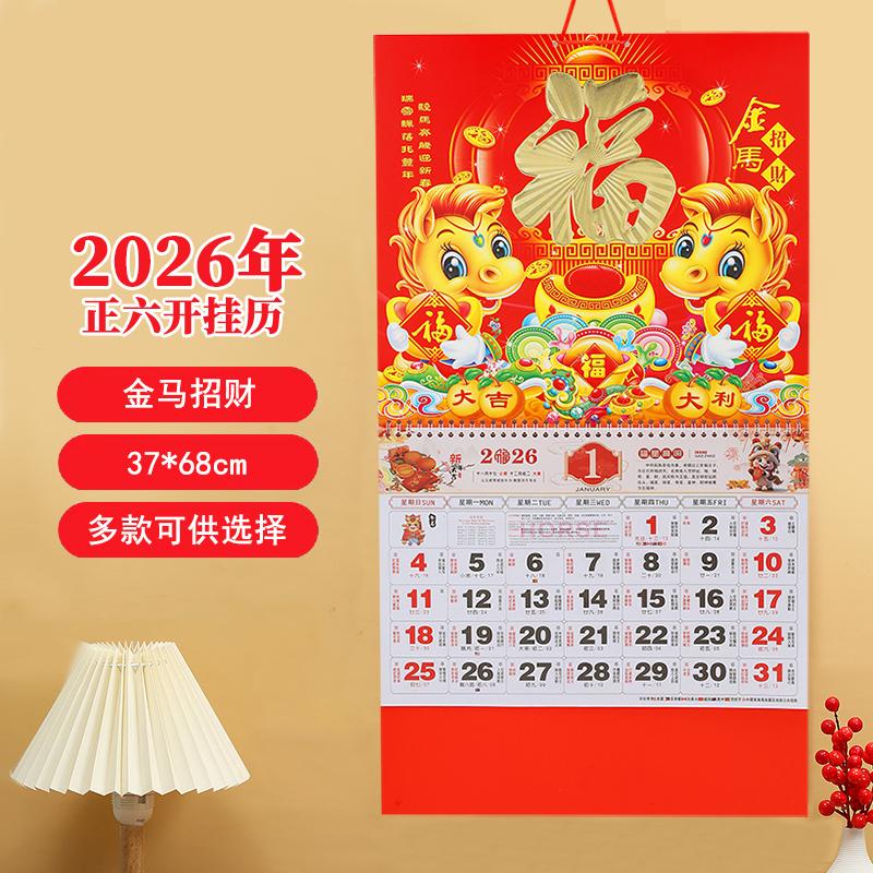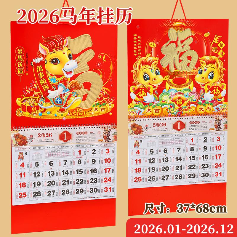 2026年挂历老黄历农历新款新中式正六开福字烫金手撕创意日历家用办公室迷你挂历物料 【福利款】9寸迷你马年挂历随机1本