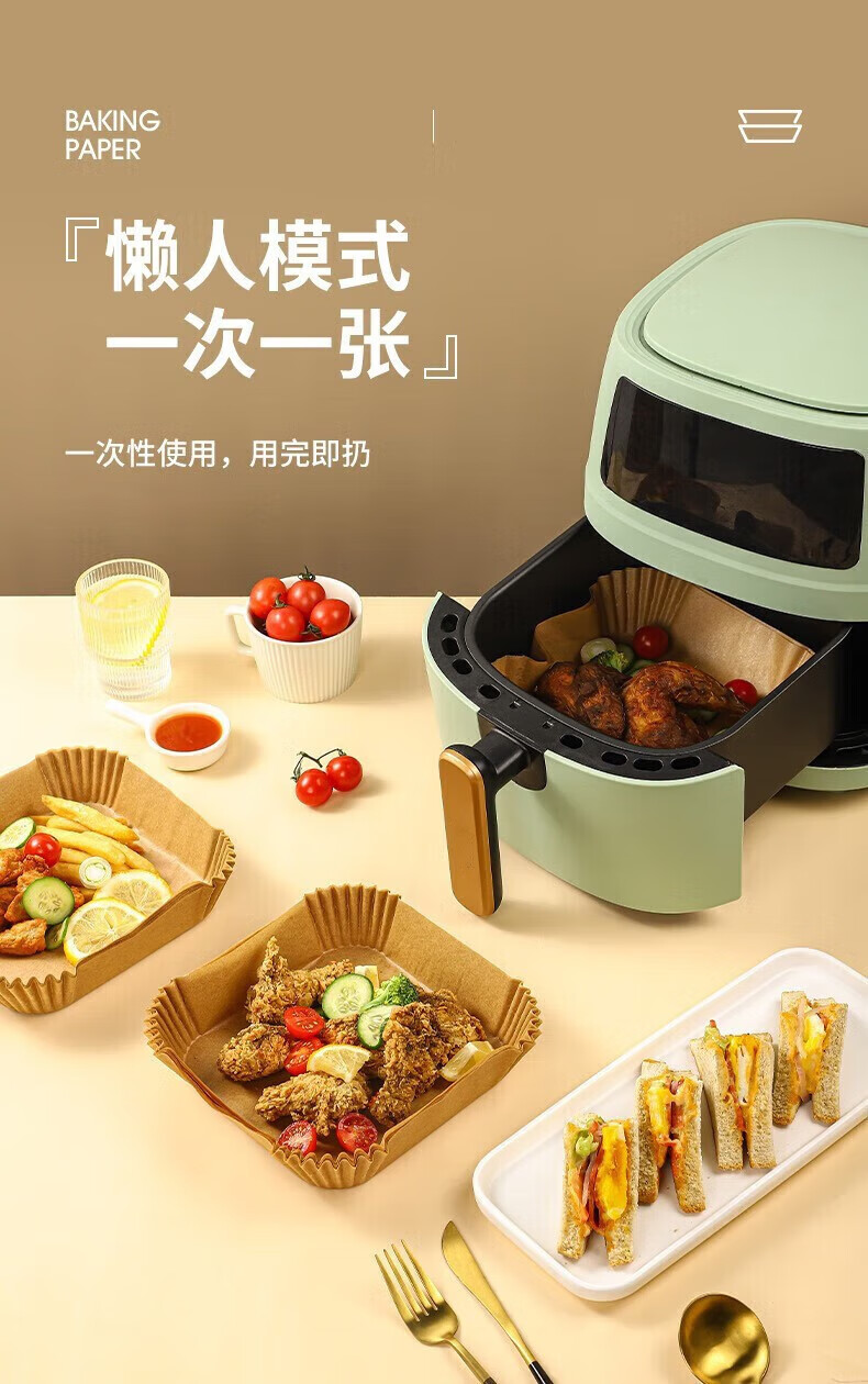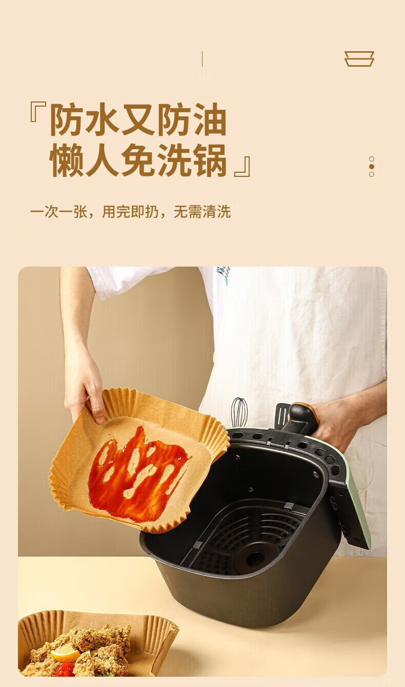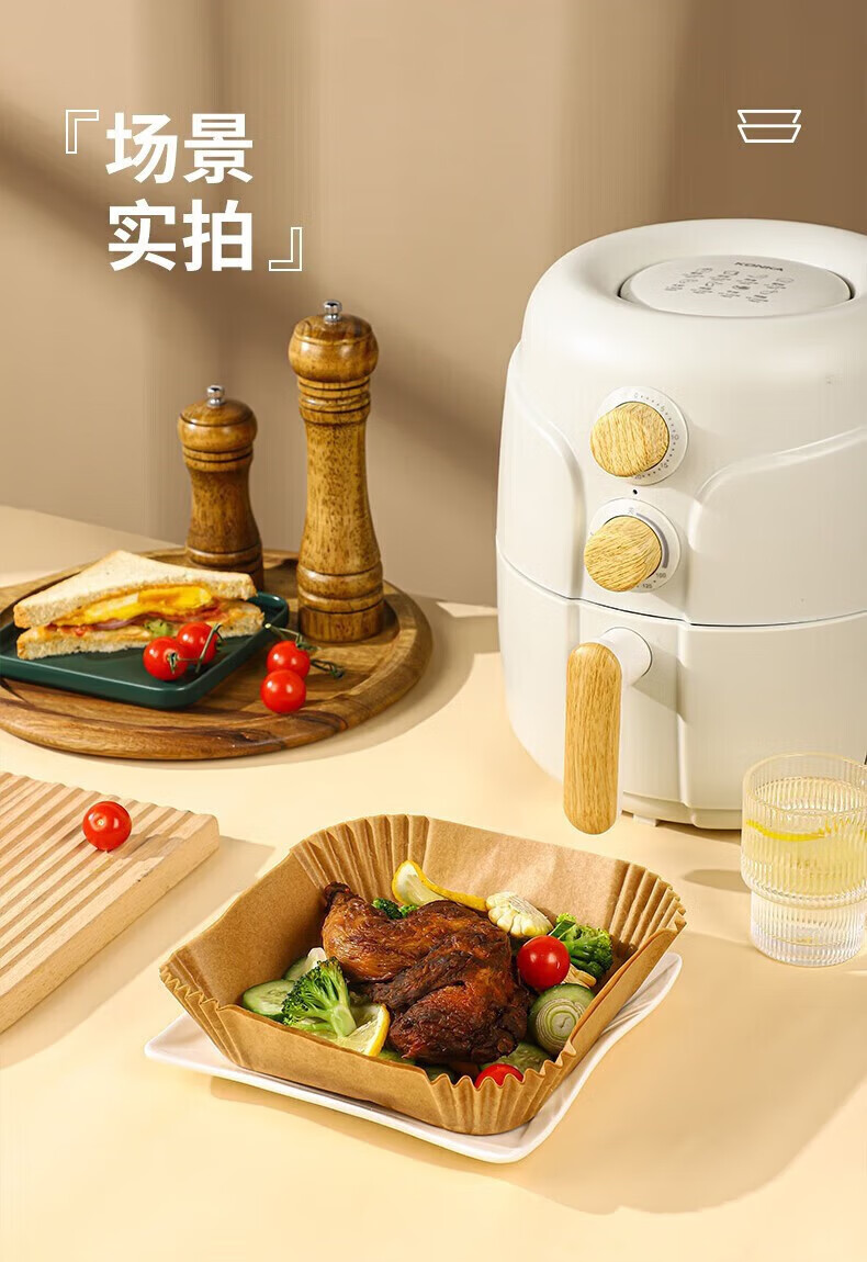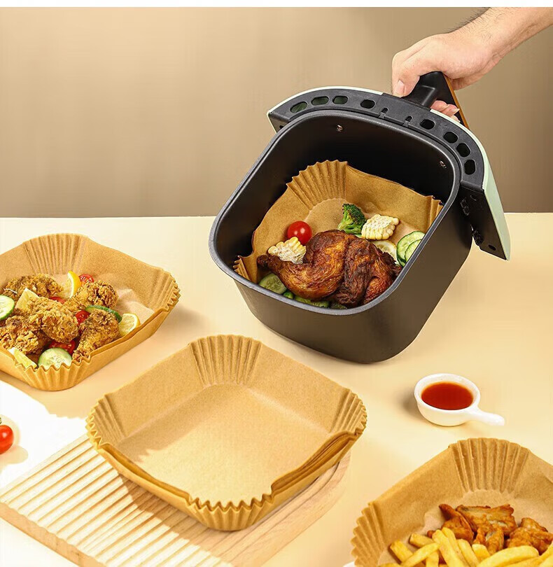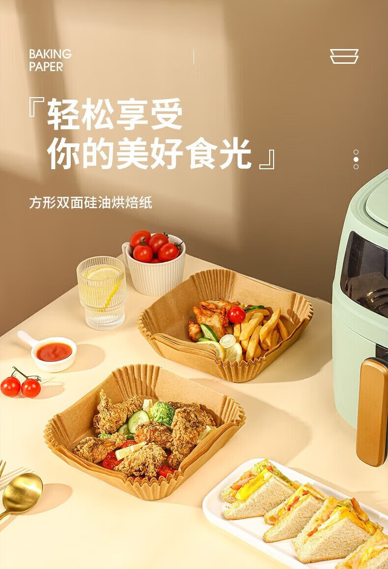 Jidaocook空气炸锅纸烧烤烘焙纸方形吸油纸家用食物炸鸡硅油纸薯条烤肉纸 加厚加大-加高边缘【100张】