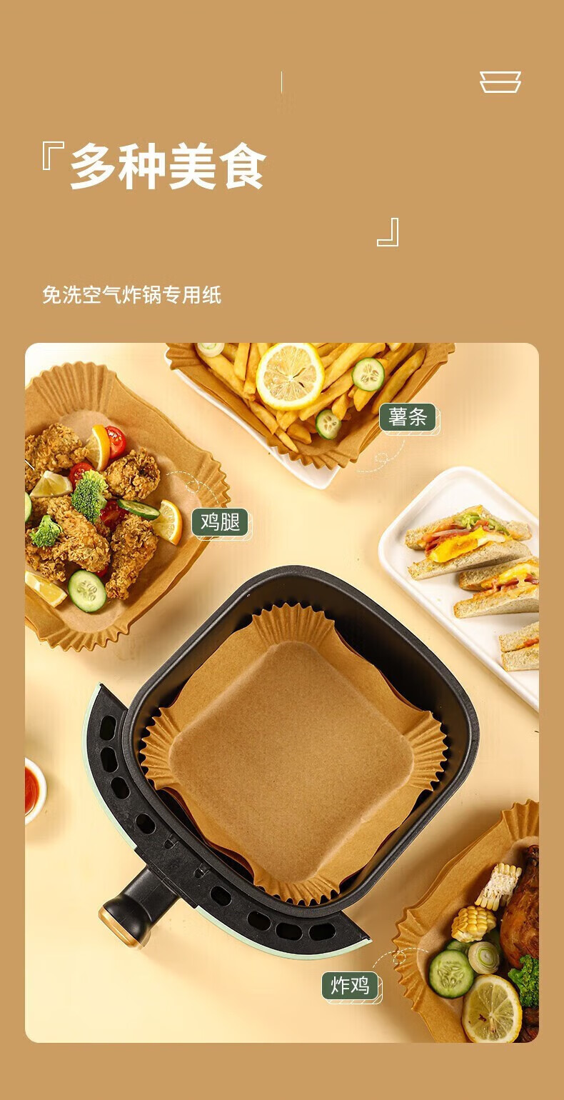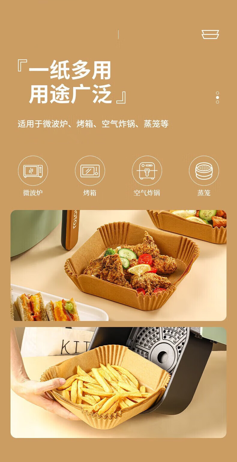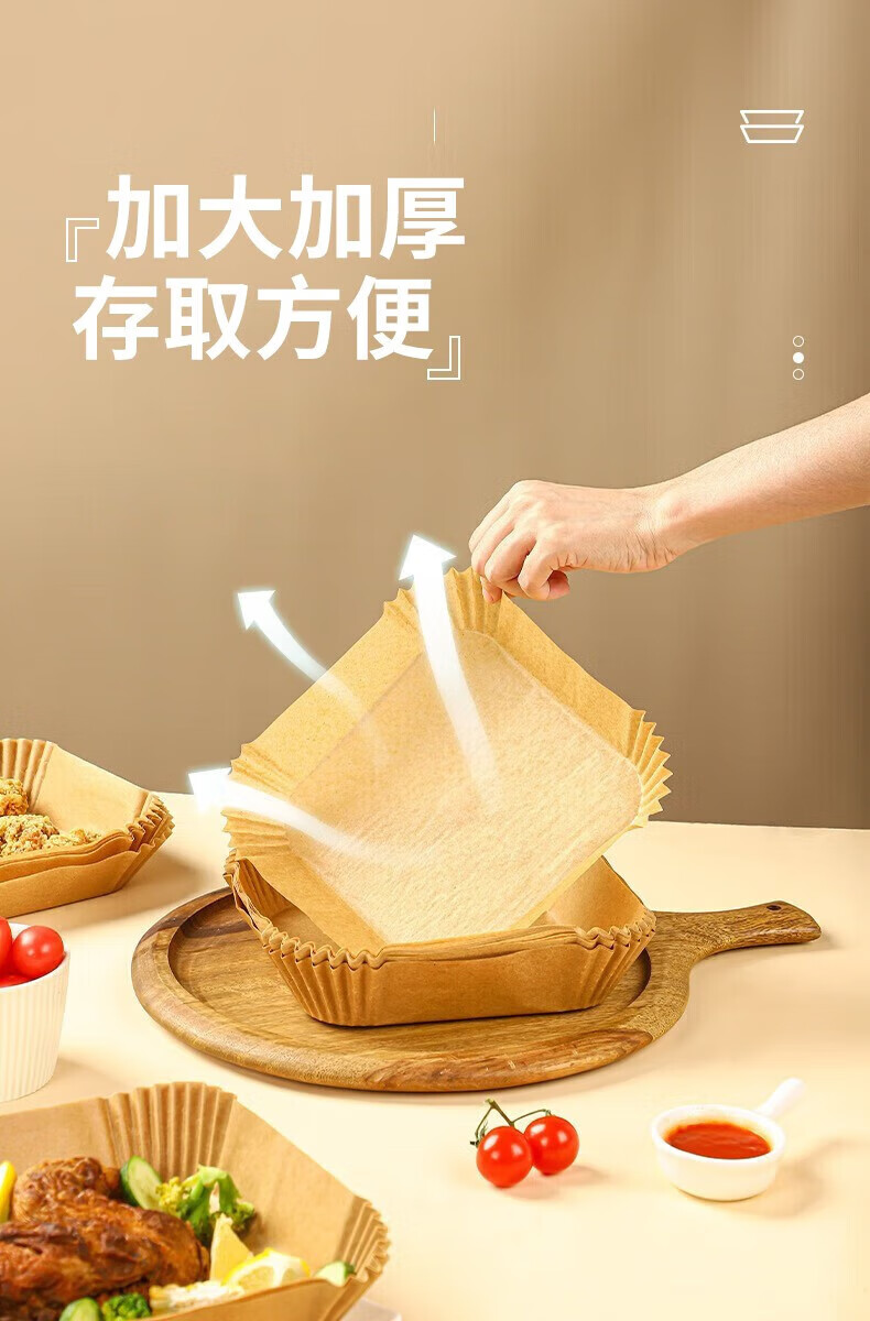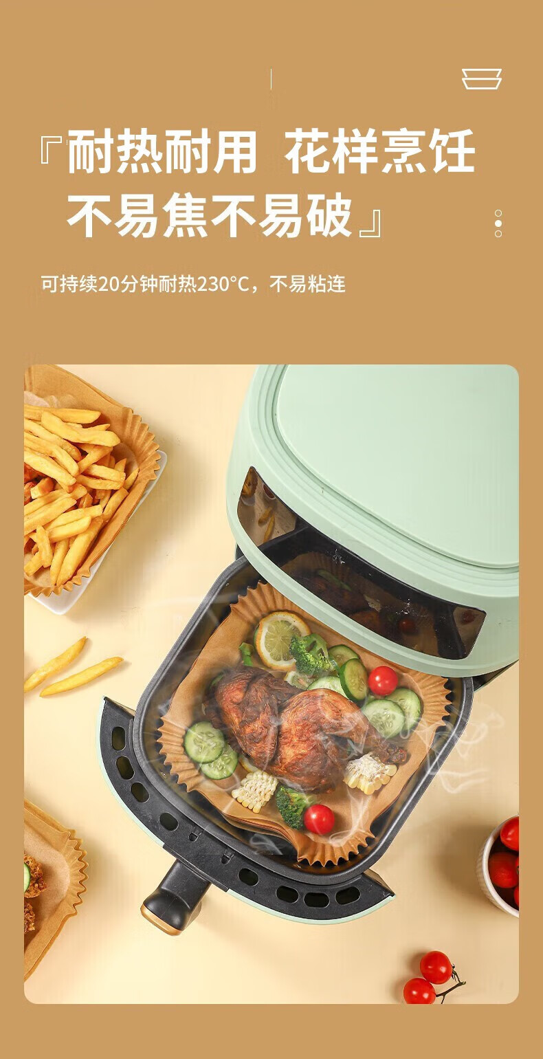 Jidaocook空气炸锅纸烧烤烘焙纸方形吸油纸家用食物炸鸡硅油纸薯条烤肉纸 加厚加大-加高边缘【100张】