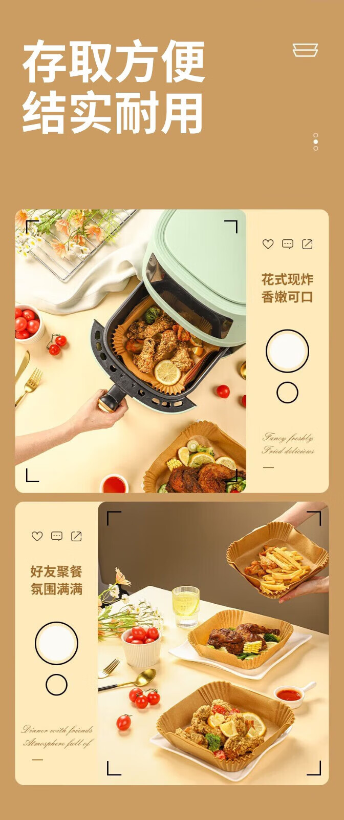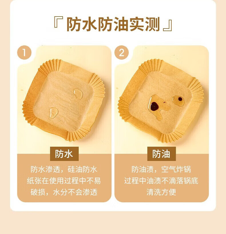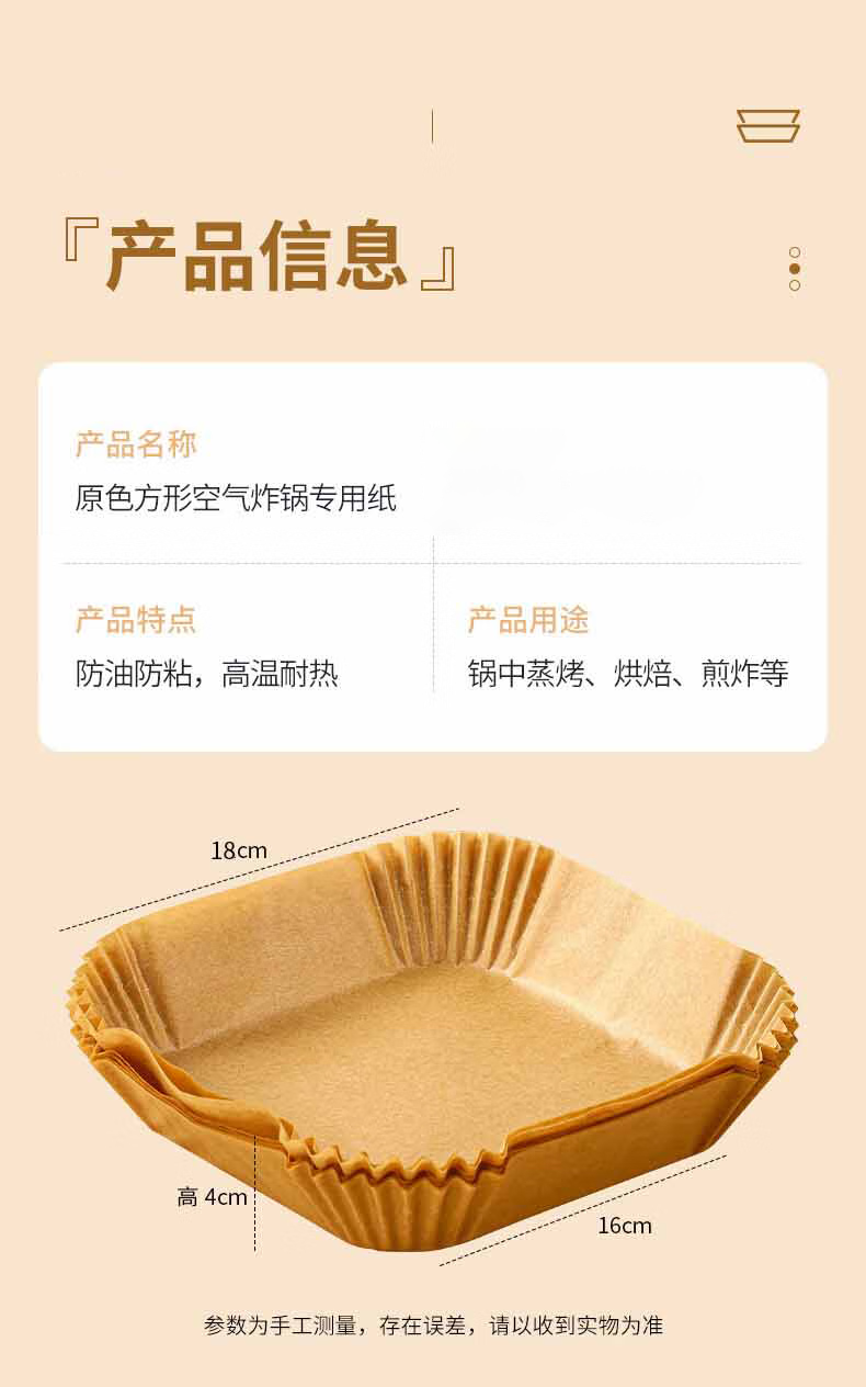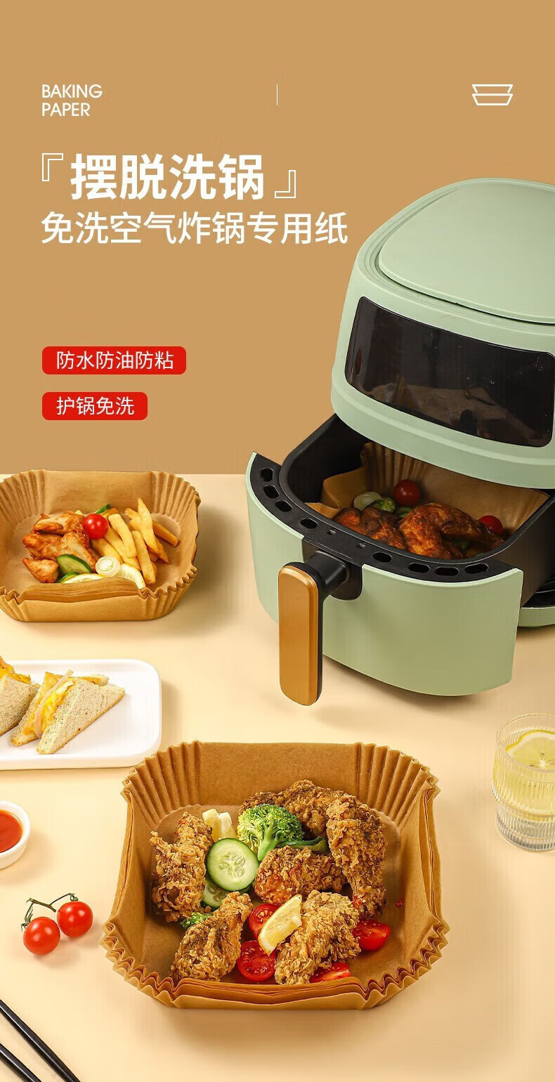 Jidaocook空气炸锅纸烧烤烘焙纸方形吸油纸家用食物炸鸡硅油纸薯条烤肉纸 加厚加大-加高边缘【100张】