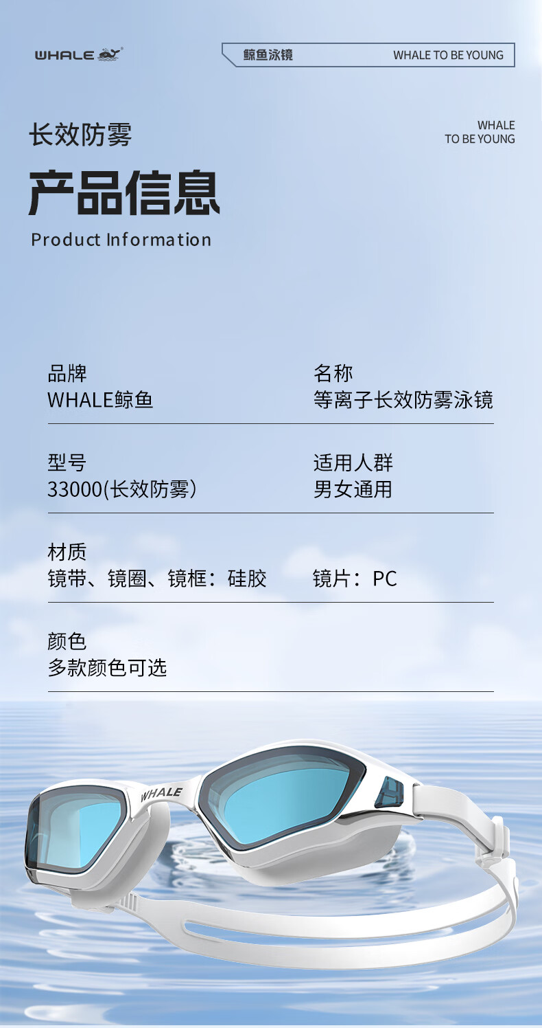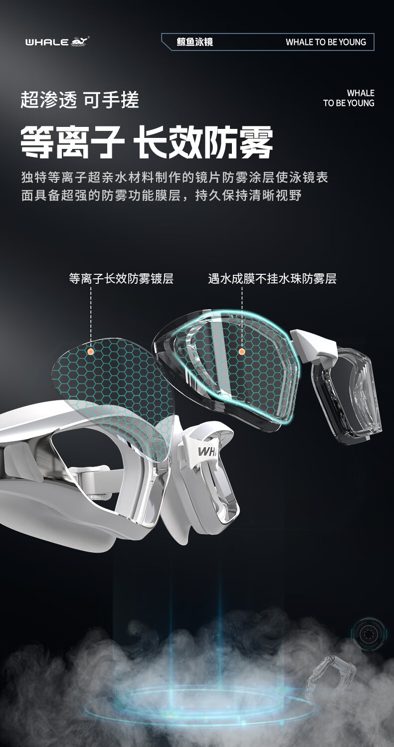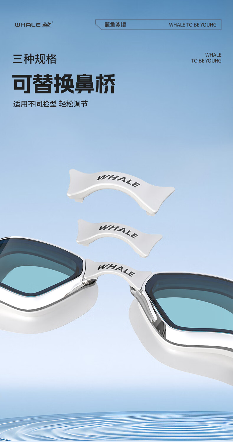 鲸鱼N1防雾泳镜可拆卸镜片999天起雾换新近视可选度数游泳眼镜男女 闪亮银【高清镜片】+赠泳帽