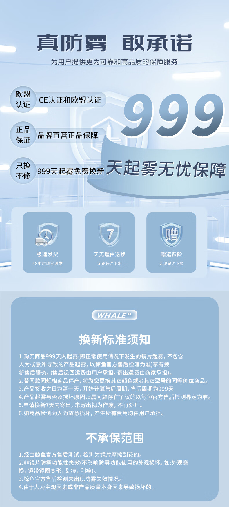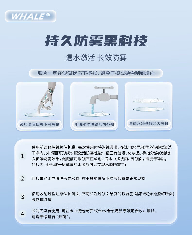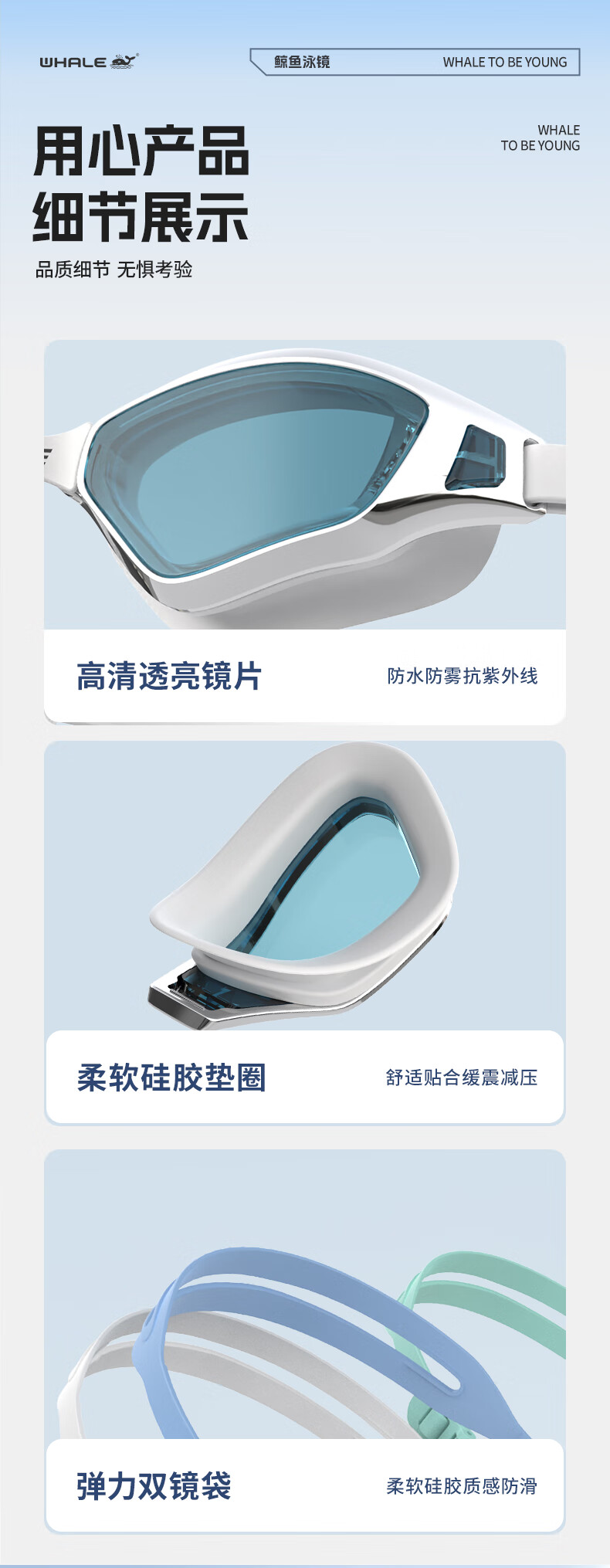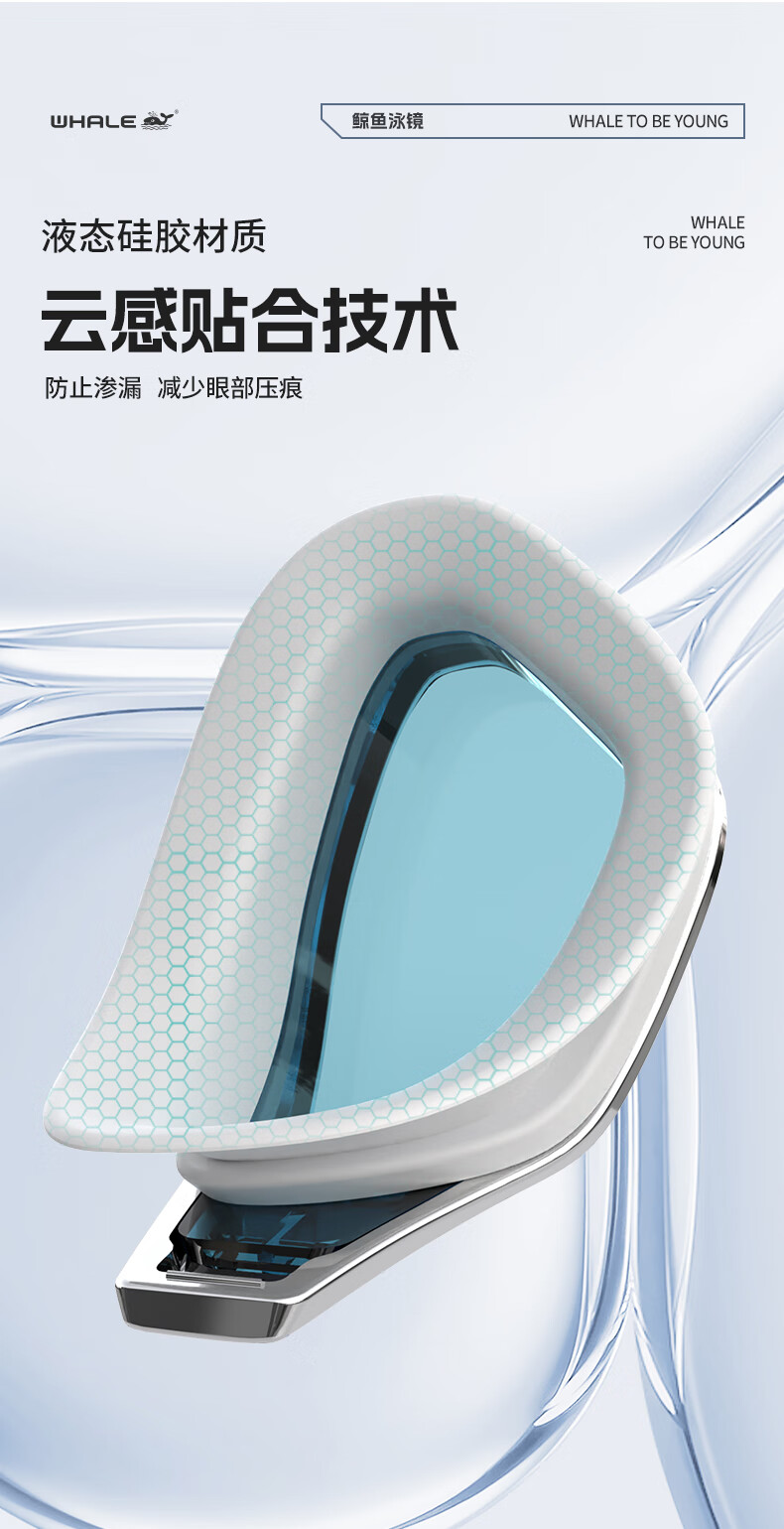 鲸鱼N1防雾泳镜可拆卸镜片999天起雾换新近视可选度数游泳眼镜男女 闪亮银【高清镜片】+赠泳帽