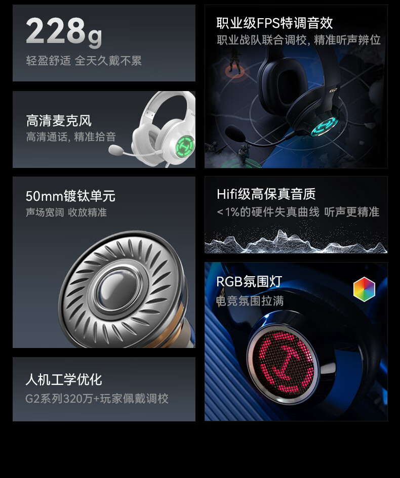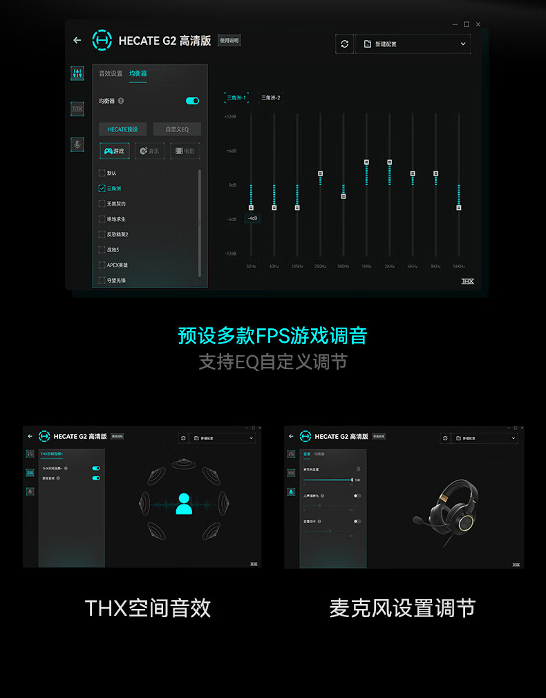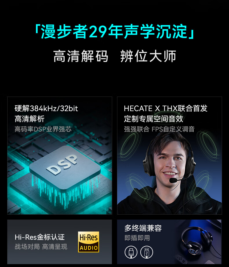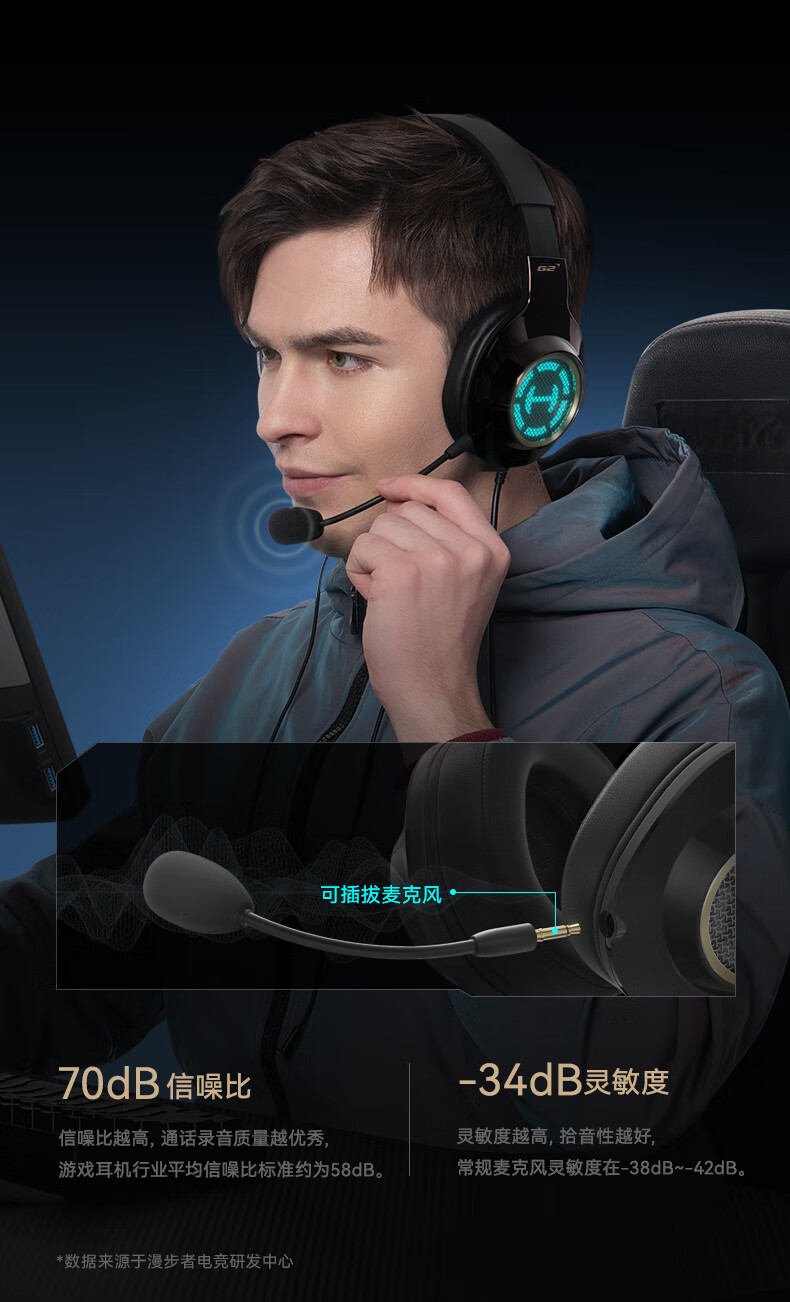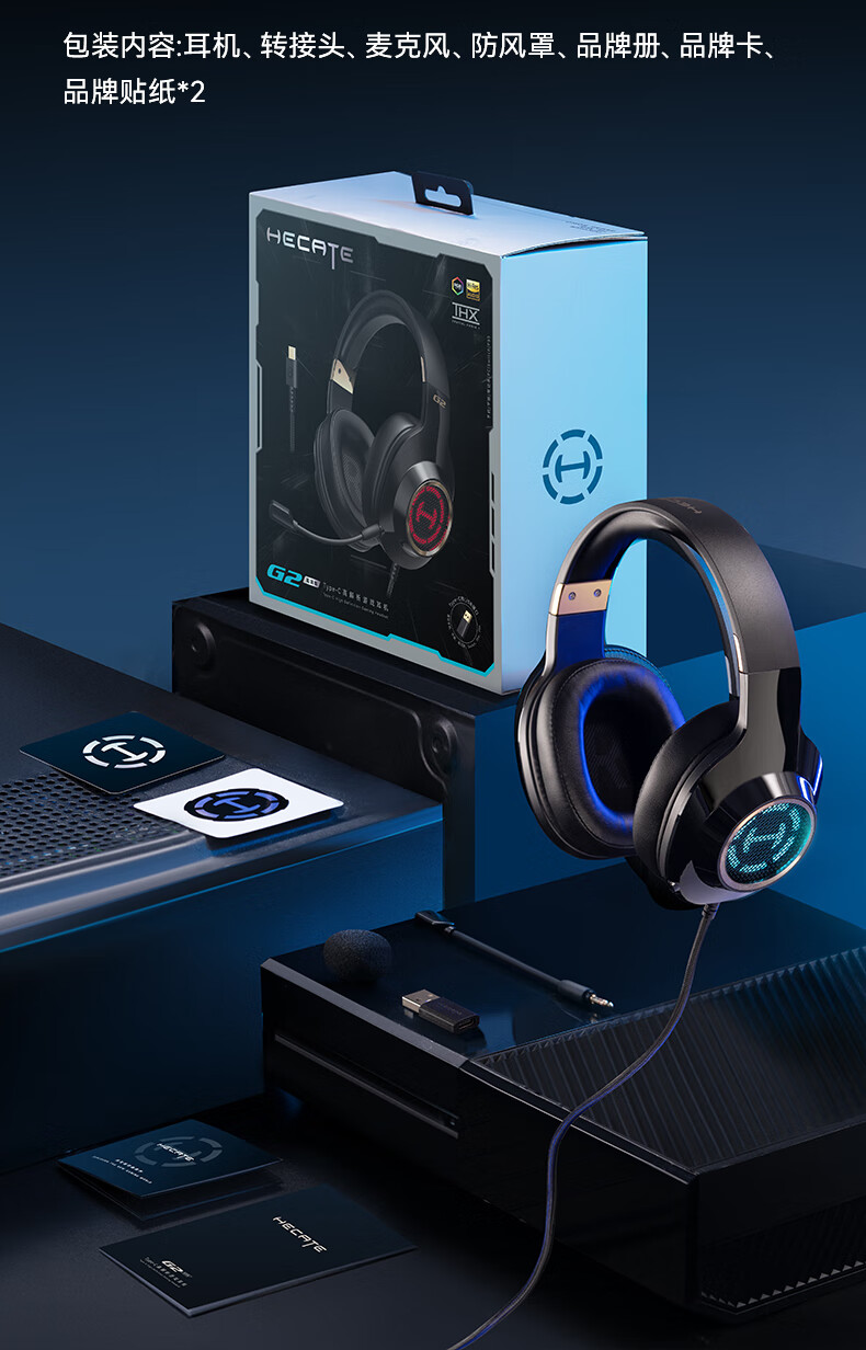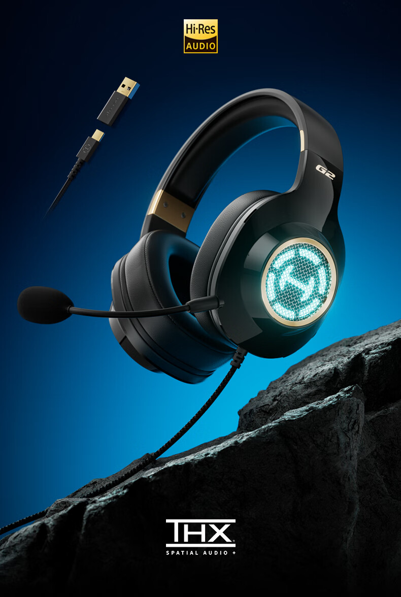 漫步者(EDIFIER)HECATE G2高清版THX空间音效有线耳机电竞游戏头戴式电脑网课办公麦克风专用三角洲FPS吃鸡 黑金色
