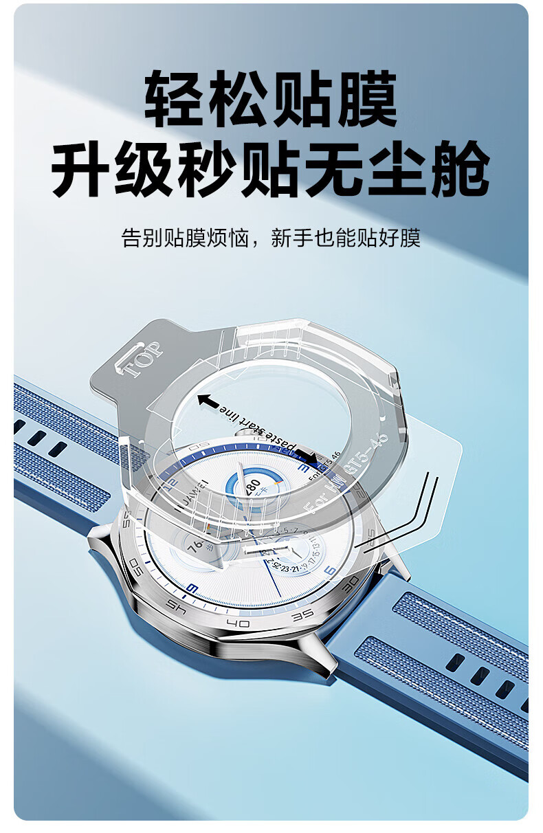 品胜(PISEN)适用华为手表GT5Pro保护膜华为Watch GT5Pro钢化膜高清防摔抗指纹无尘仓秒贴手表膜46mm表盘 【华为GT5Pro】秒贴膜 46mm适用