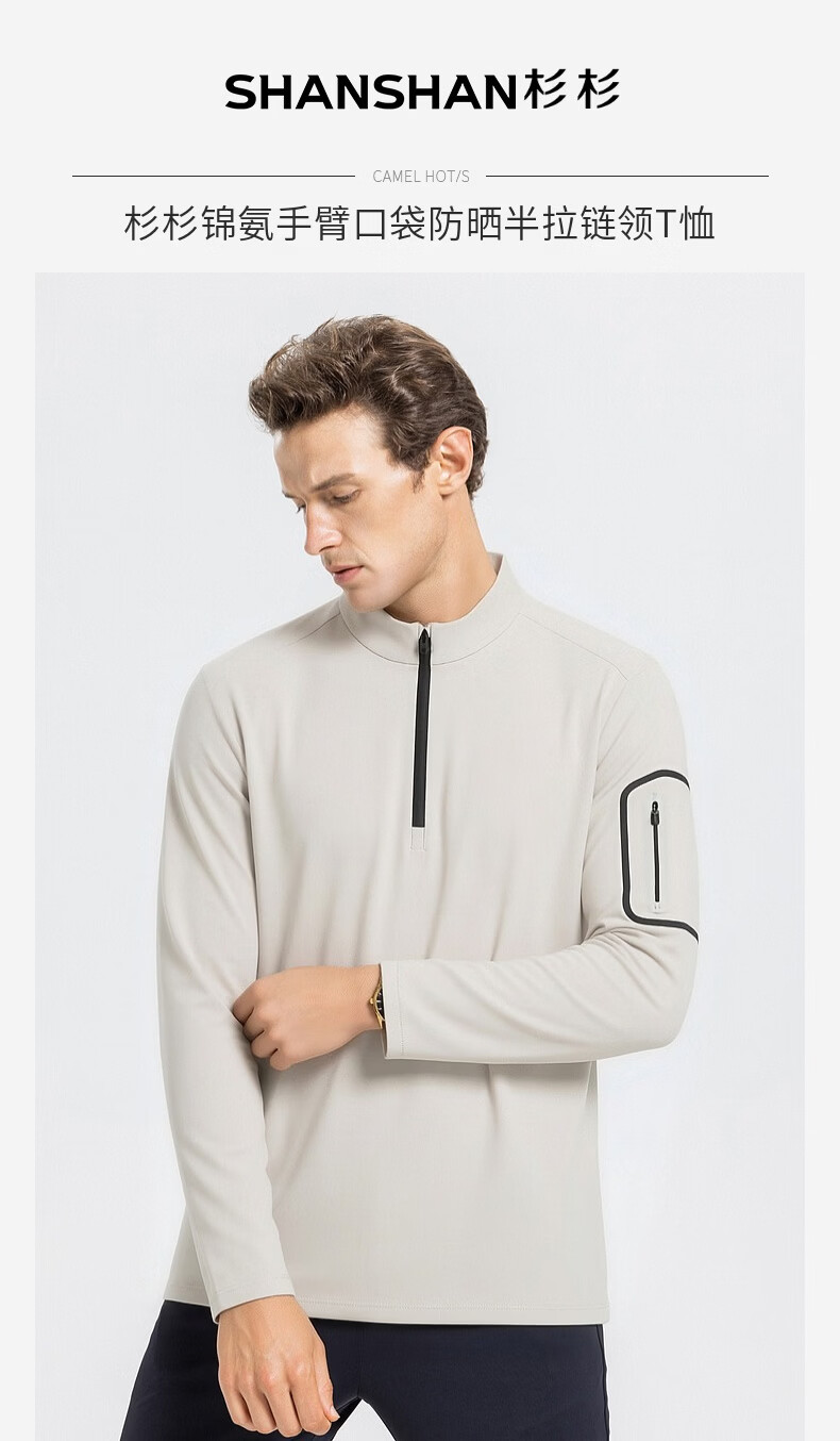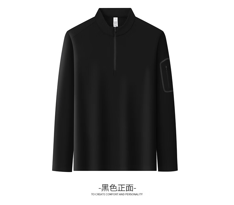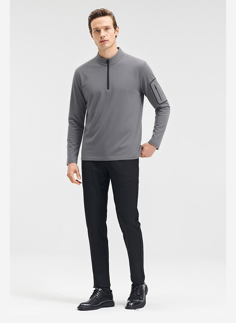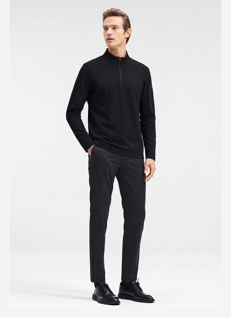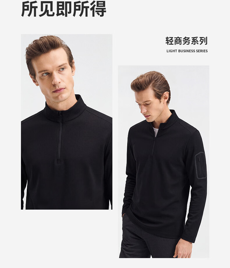 SHANSHAN杉杉【锦氨防晒】长袖t恤男拉链立领纯色通勤打底弹力旅行服春秋 黑色 2XL /185