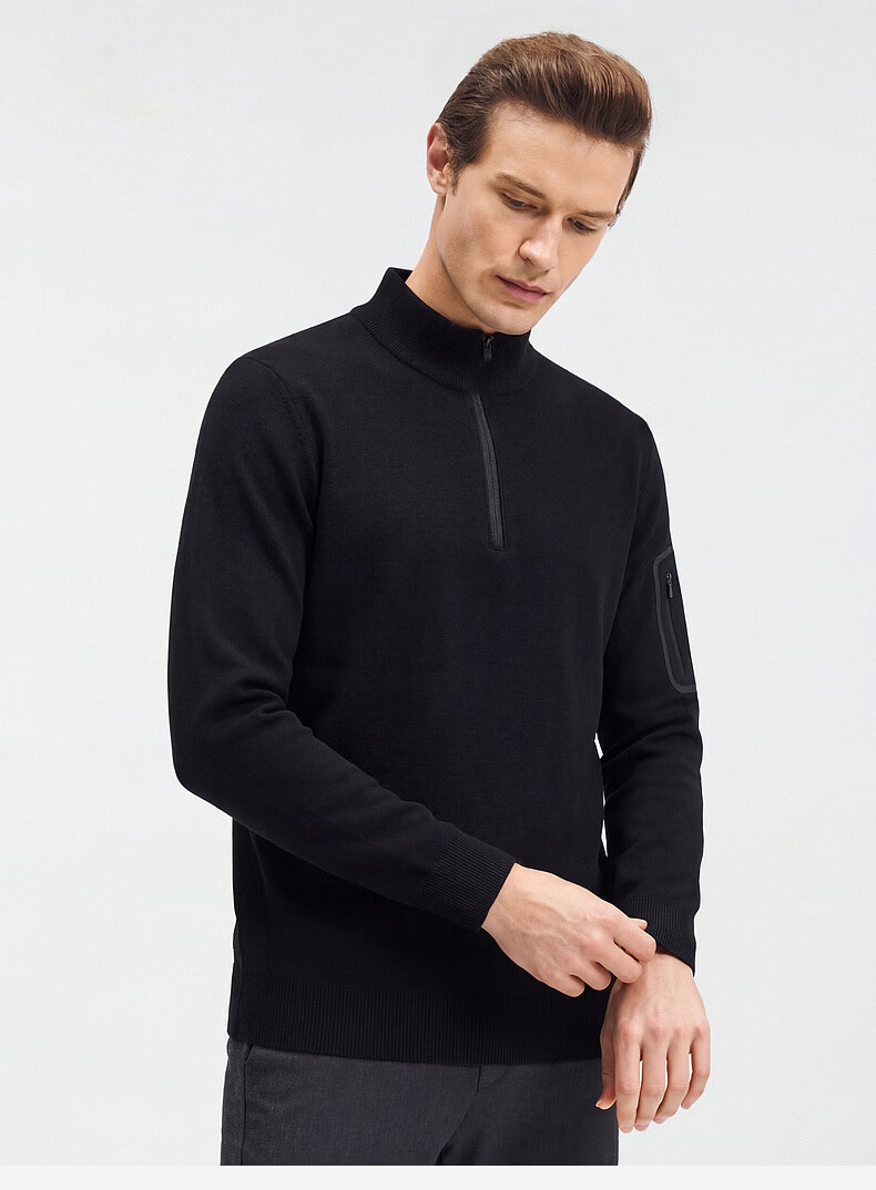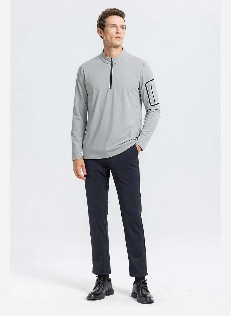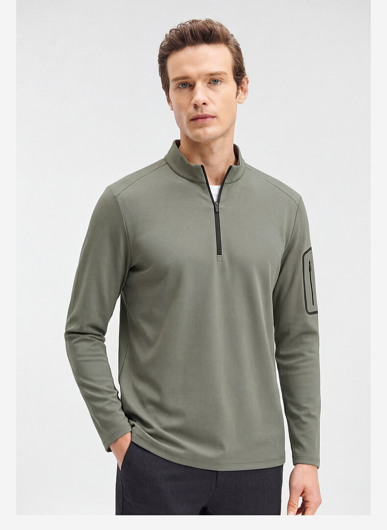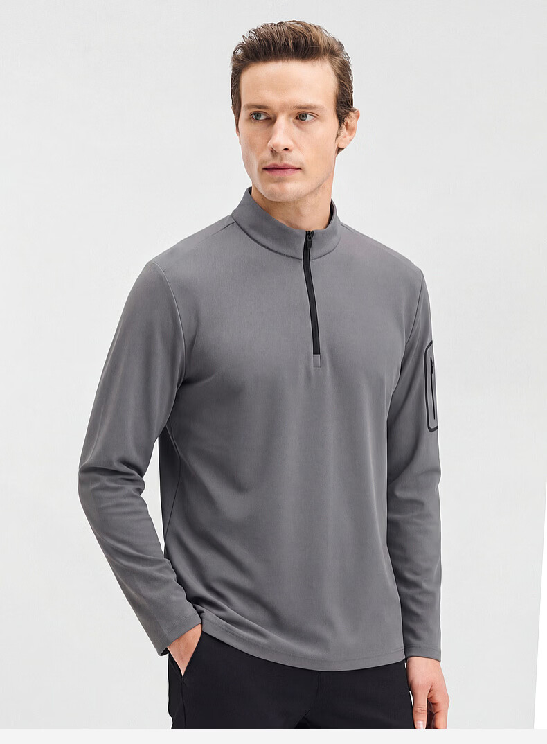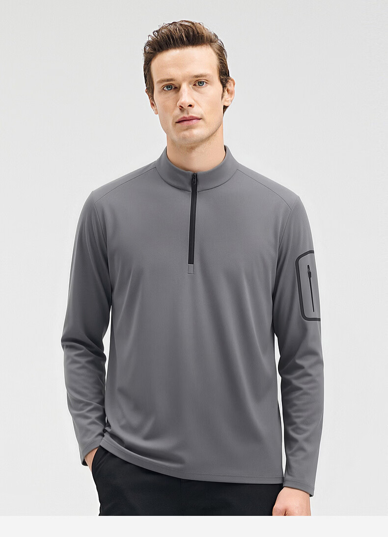SHANSHAN杉杉【锦氨防晒】长袖t恤男拉链立领纯色通勤打底弹力旅行服春秋 黑色 2XL /185