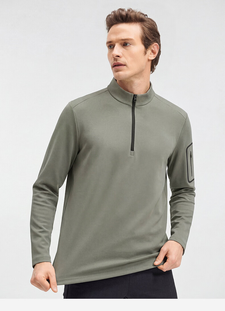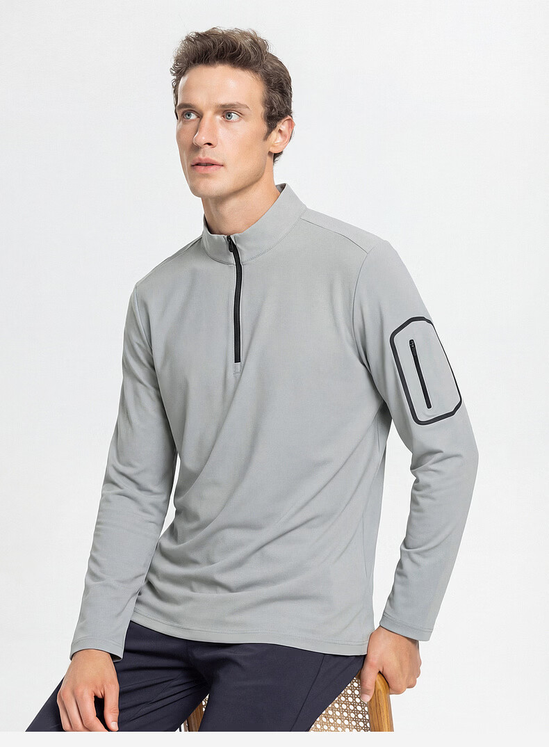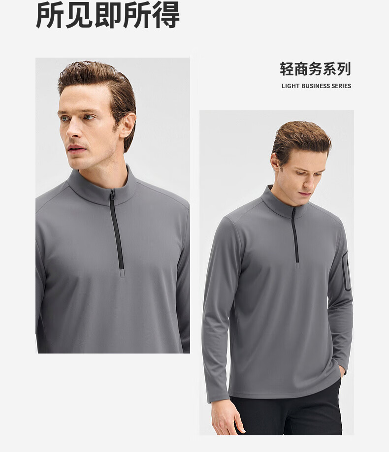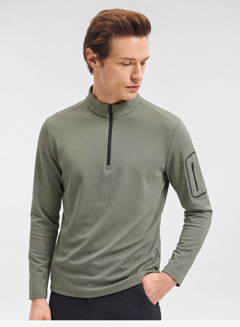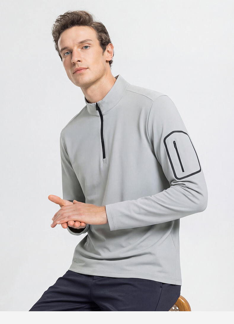 SHANSHAN杉杉【锦氨防晒】长袖t恤男拉链立领纯色通勤打底弹力旅行服春秋 黑色 2XL /185