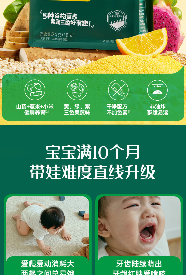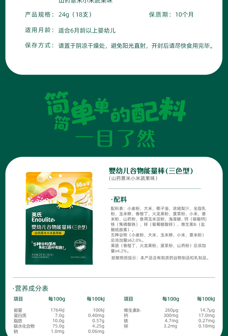 英氏(Engnice)婴幼儿谷物能量棒山药薏米小米蔬果味24g非油炸宝宝零食解馋哄娃