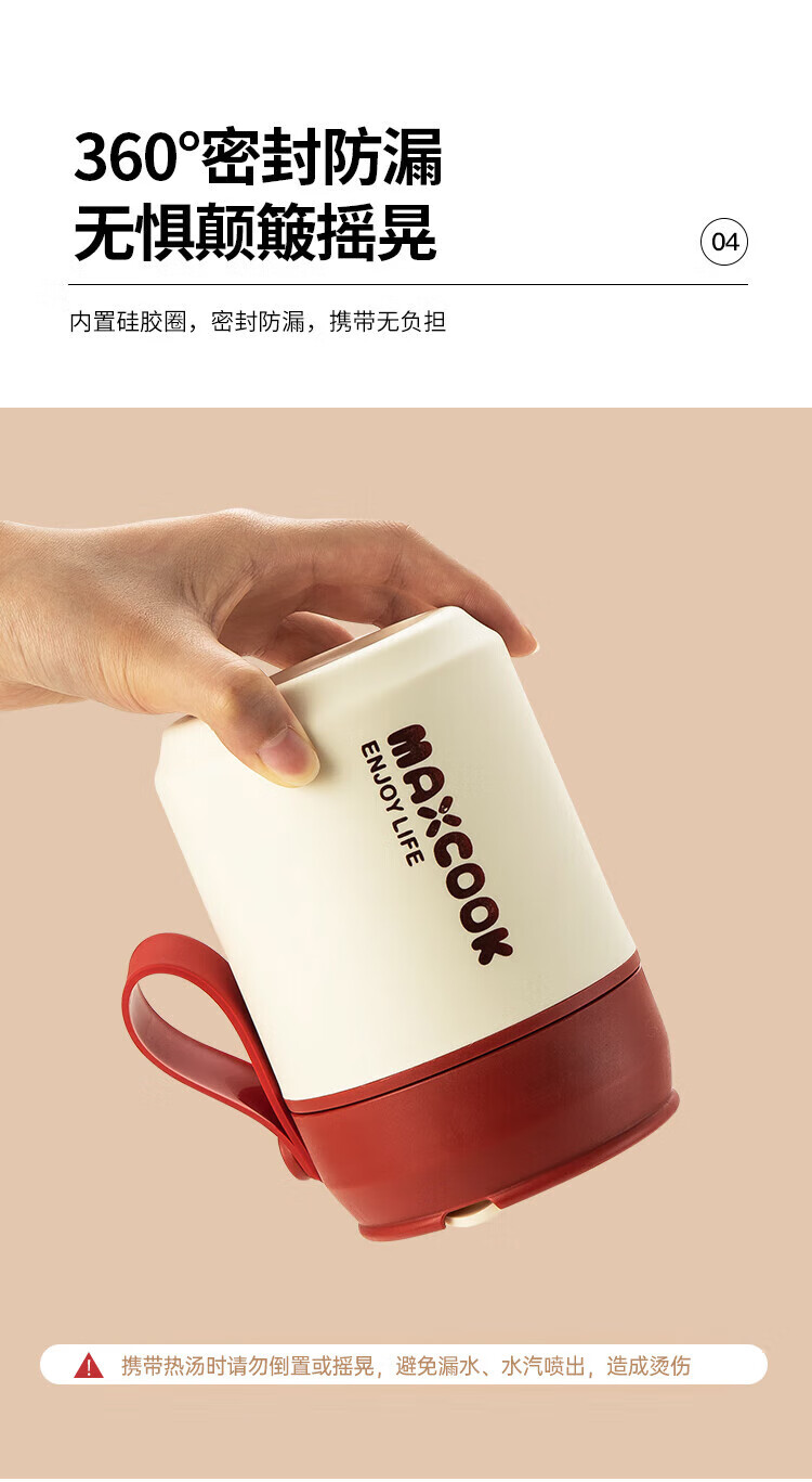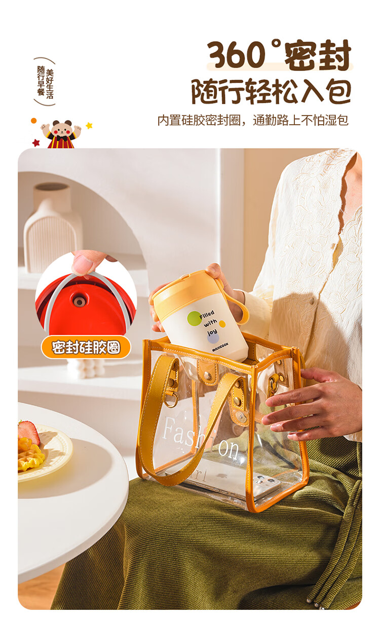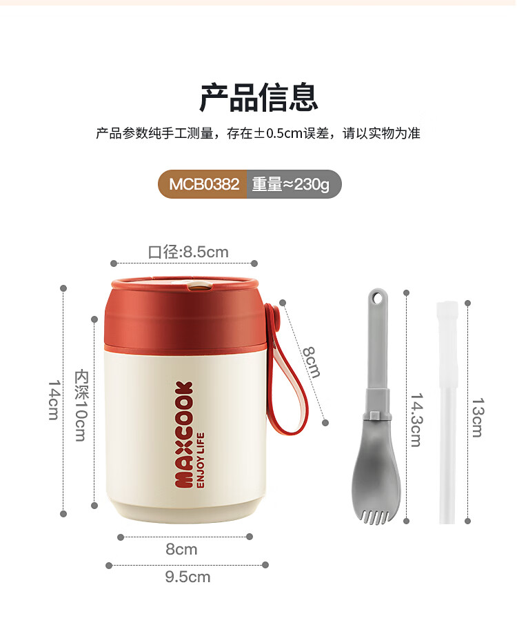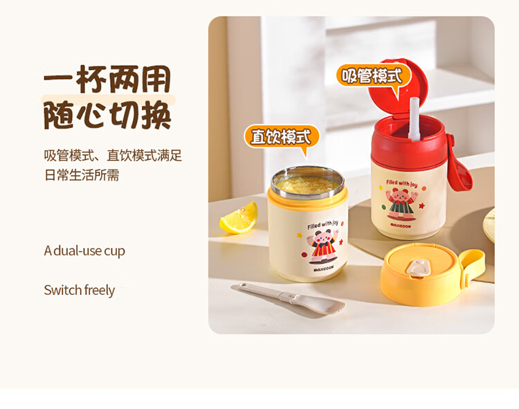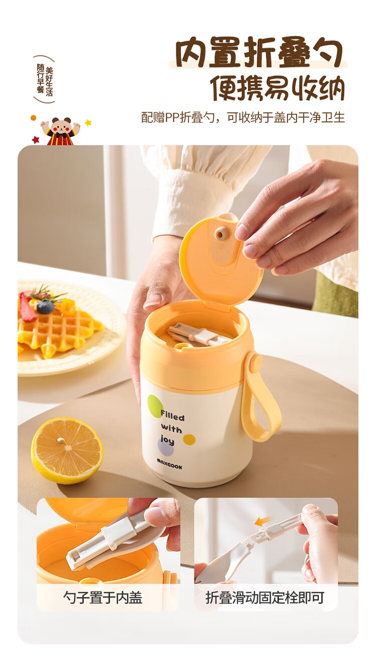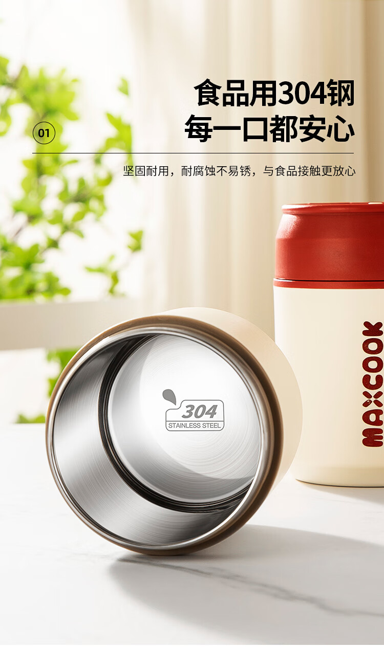 美厨(MAXCOOK)304不锈钢早餐杯豆浆燕麦片杯带盖勺外带便携不锈钢汤杯保温饭盒 高雅灰 杯+勺+吸管MCB0399550ml