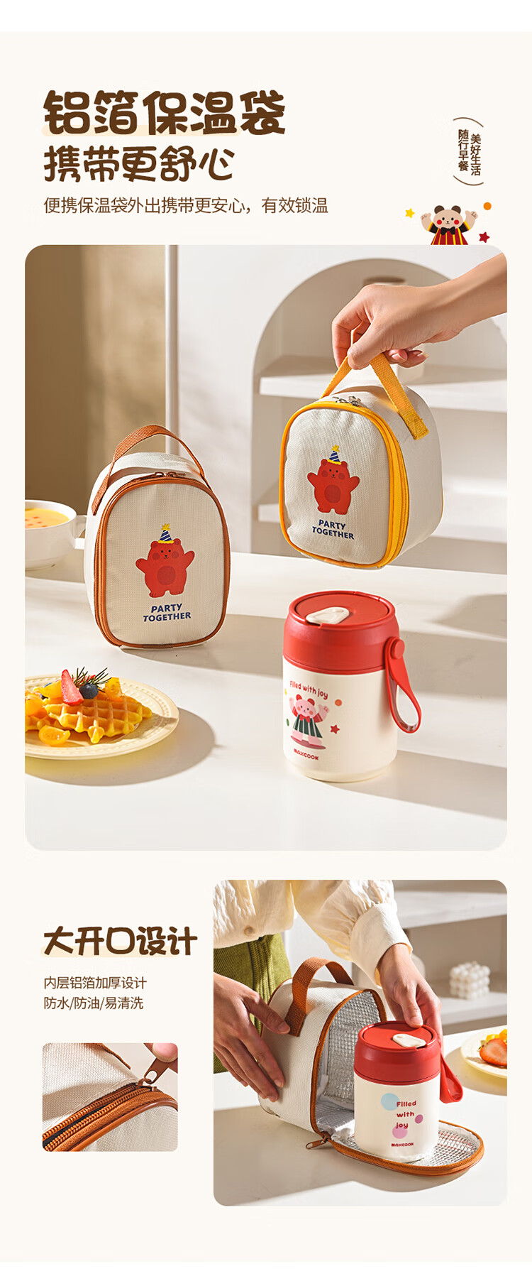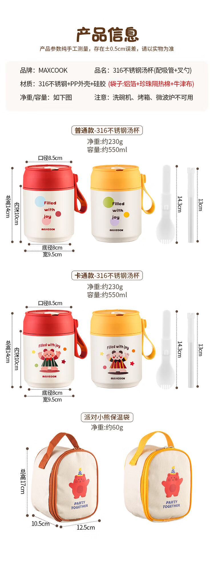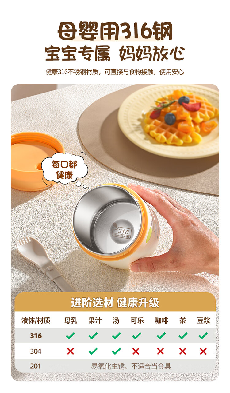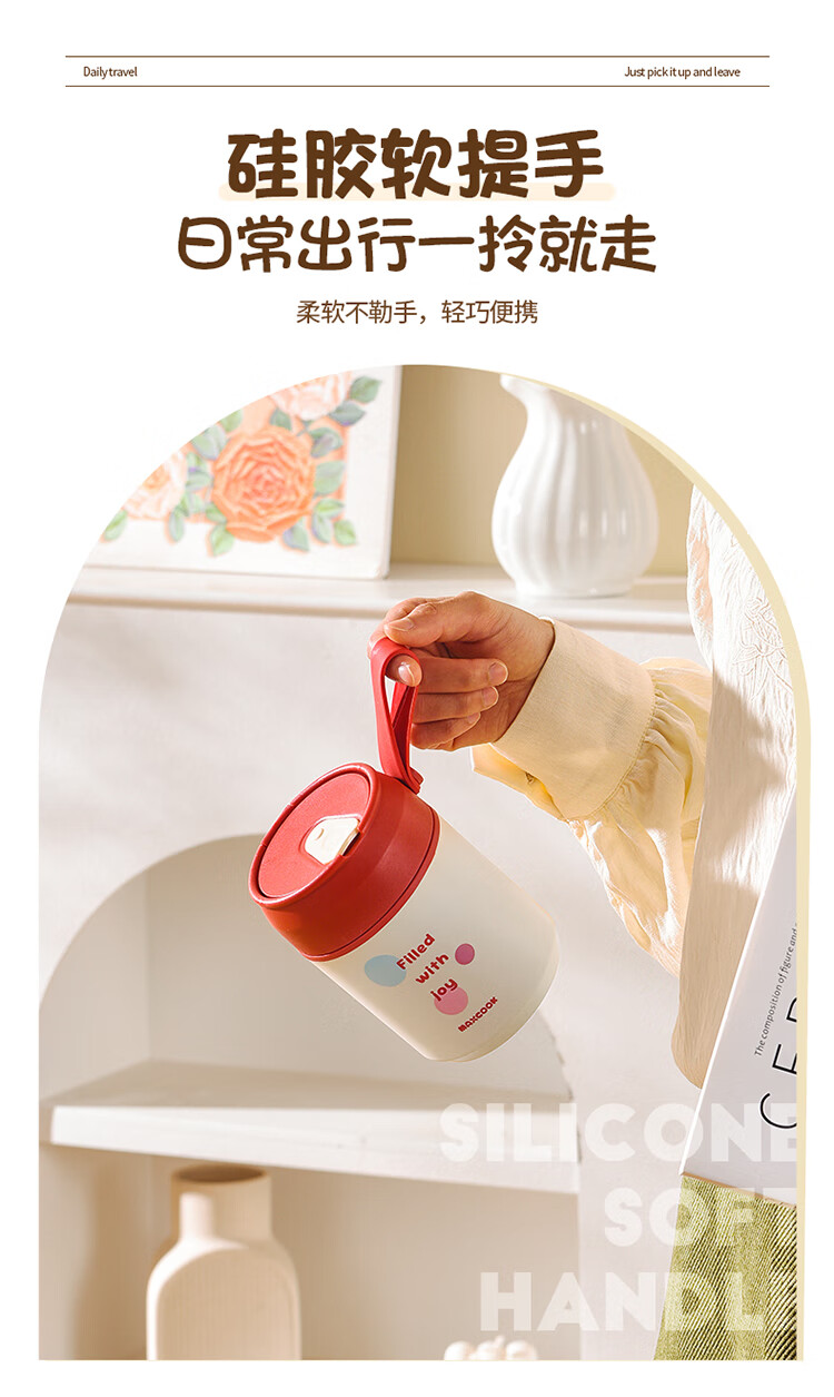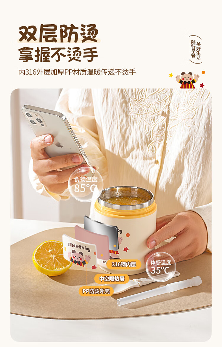 美厨(MAXCOOK)304不锈钢早餐杯豆浆燕麦片杯带盖勺外带便携不锈钢汤杯保温饭盒 高雅灰 杯+勺+吸管MCB0399550ml