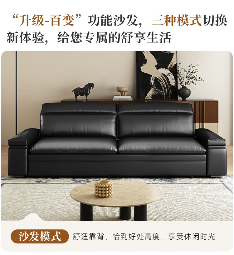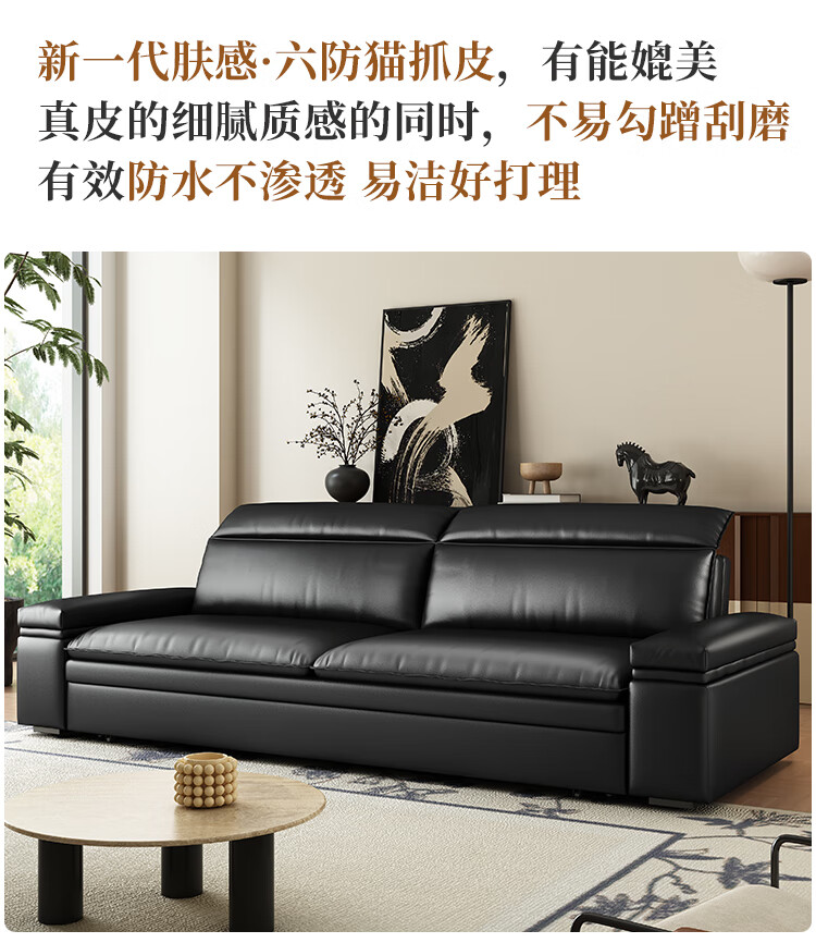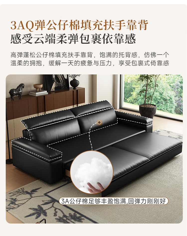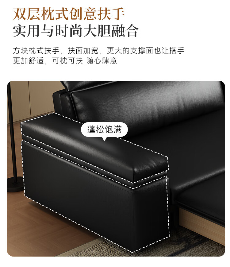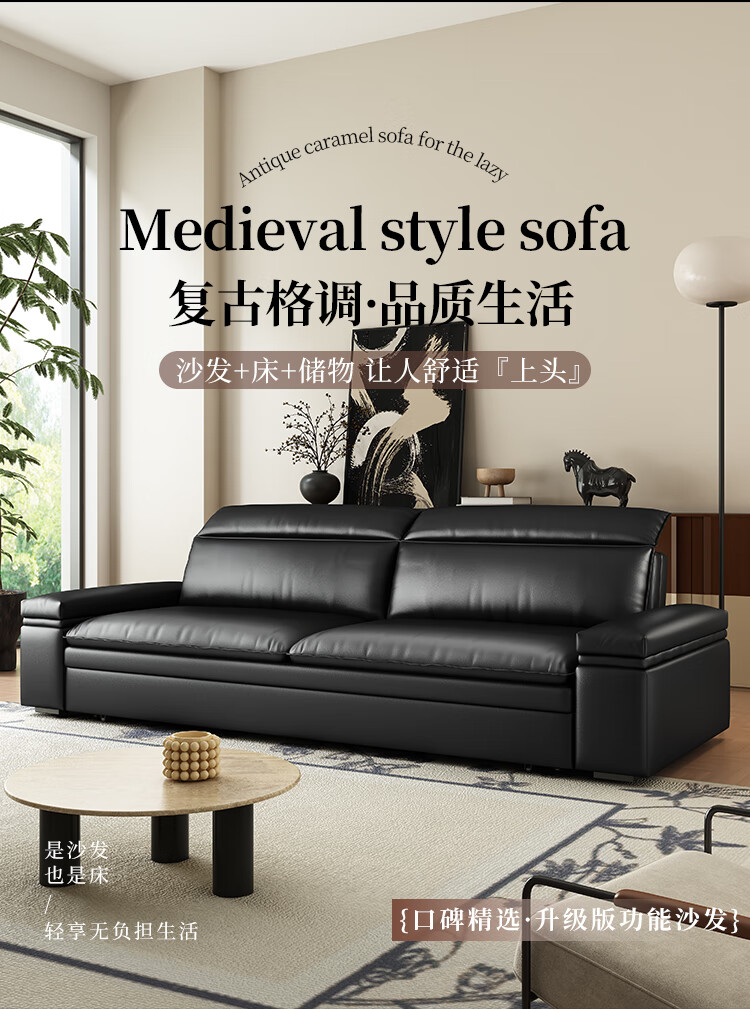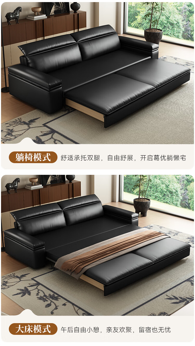 哈森诗丹高端中古风沙发床坐卧一体两用小户型客厅可折叠猫抓皮沙发可睡觉 外径:1.45m(无储物)可调节头枕 高弹海绵款(加厚猫抓皮)