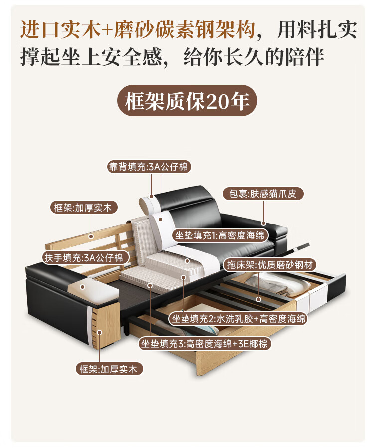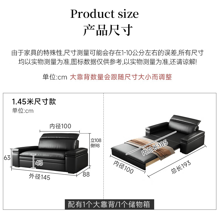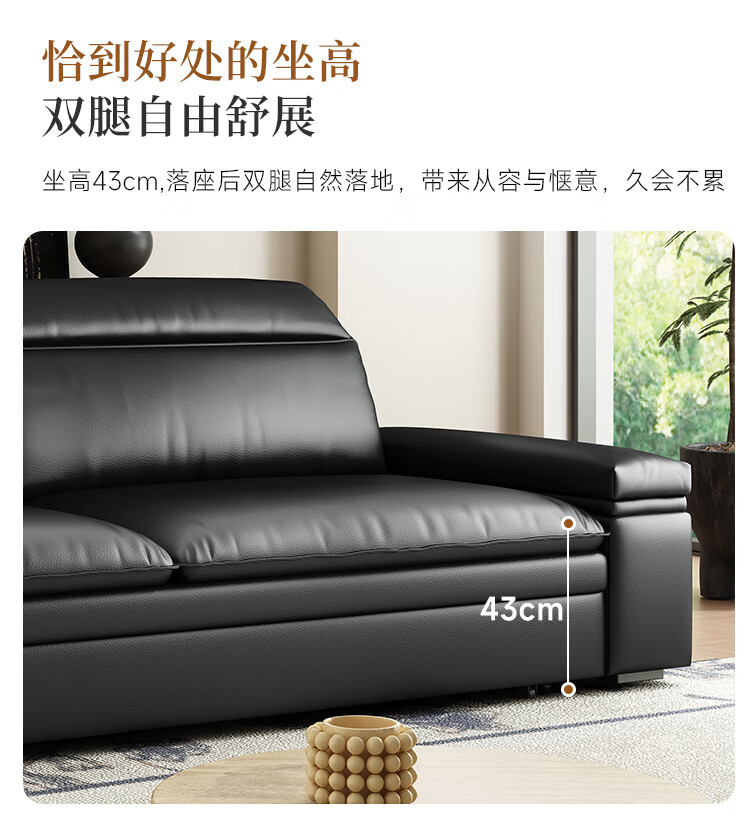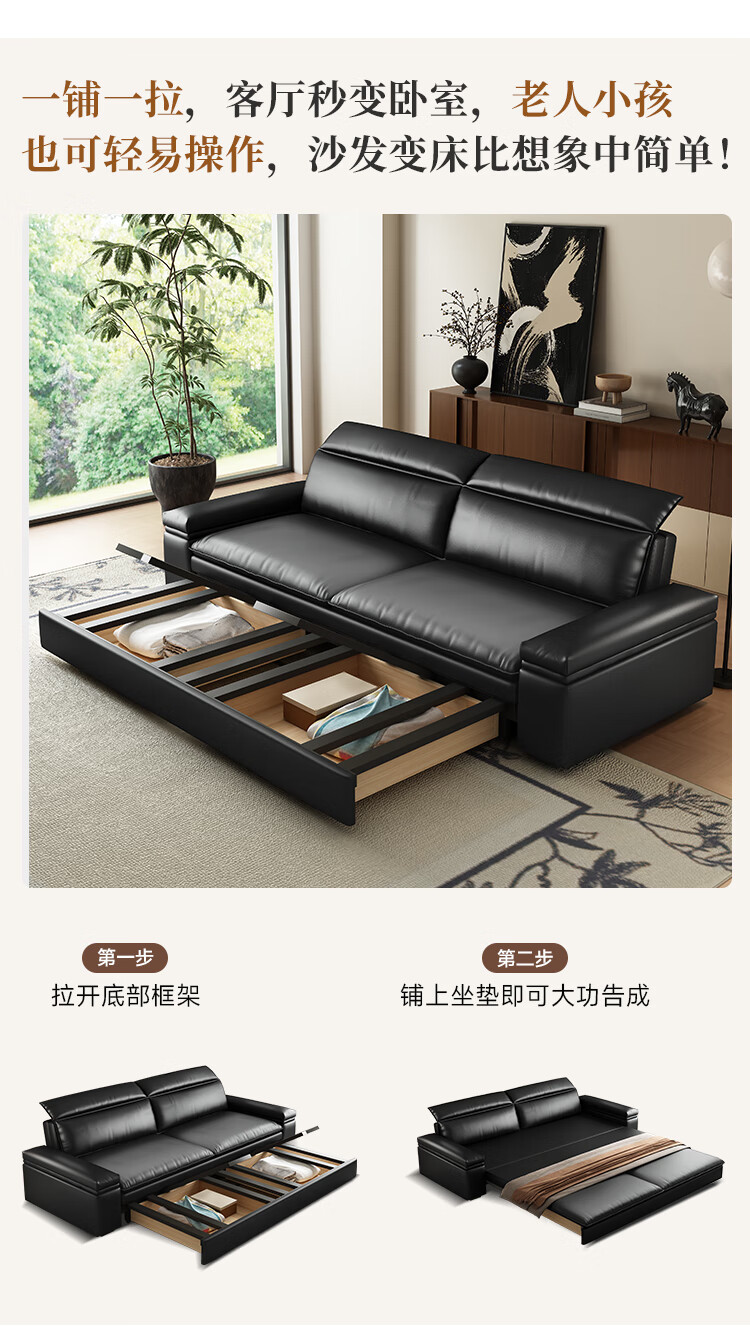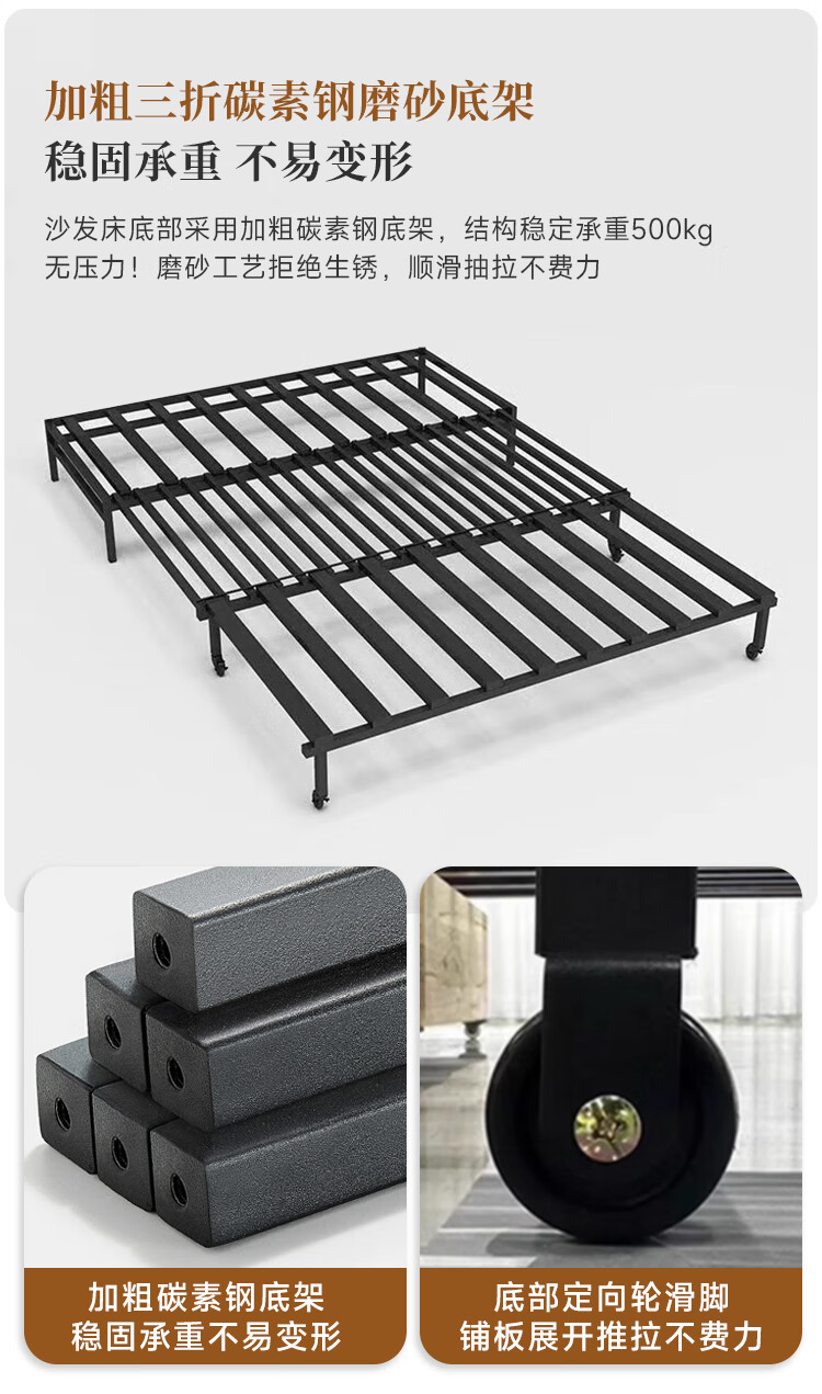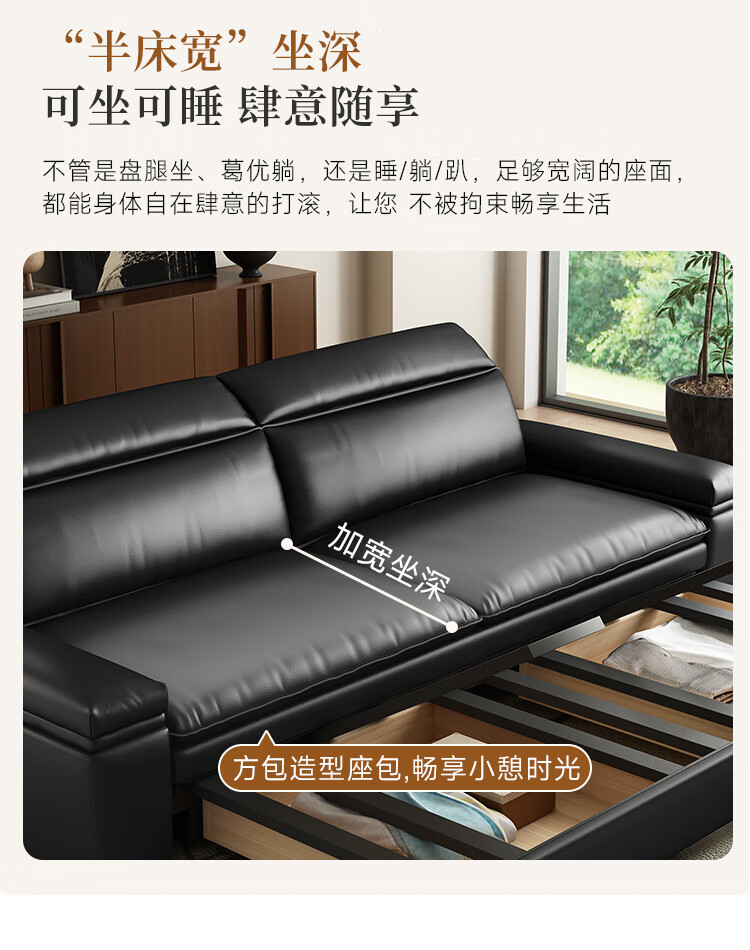 哈森诗丹高端中古风沙发床坐卧一体两用小户型客厅可折叠猫抓皮沙发可睡觉 外径:1.45m(无储物)可调节头枕 高弹海绵款(加厚猫抓皮)