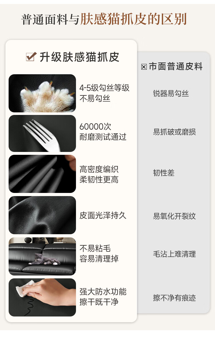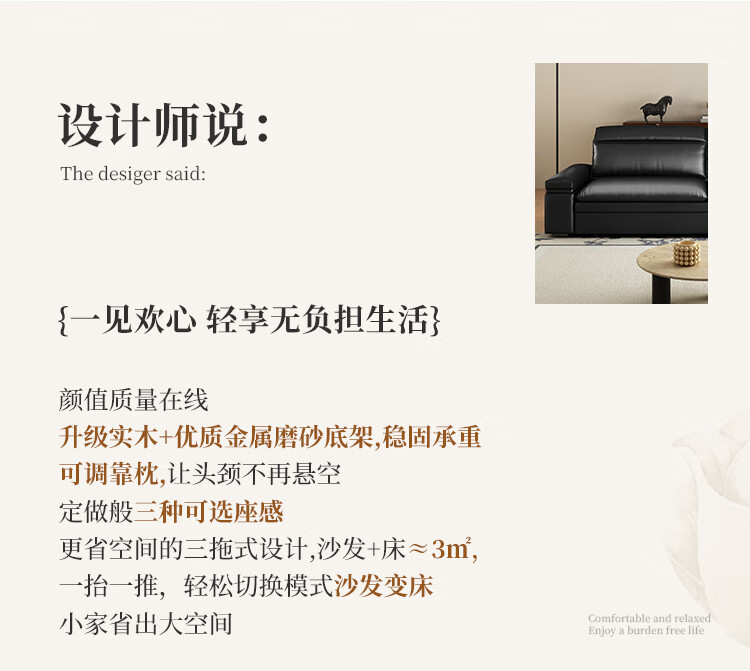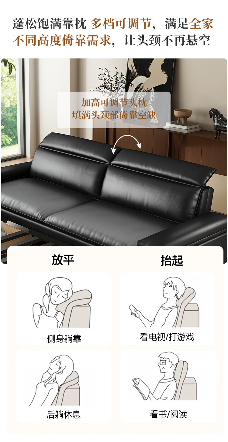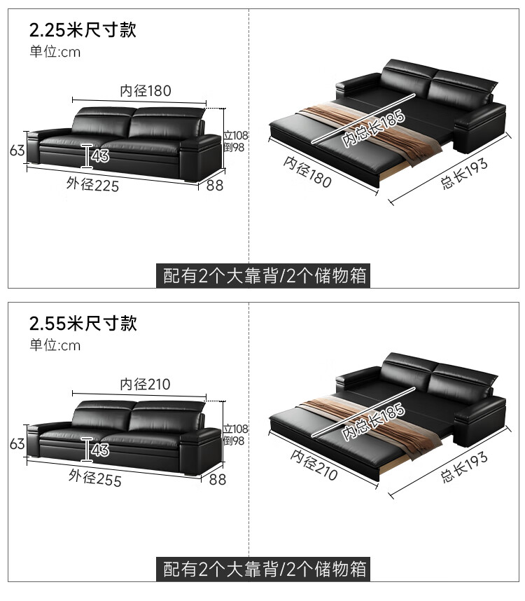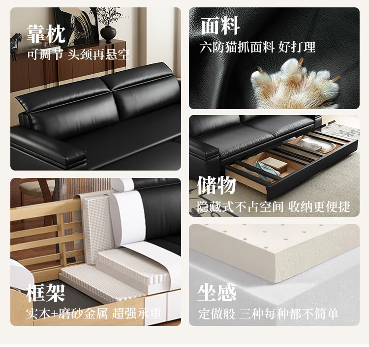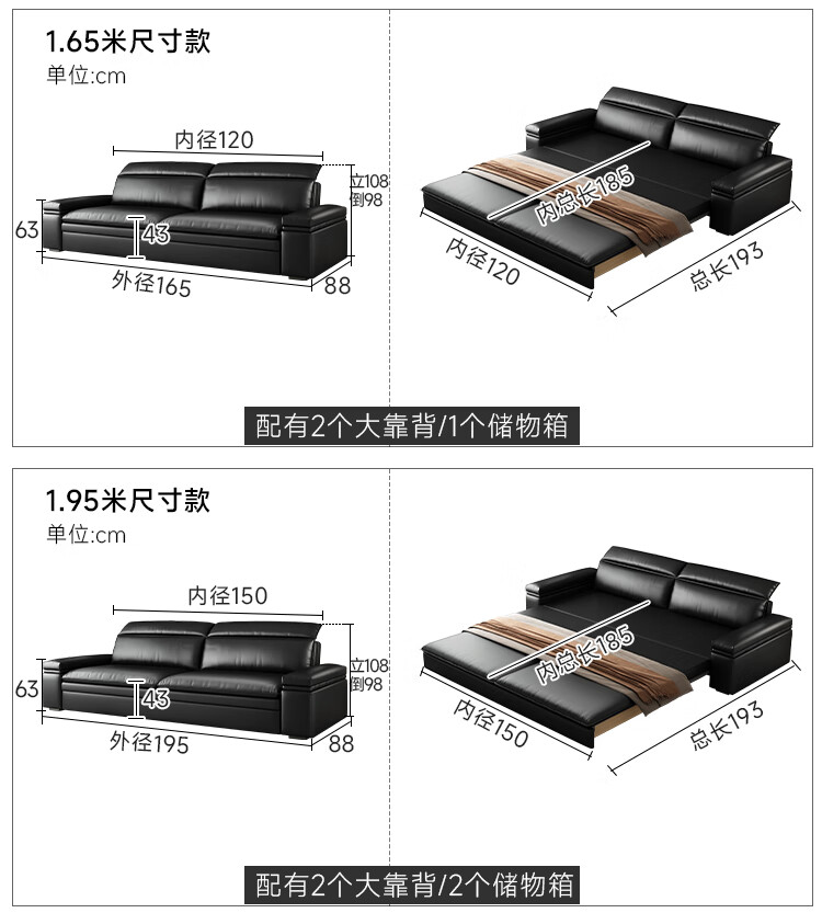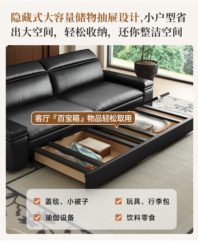 哈森诗丹高端中古风沙发床坐卧一体两用小户型客厅可折叠猫抓皮沙发可睡觉 外径:1.45m(无储物)可调节头枕 高弹海绵款(加厚猫抓皮)