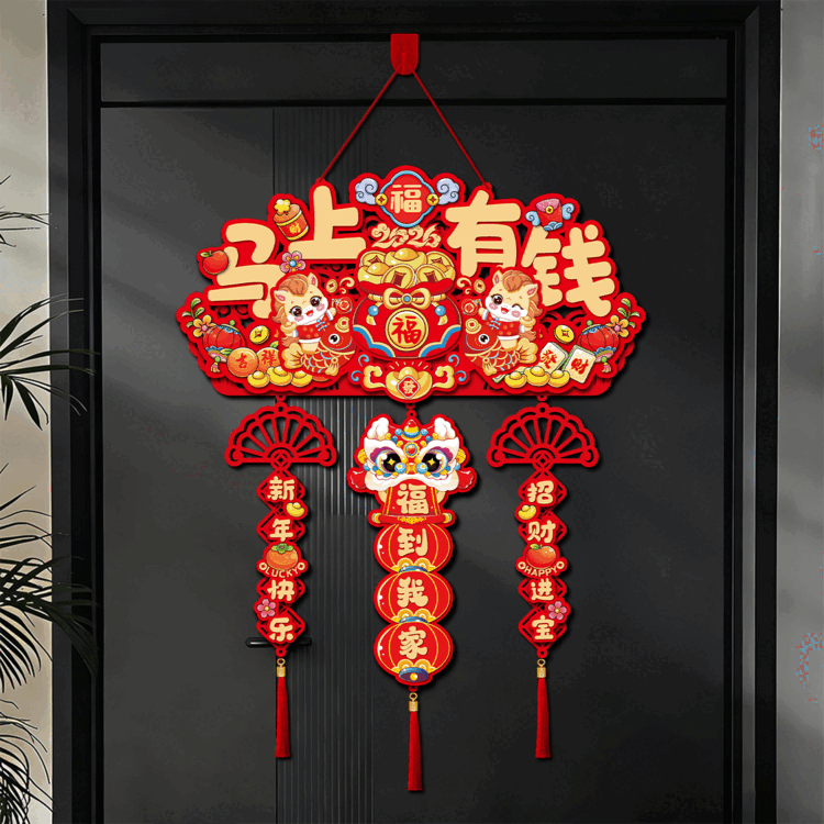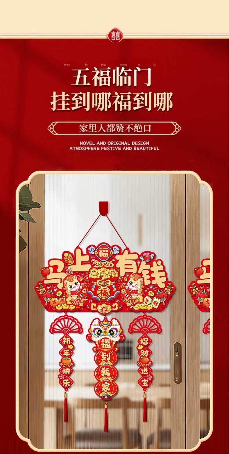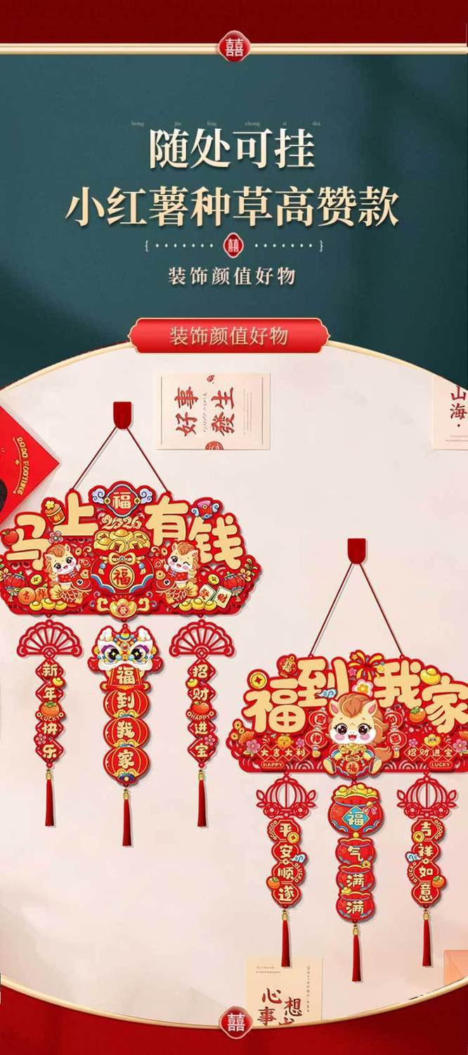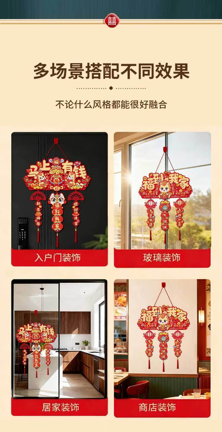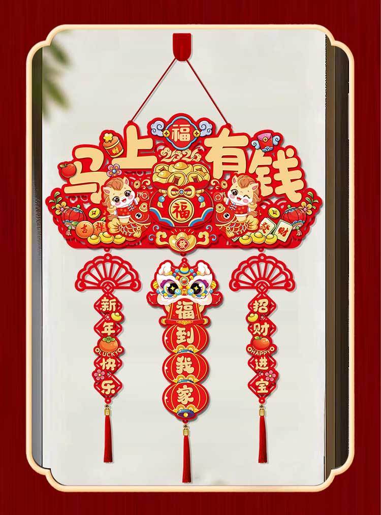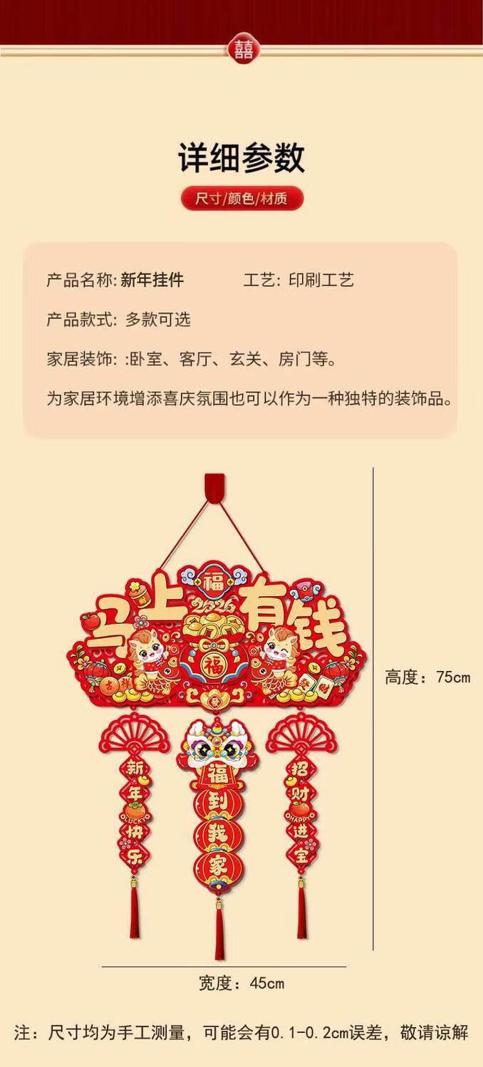OYKTN2026年马年新年挂件大门门挂装饰客厅背景墙玄关挂饰过年福字布置 2026新款【马年挂件45x70cm】送挂钩 单个装【马上有钱】