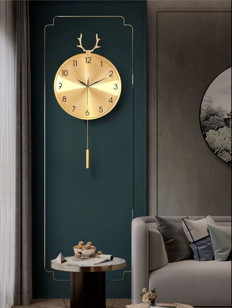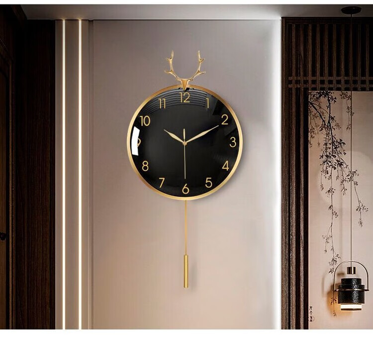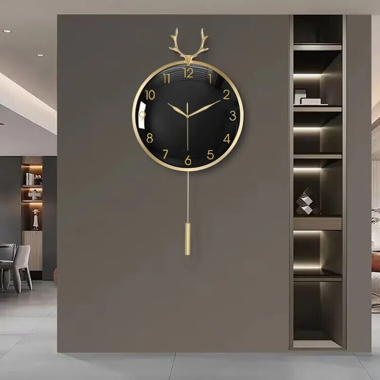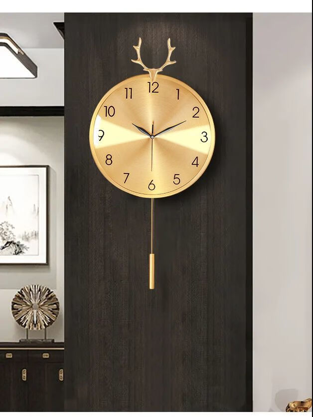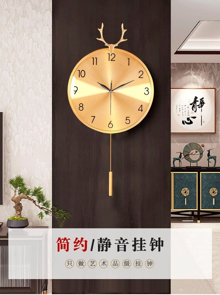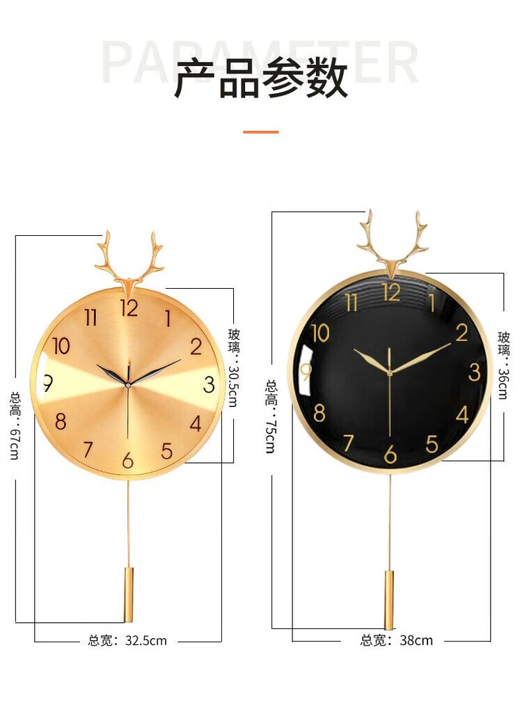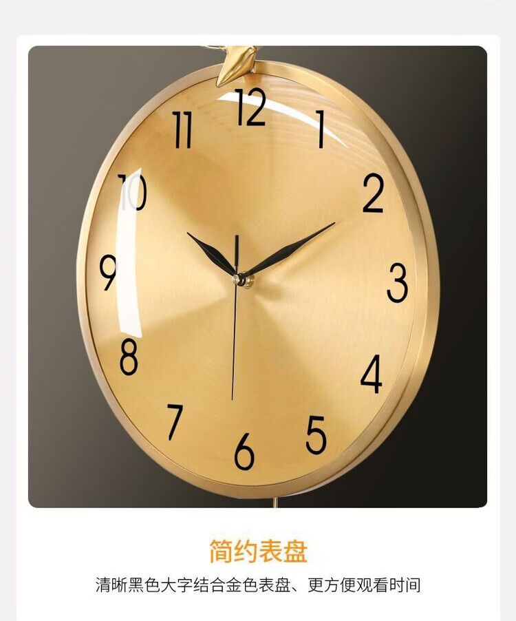 OYKTN挂钟客厅新款2026创意钟表家用挂墙石英钟墙上静音免打孔网红时钟 金色款 小号-长67cm*宽30cm【18%的人选择】