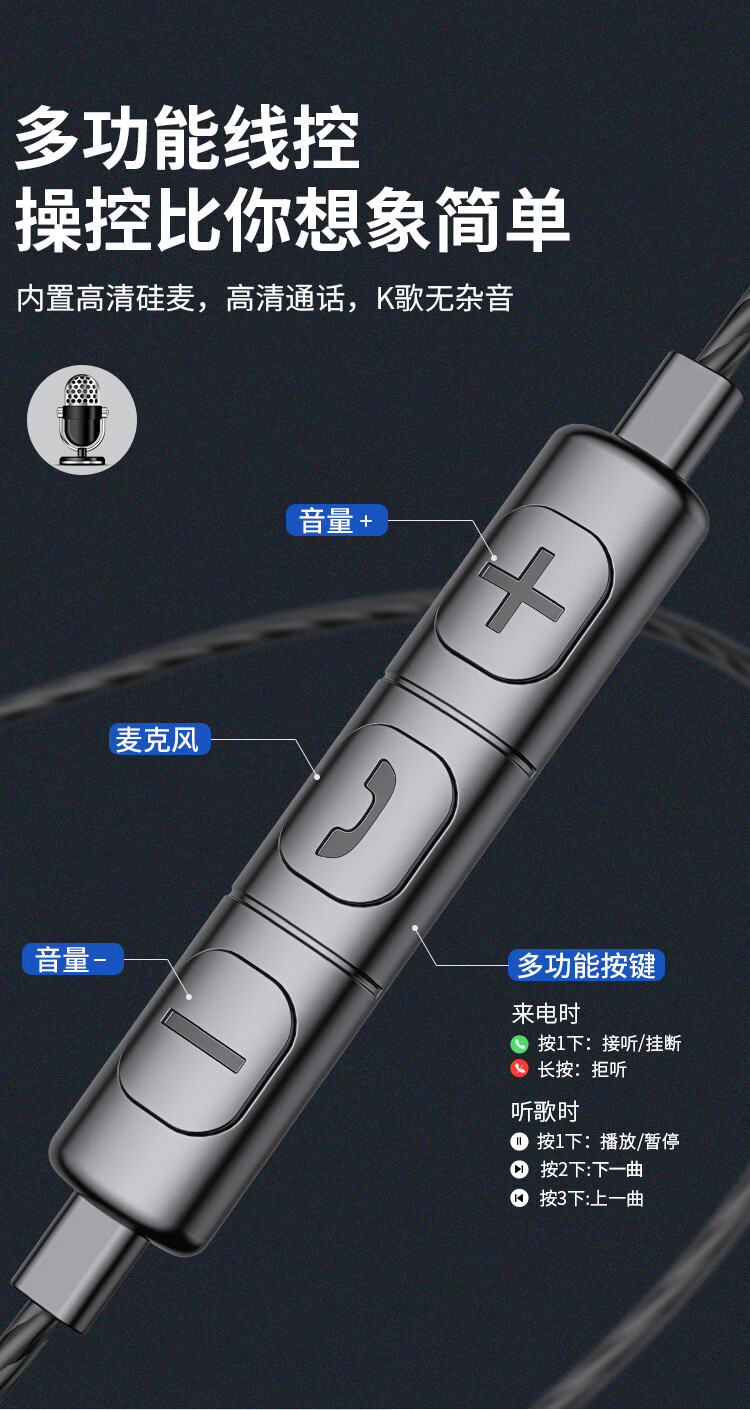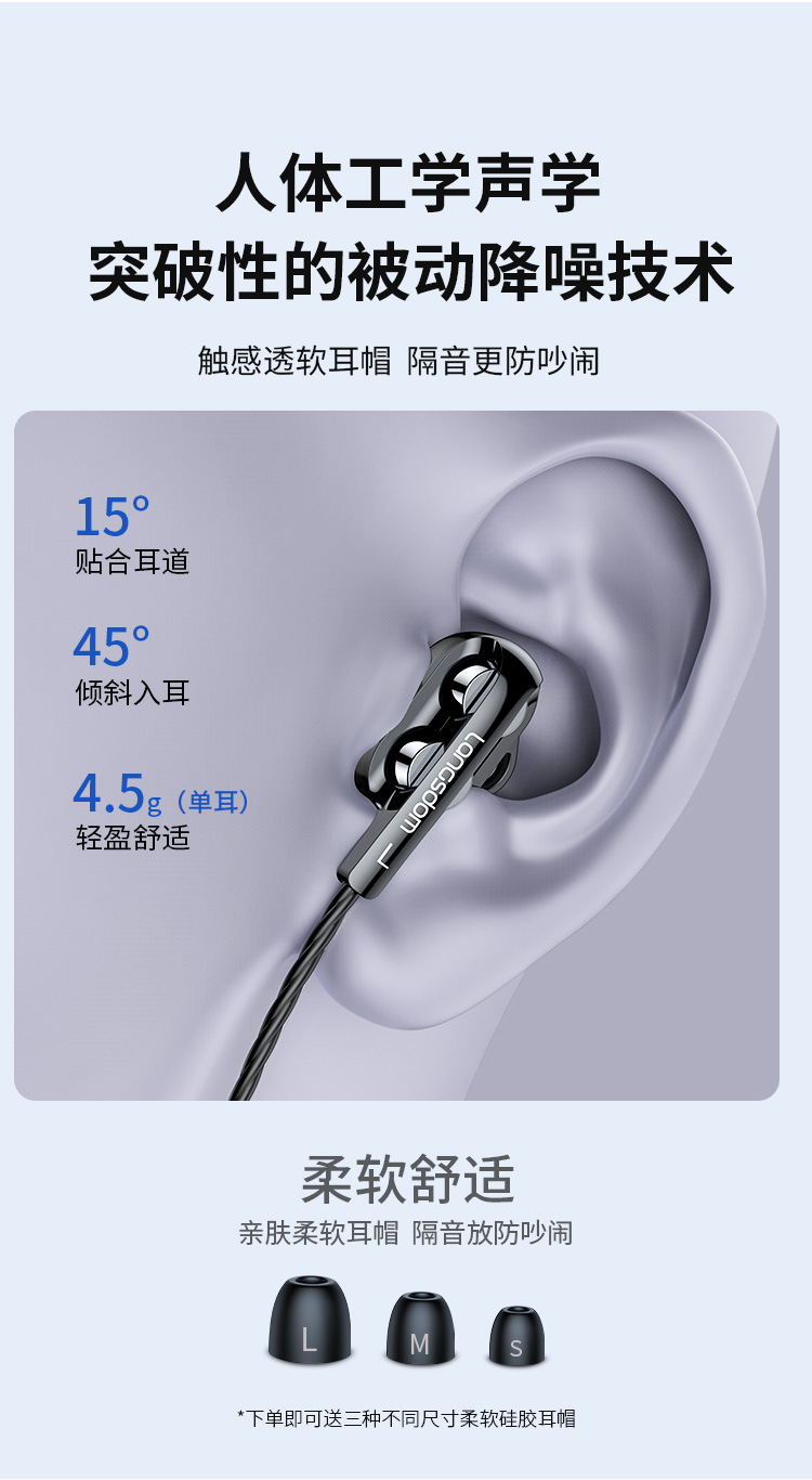 兰士顿 耳机有线入耳式降噪隔音 K歌音乐吃鸡游戏网课电脑麦克风低延迟 四核高清音效 D4C黑色