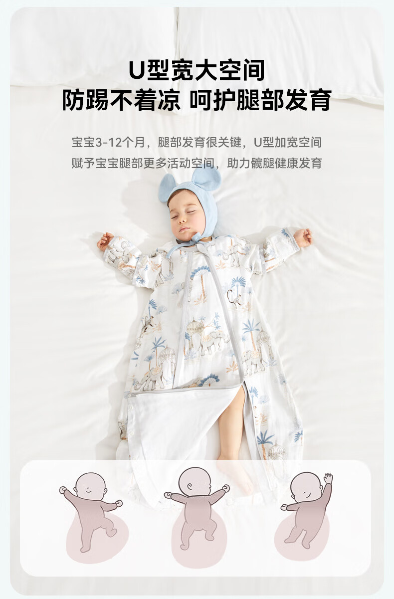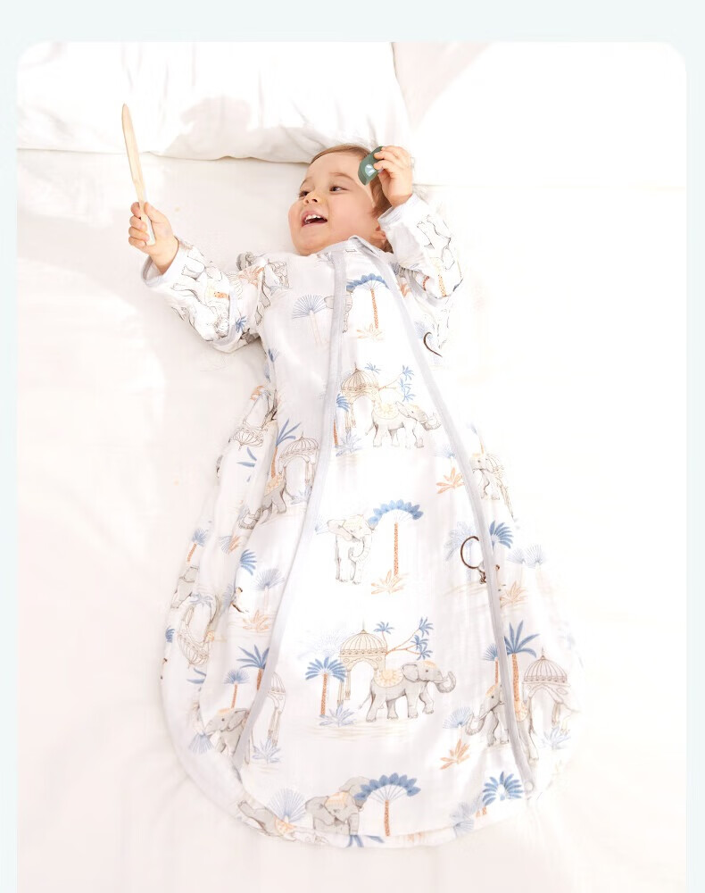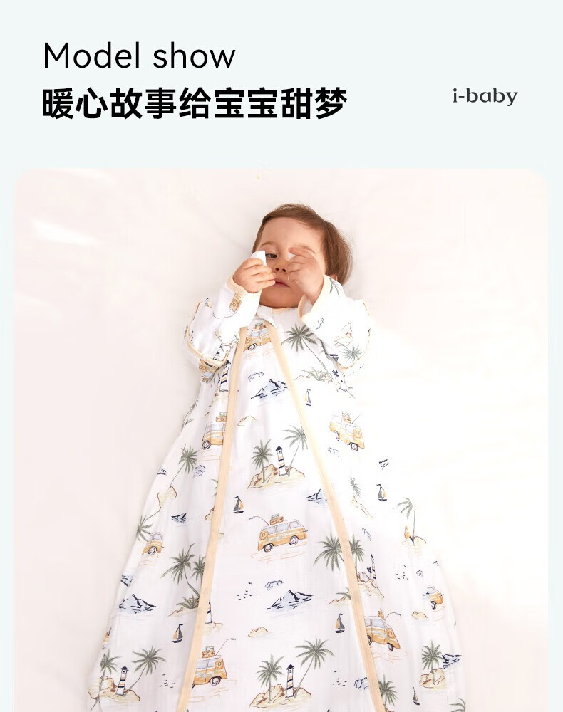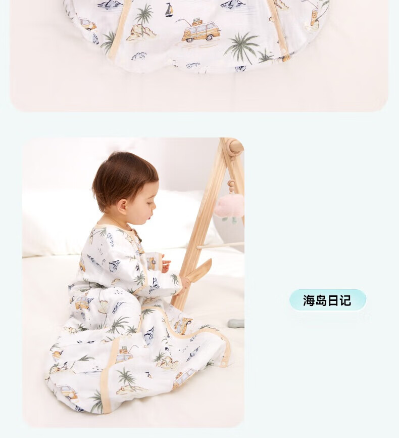 ibaby恒温四季款双层纱布睡袋亲肤宝宝安睡婴童U型防踢被新生儿睡被 【四季款】双层纱布-海岛日记 【9-18个月】80码