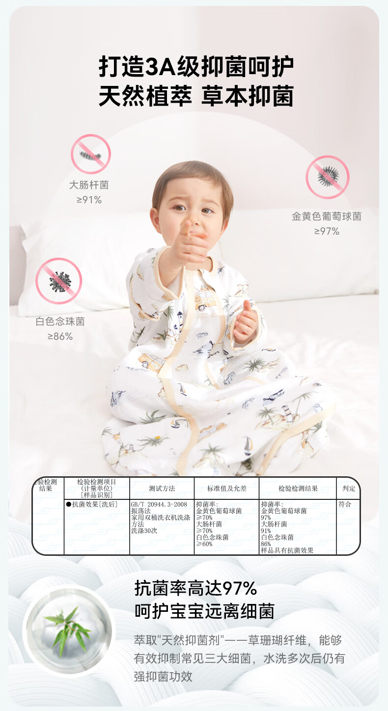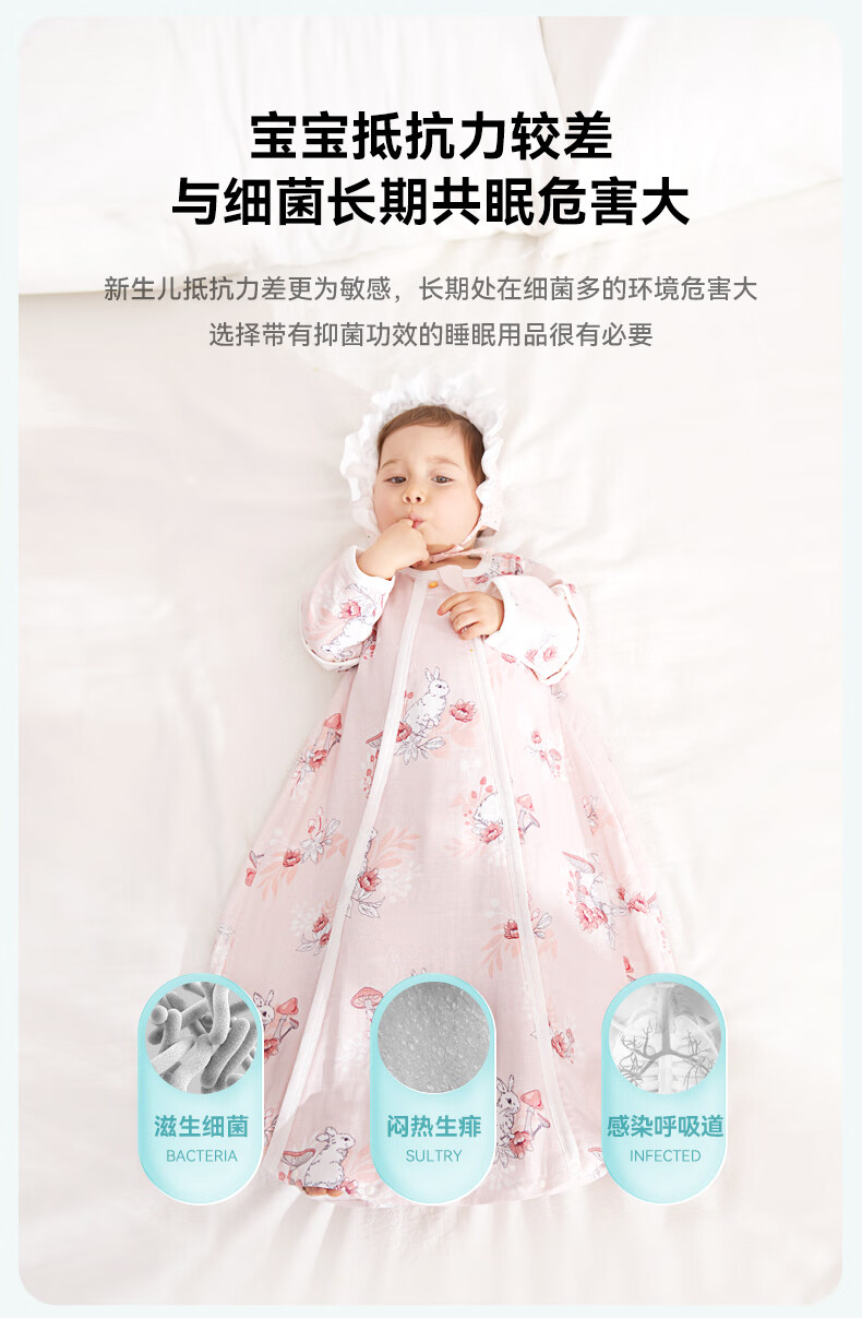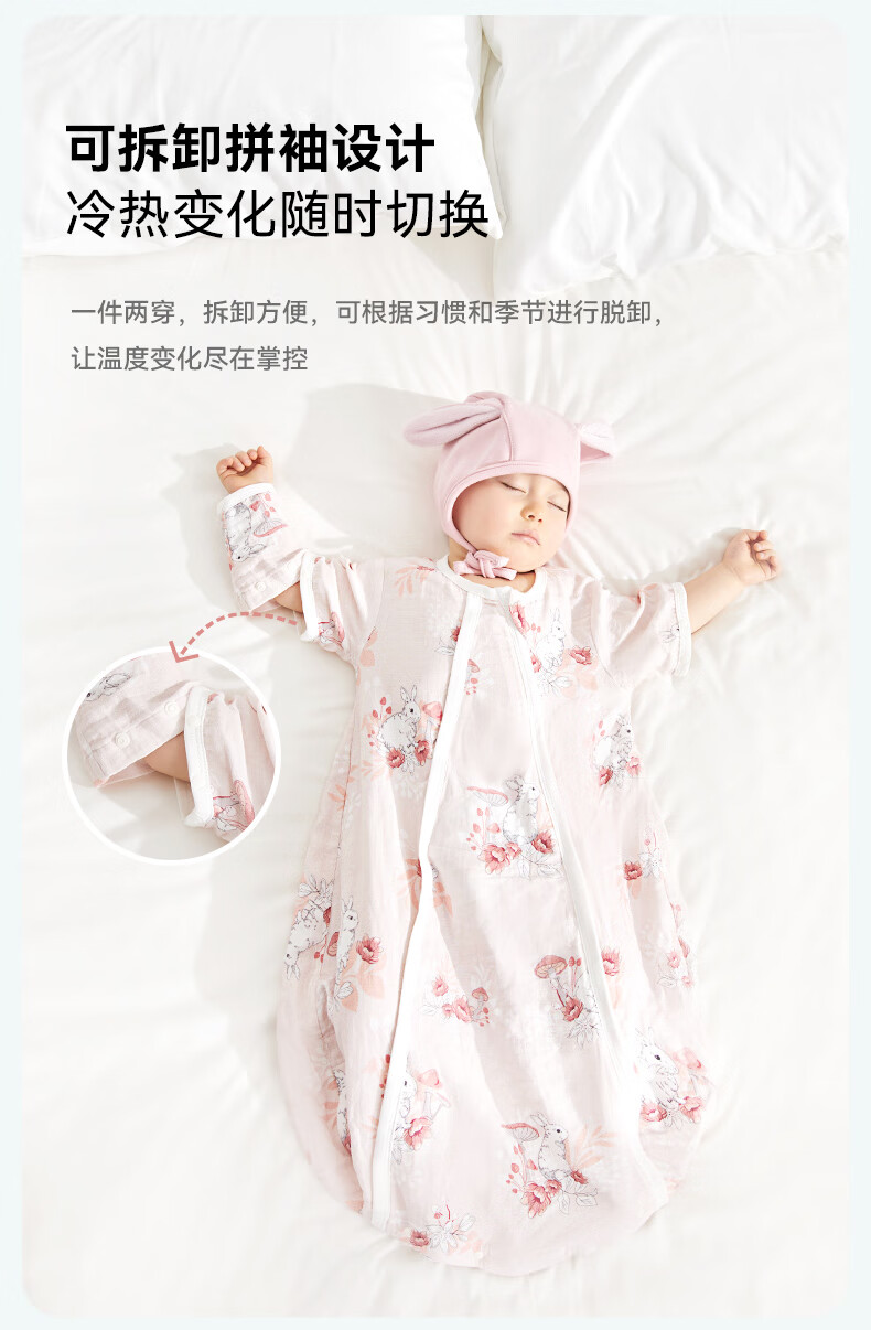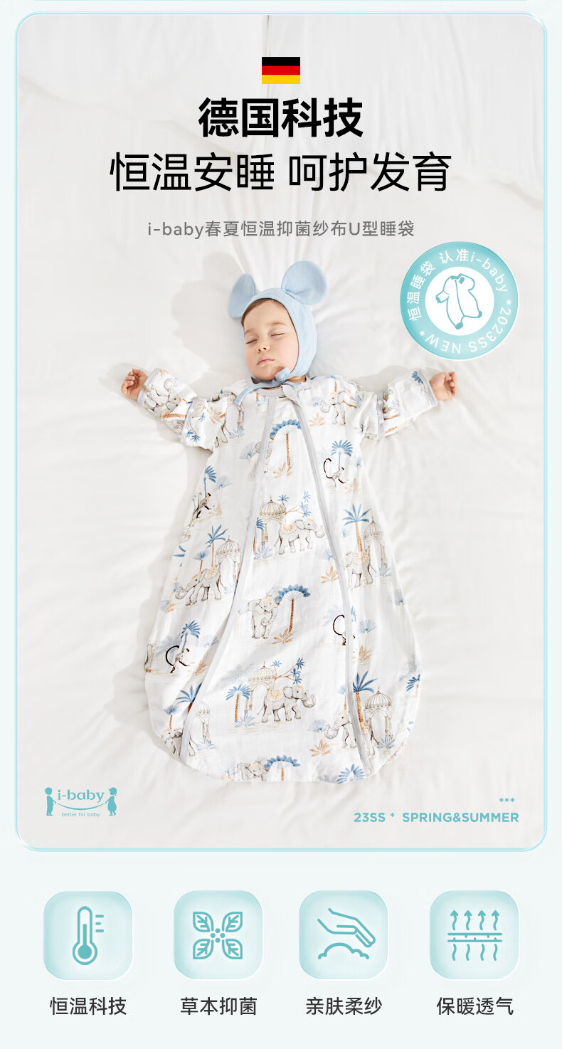 ibaby恒温四季款双层纱布睡袋亲肤宝宝安睡婴童U型防踢被新生儿睡被 【四季款】双层纱布-海岛日记 【9-18个月】80码