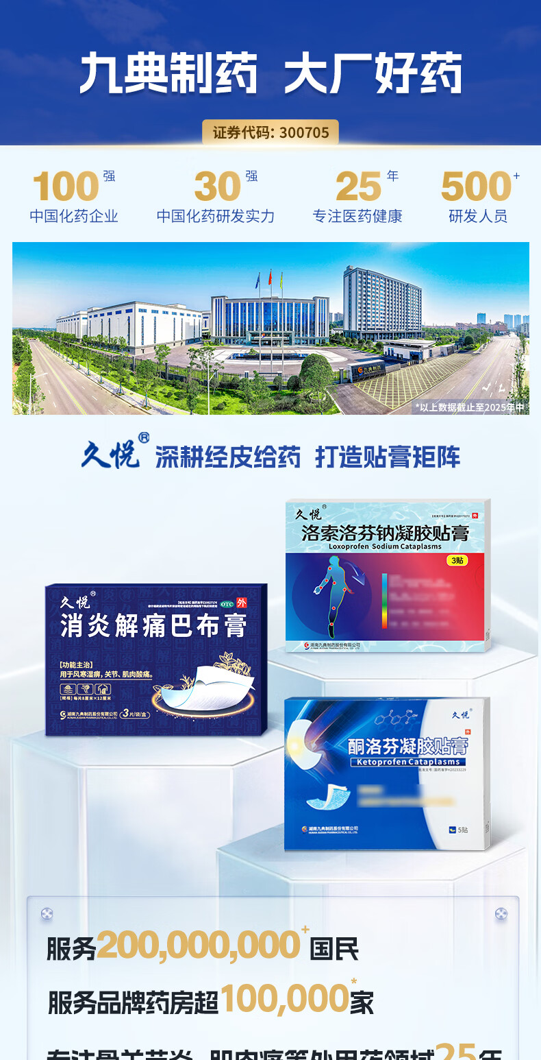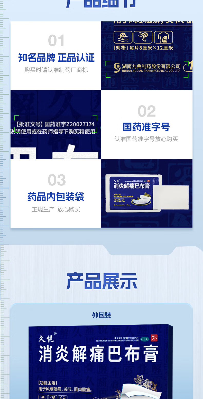[久悦]消炎解痛巴布膏 8cm*12cm*1贴 3盒装 1贴风寒湿痹关节肌肉酸疼痛脖子肩颈手腕膝关节冰感中药贴膏九典水杨酸甲酯