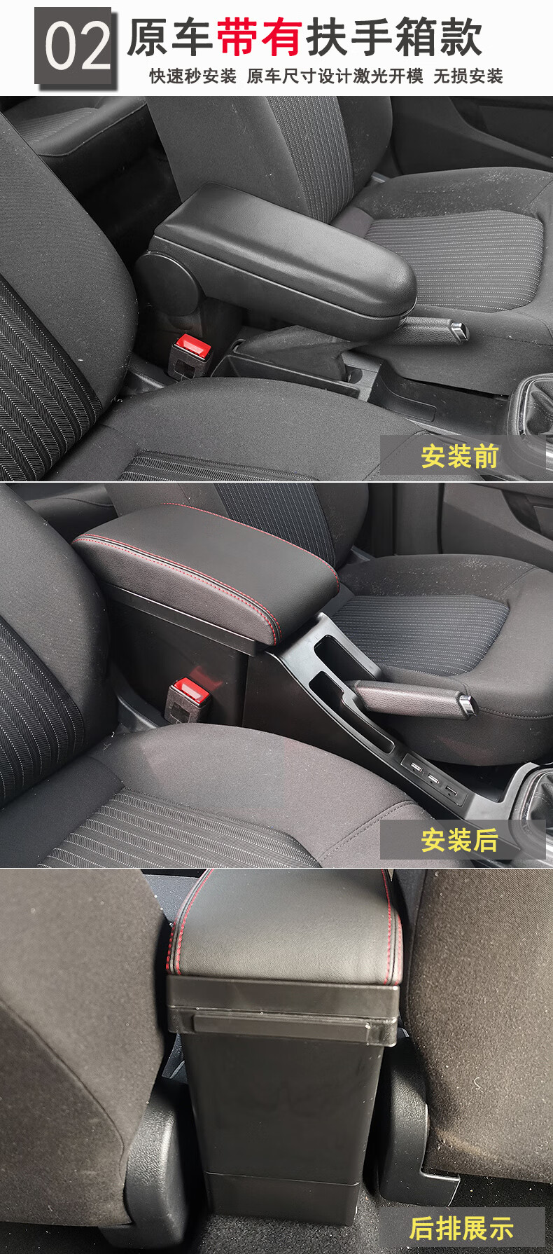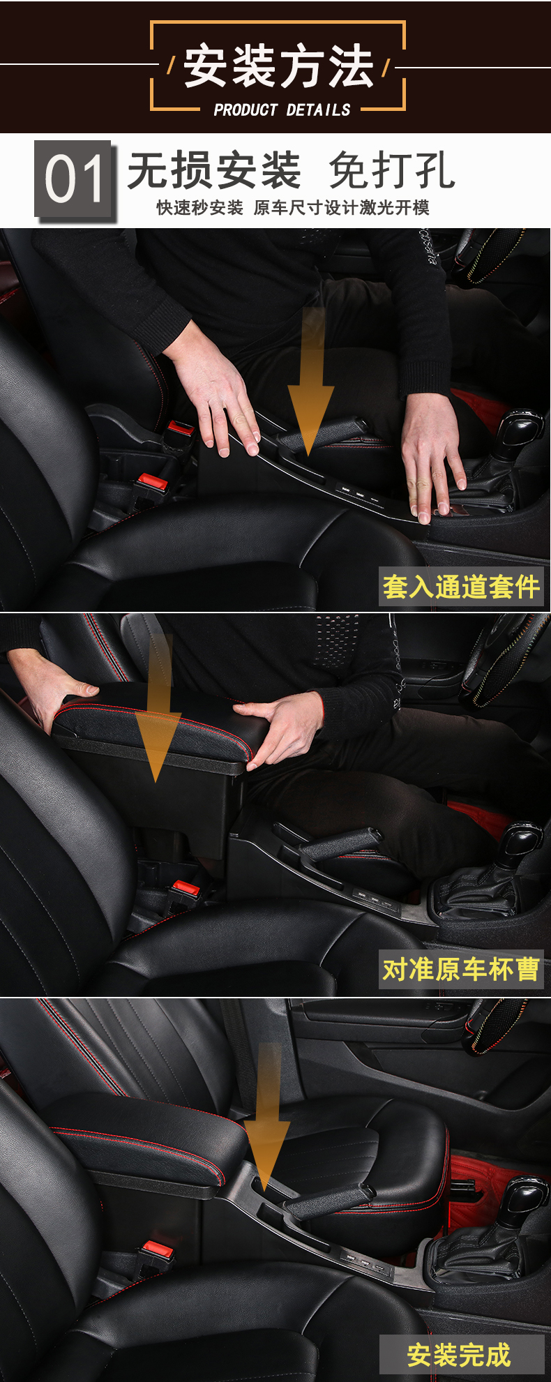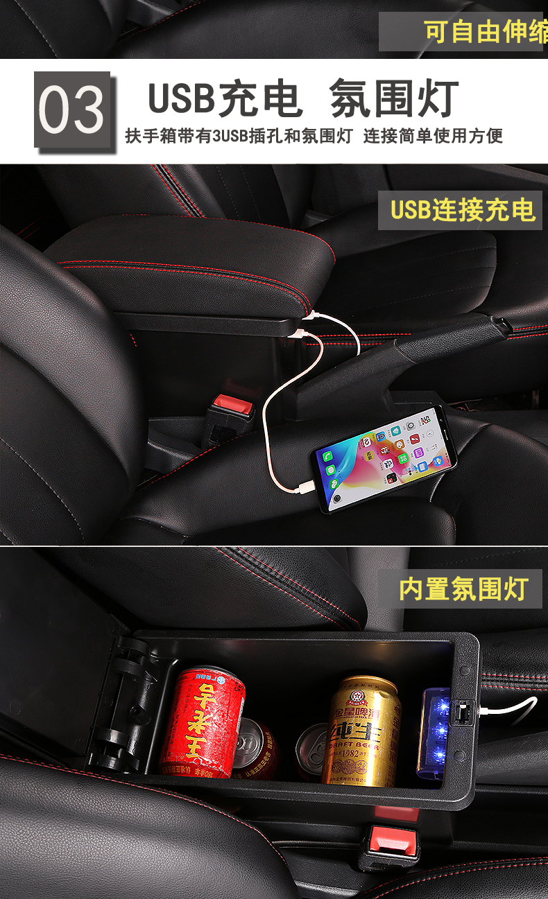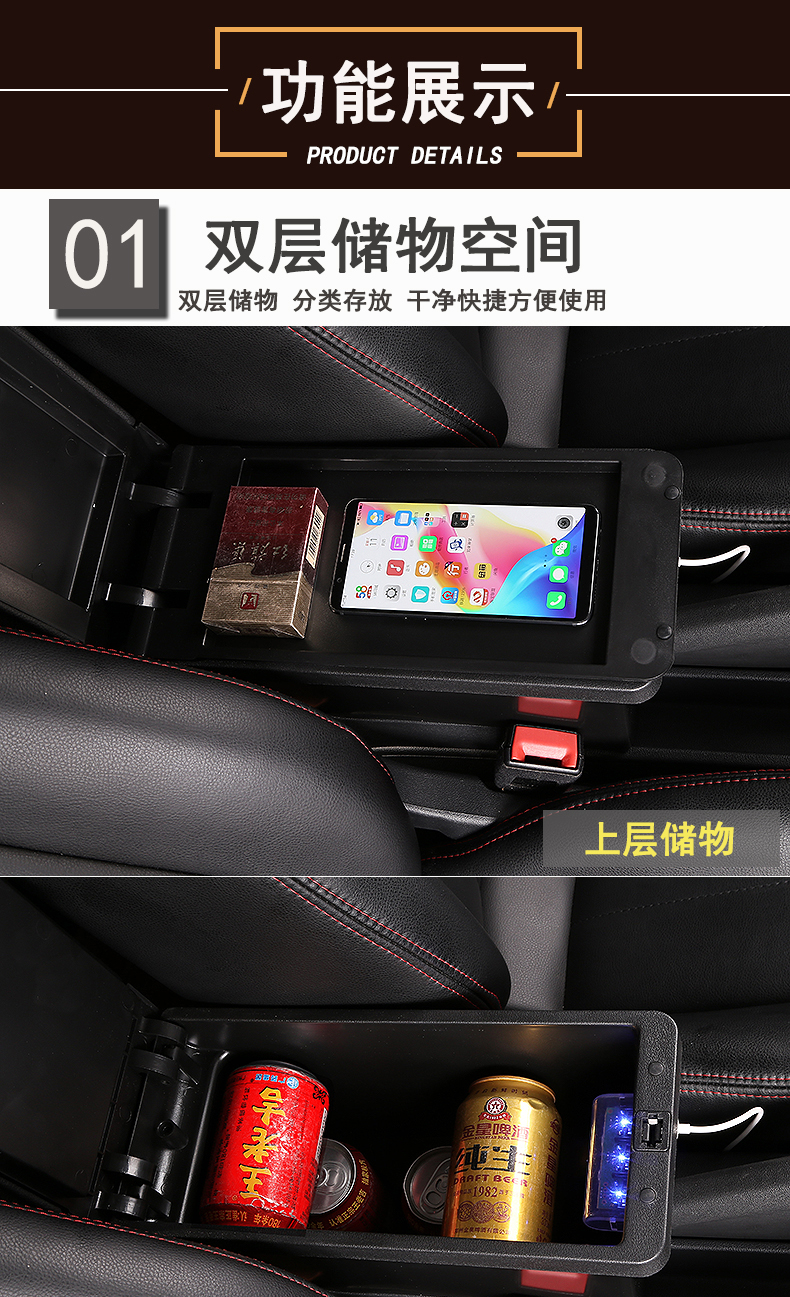 贝涵2021款大众新桑塔纳捷达va3扶手箱浩纳改装专用中央手扶箱内饰 超纤款【原车无扶手箱】黑色红线 USB【慢充款】