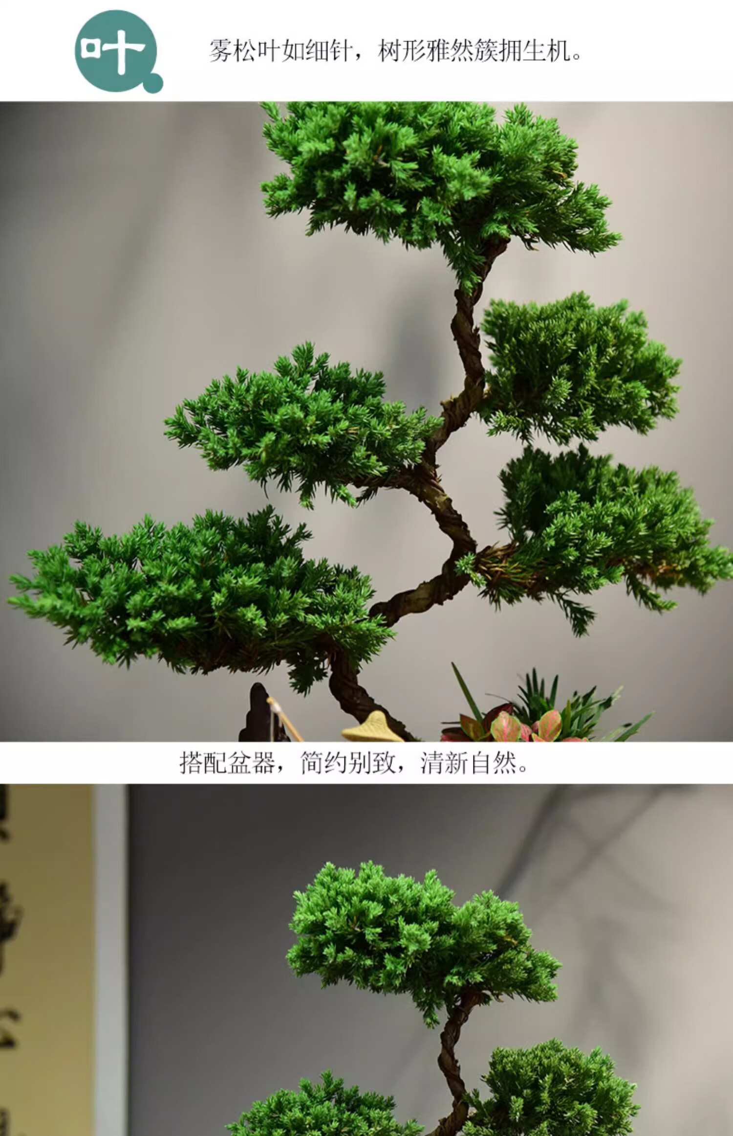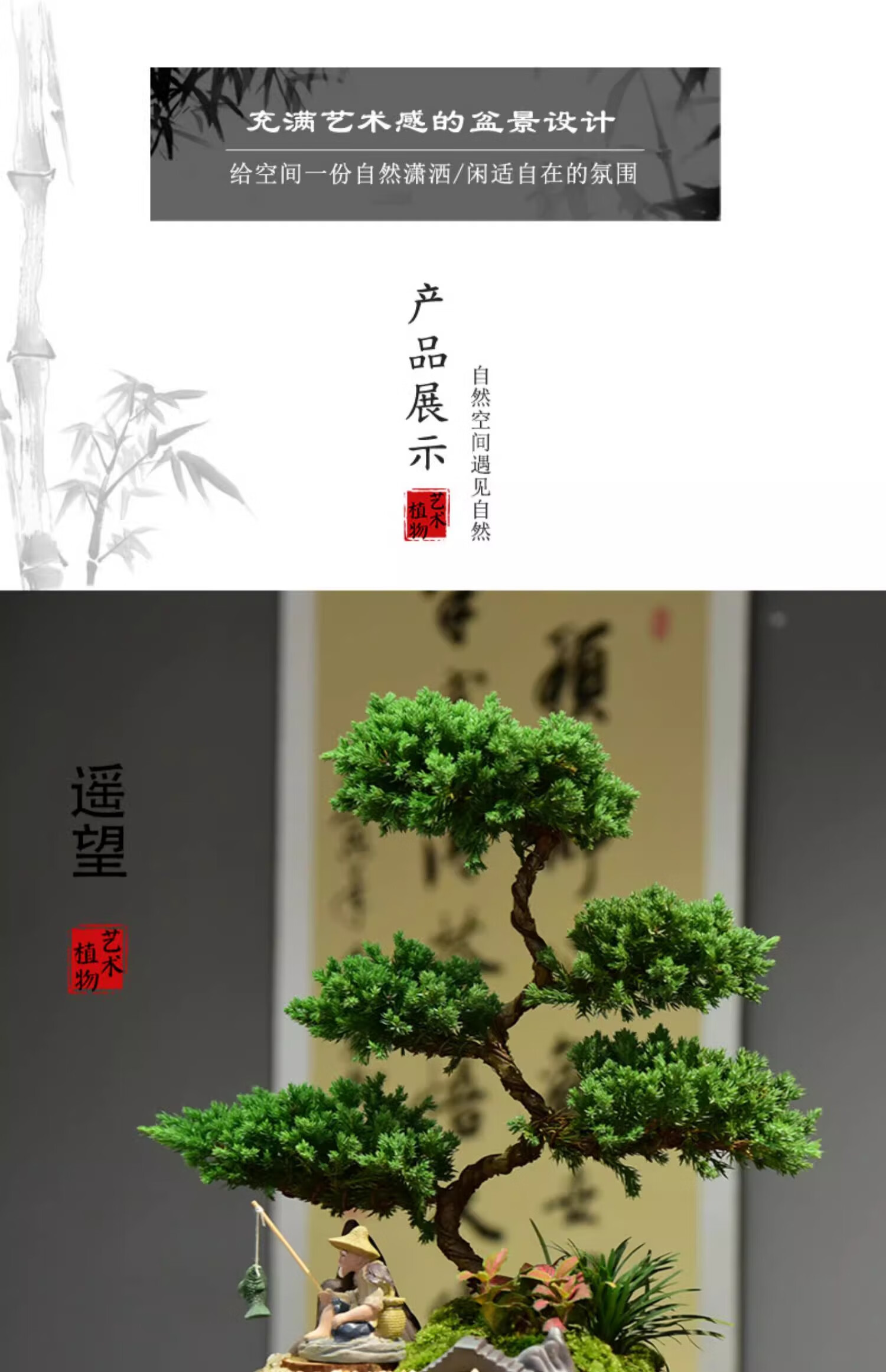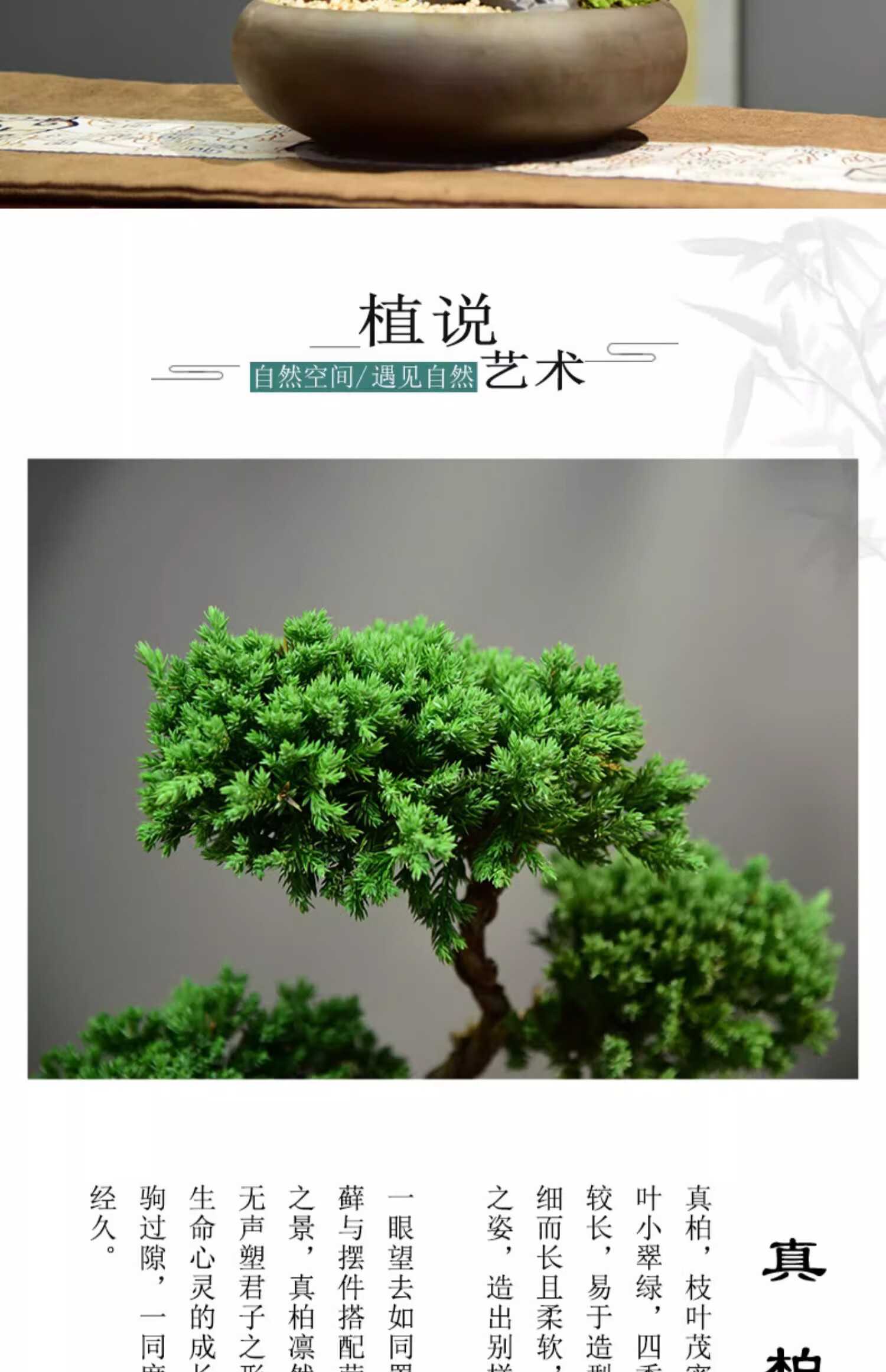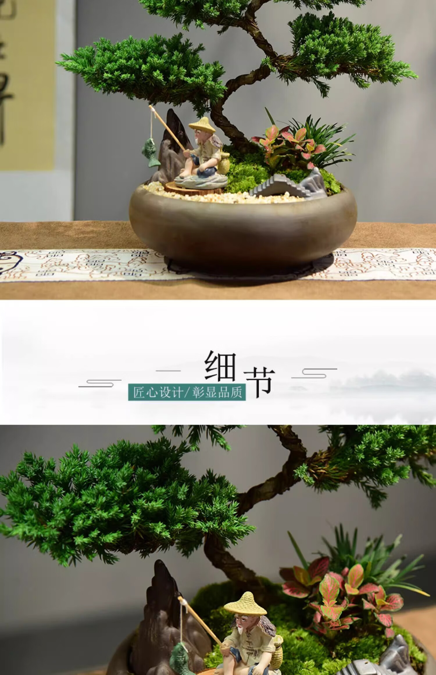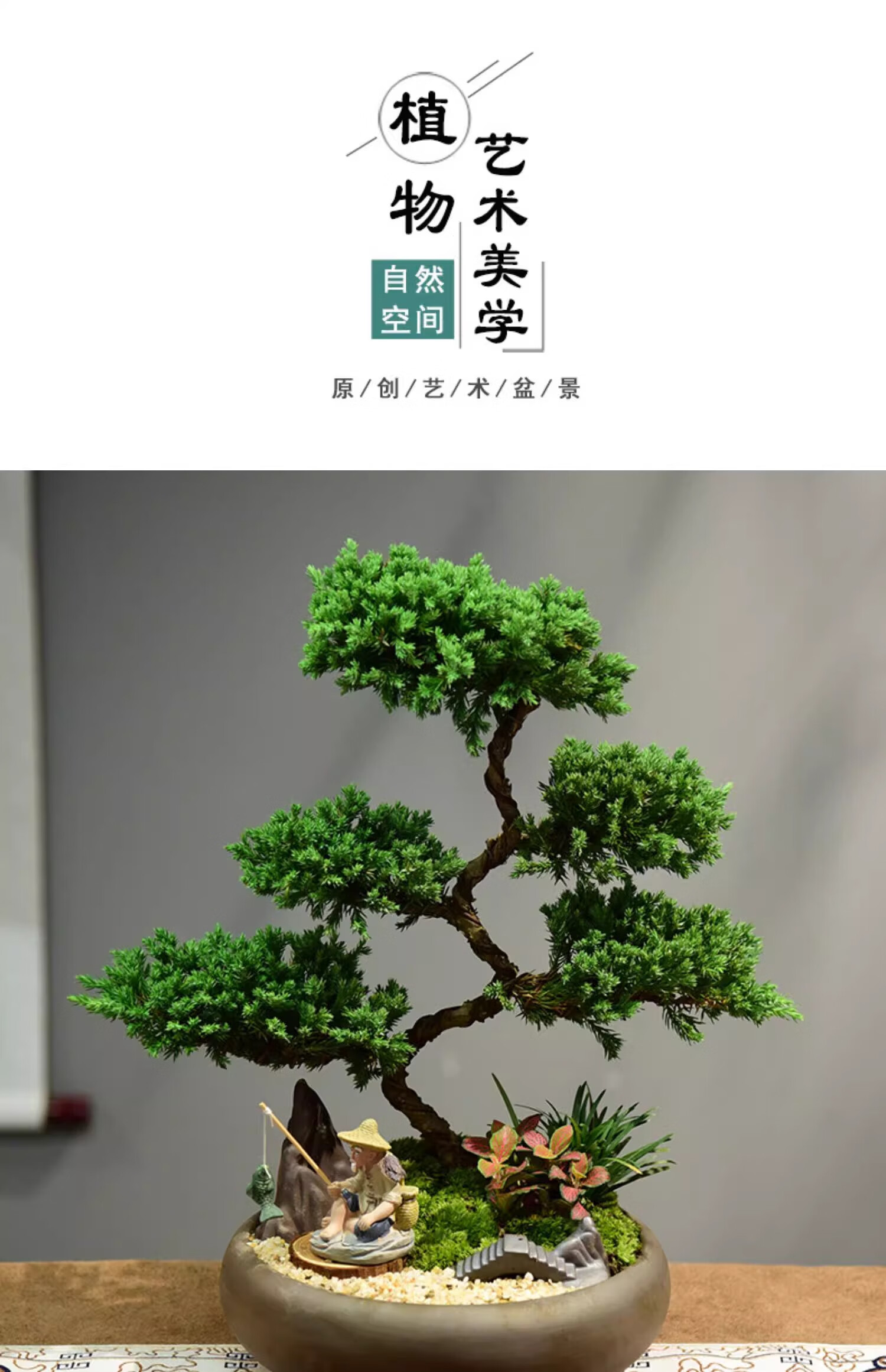 真柏盆栽室内办公室开业绿植迎客松造型茶桌绿植盆景真树桌面摆件 境林艺术3层真柏+简古底座+渔夫 送营养液和喷壶