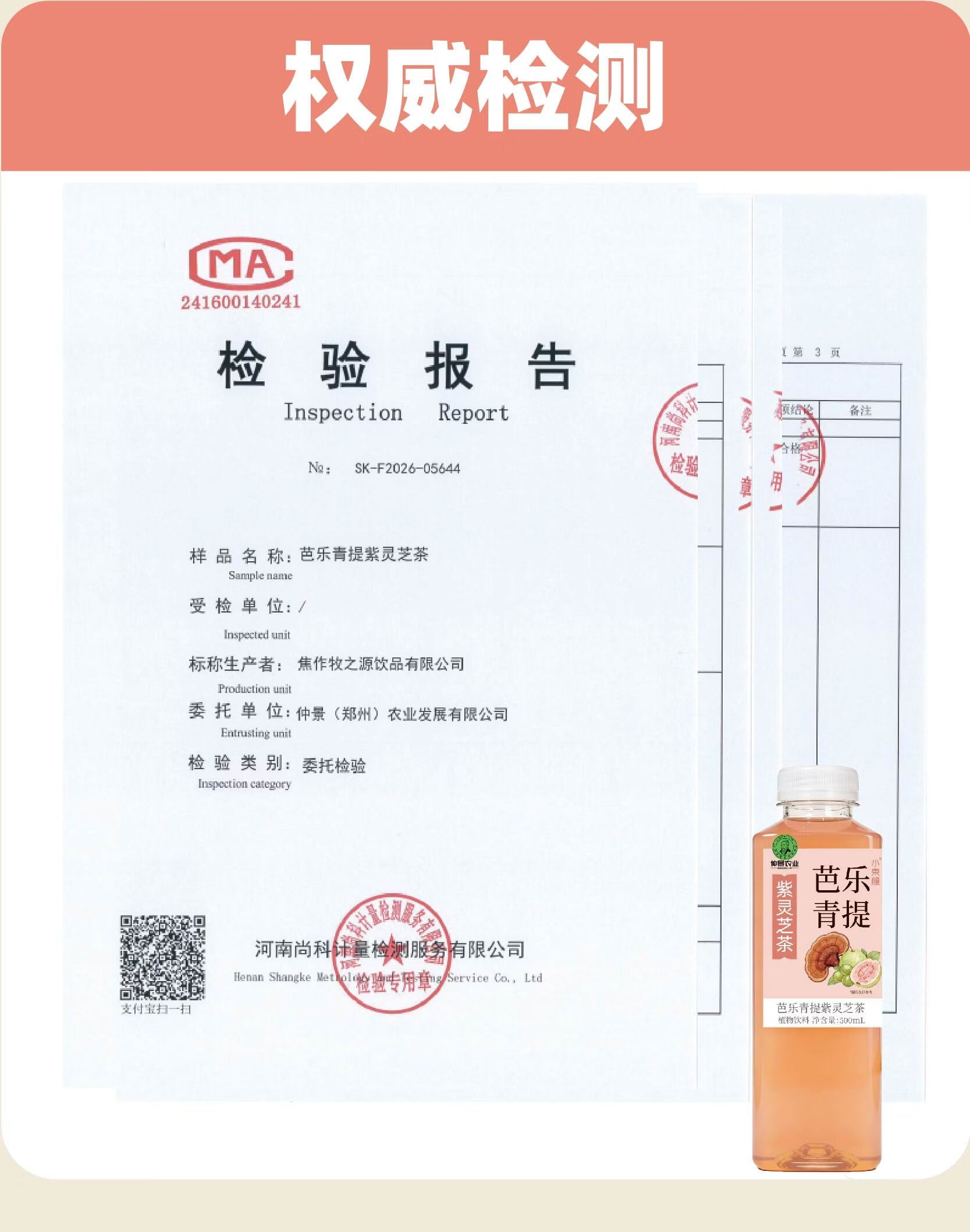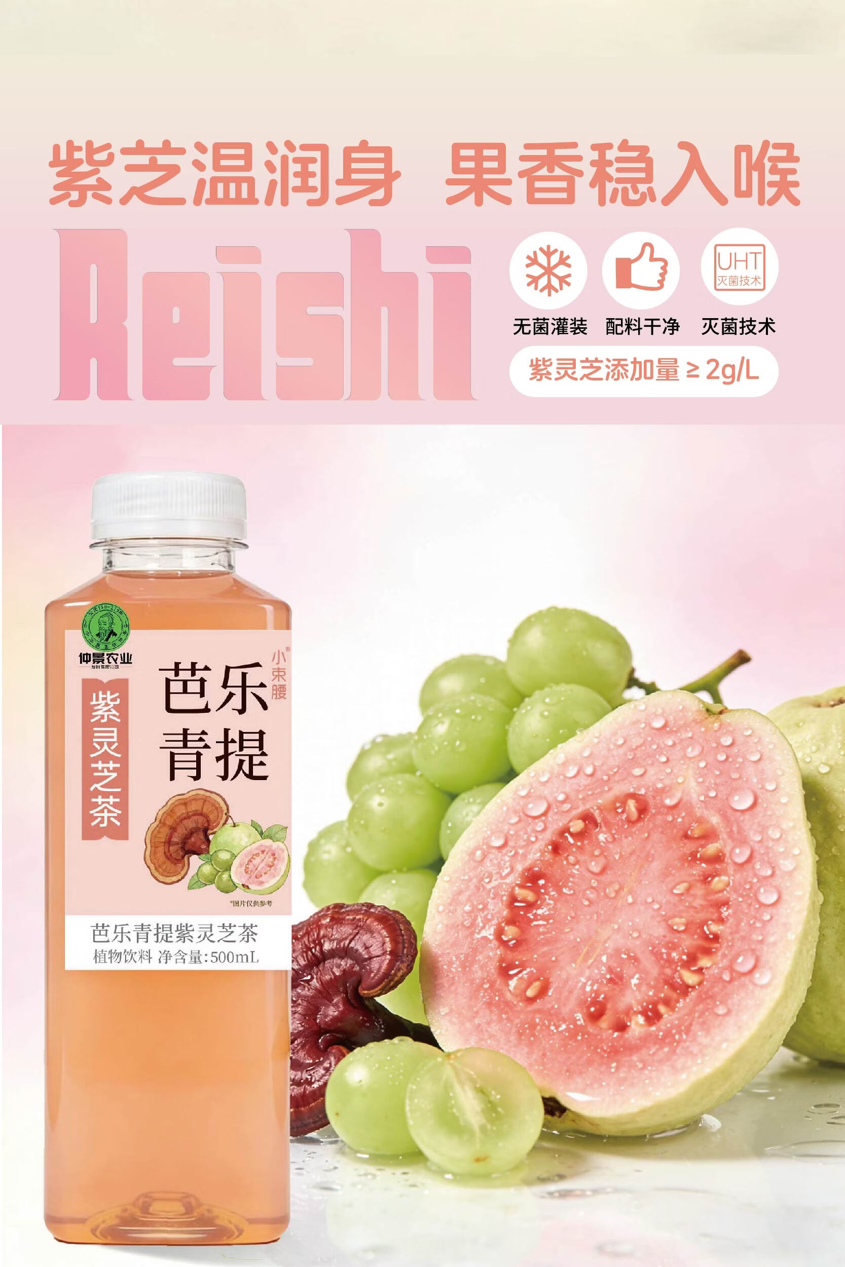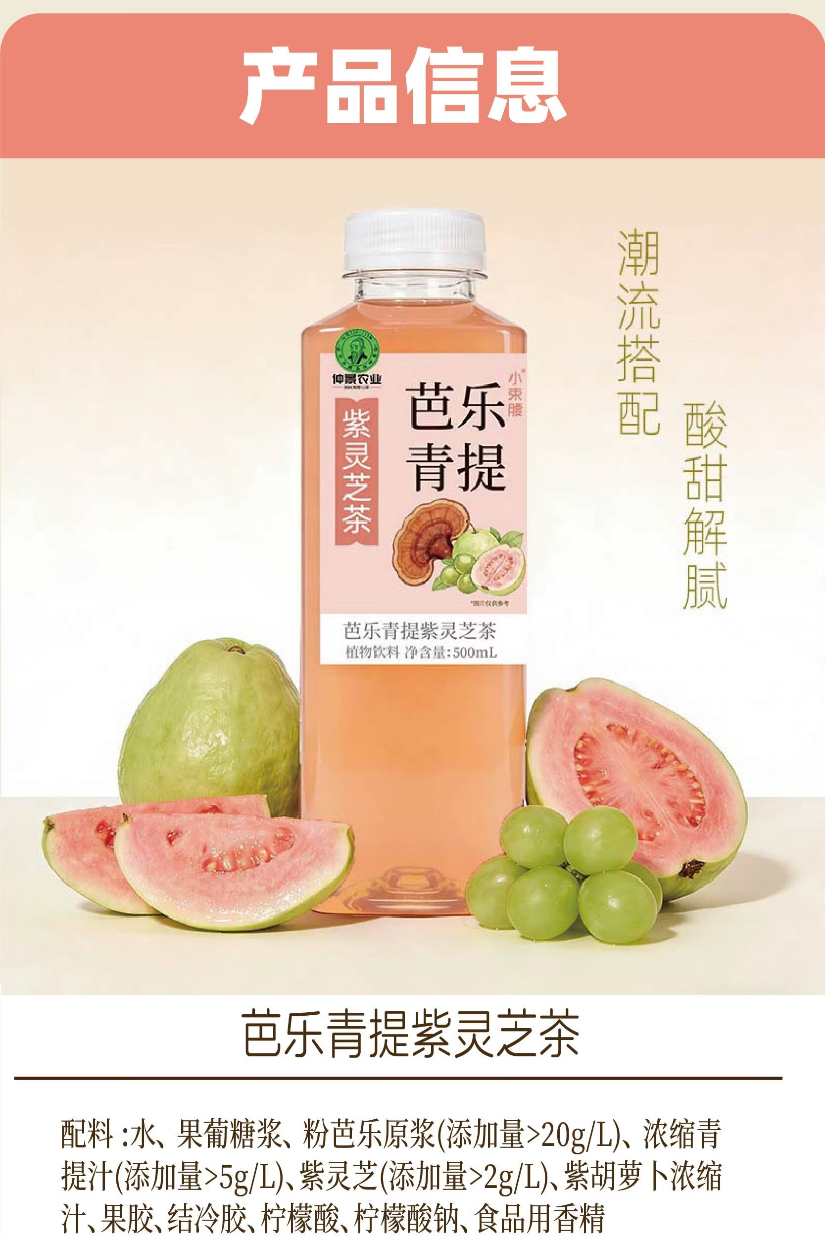 仲景小束腰粉芭乐青提果汁紫灵芝茶植物饮料500ml便携装 粉芭乐青提 5瓶