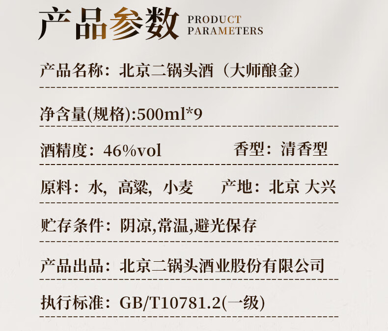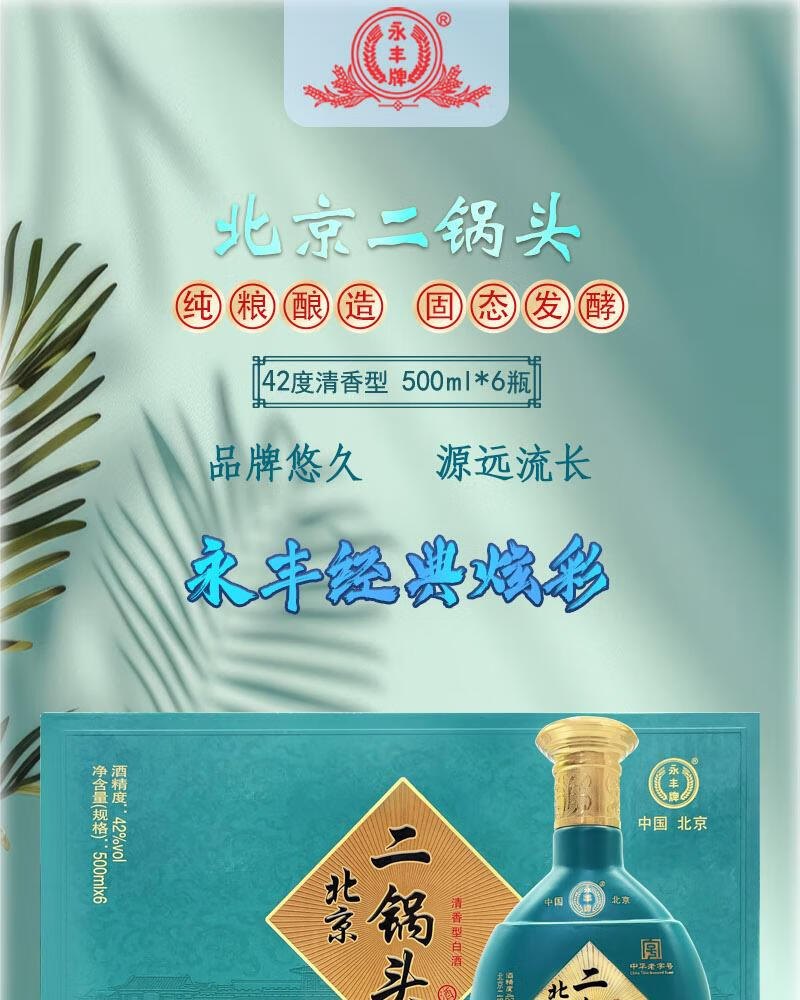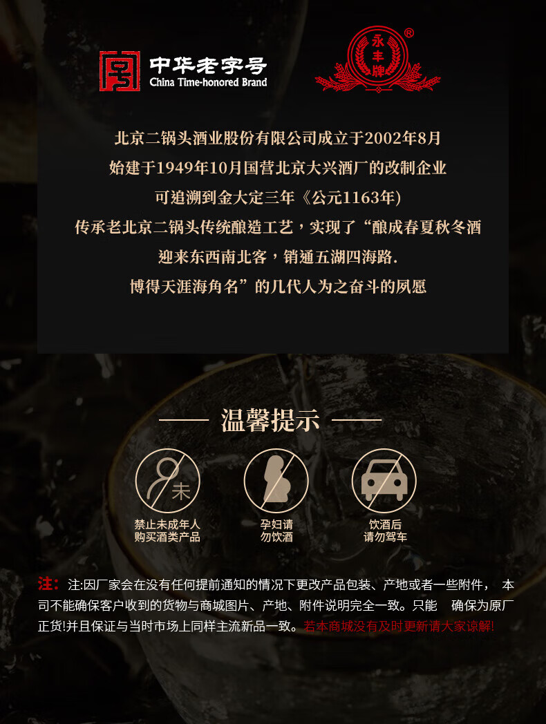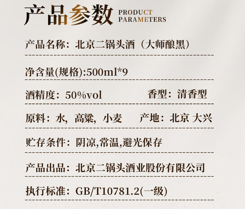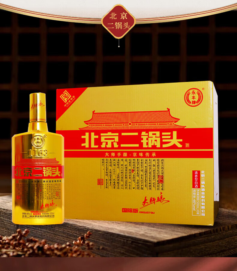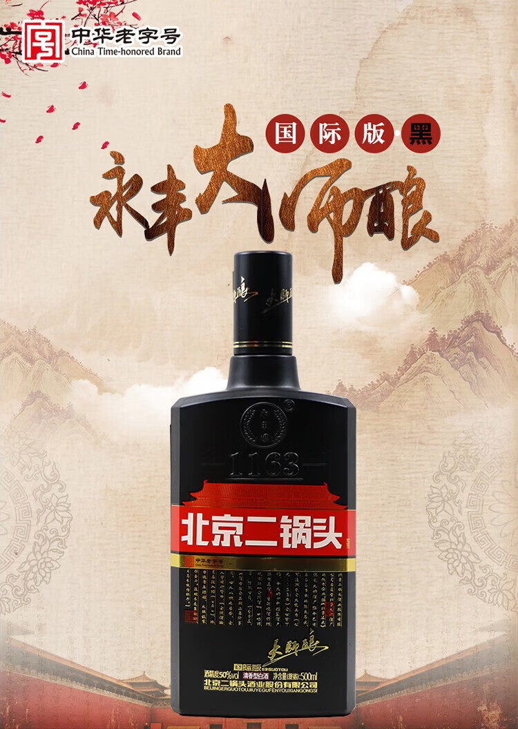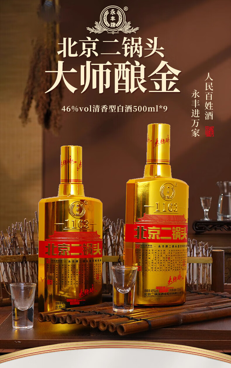 永丰牌北京二锅头永丰 清香型白酒整箱 纯粮酿造 50度 500mL 9瓶 大师黑