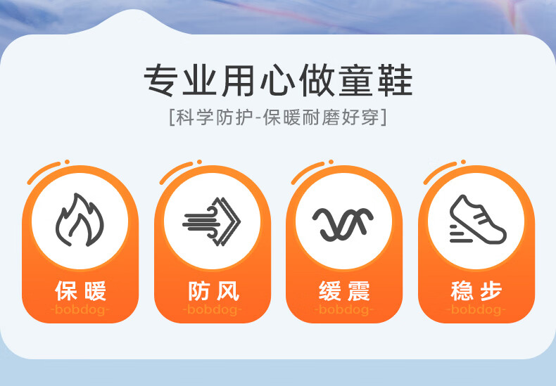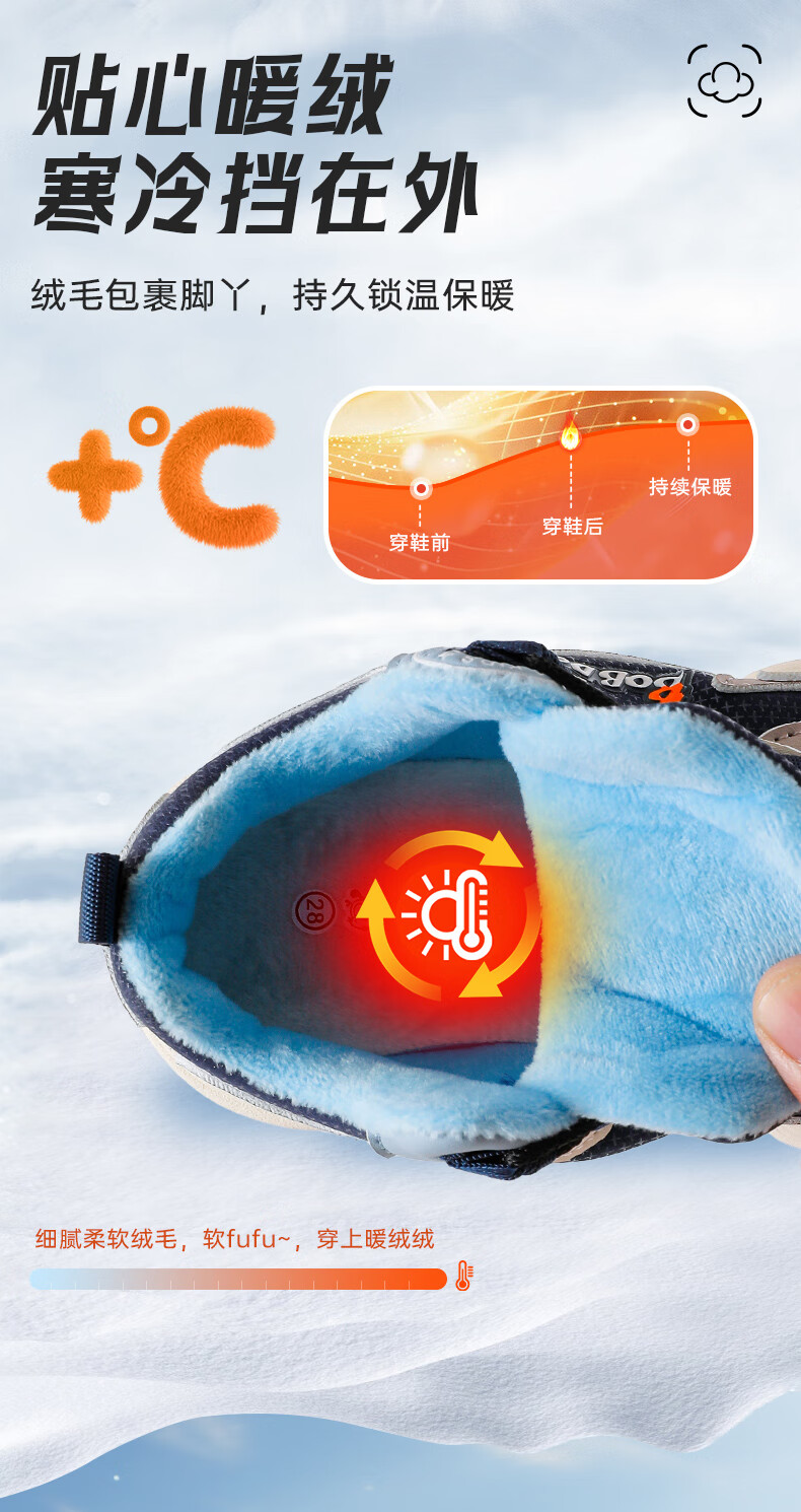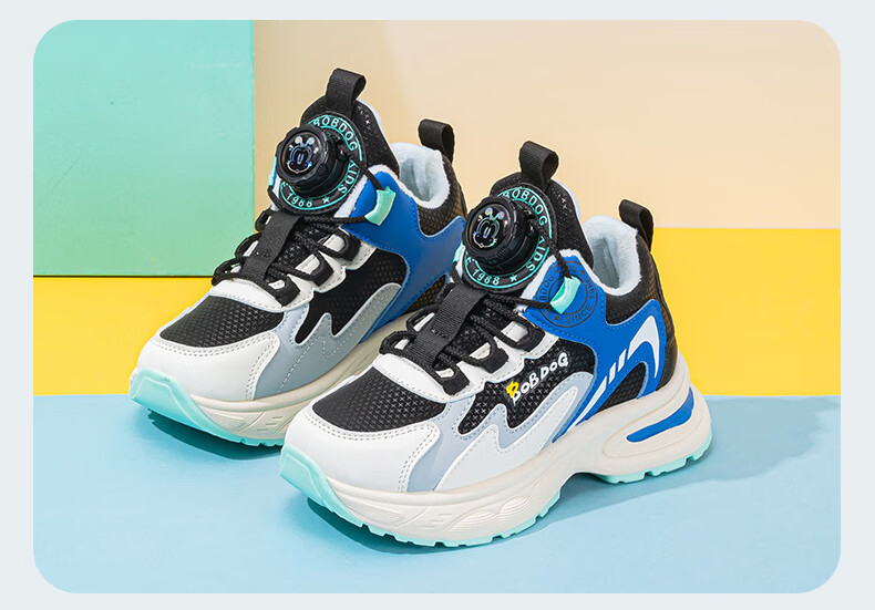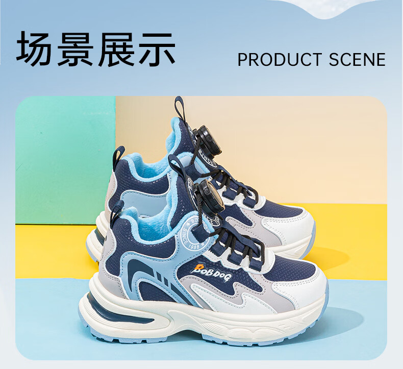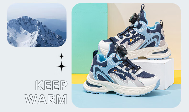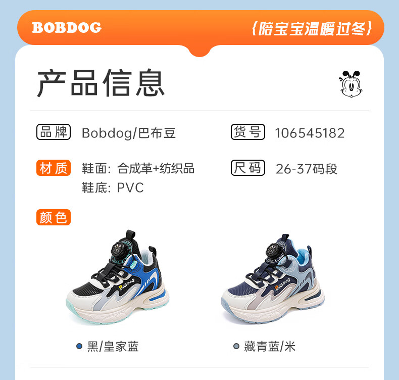 巴布豆童鞋男童冬季新款老爹鞋加绒保暖旋钮扣儿童运动鞋休闲百搭跑鞋 藏青蓝/米 32 适合脚长19.8cm