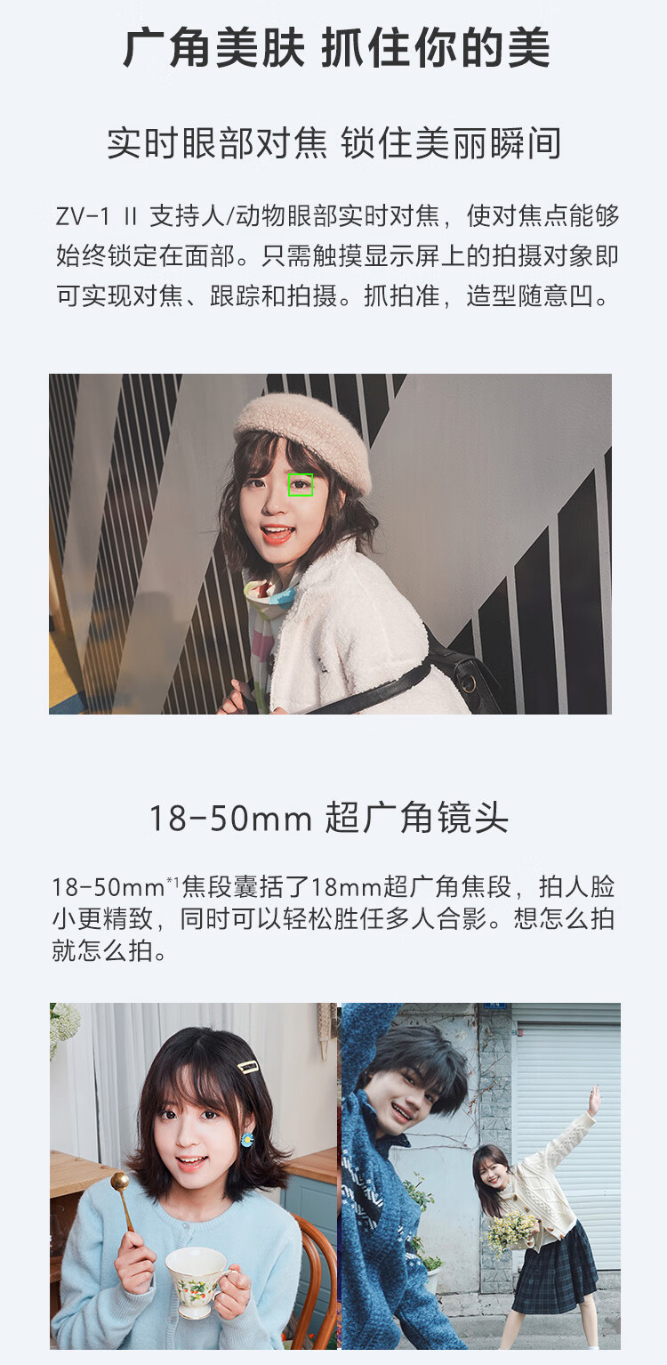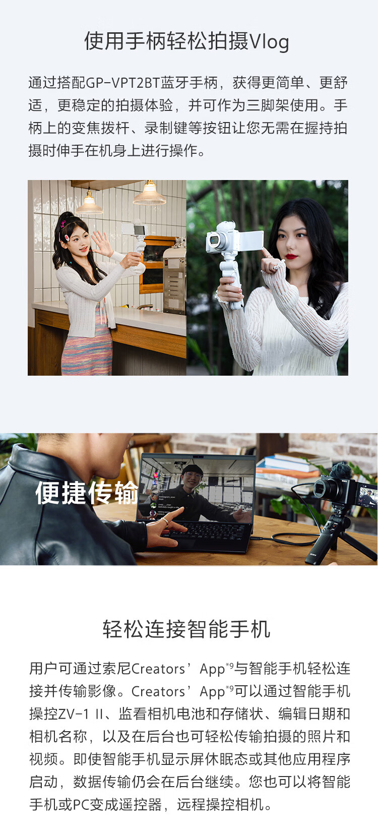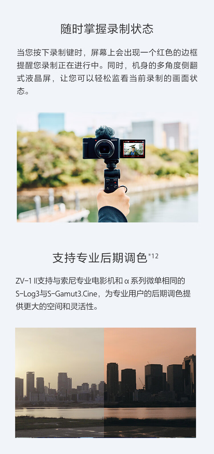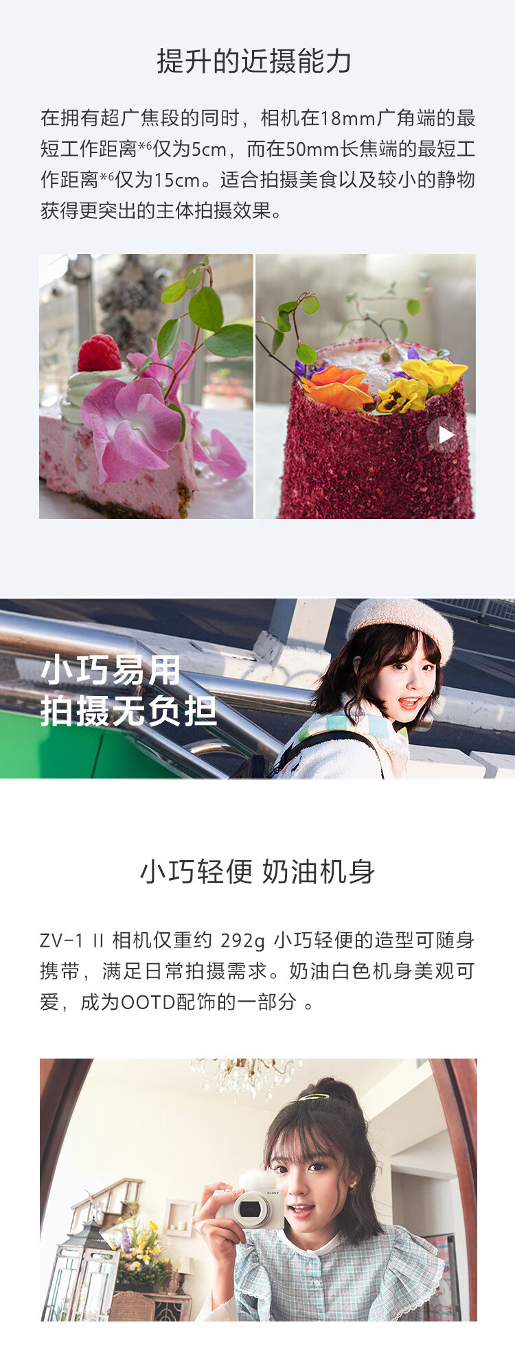 索尼(SONY)【官方直营】 索尼ZV-1 II 超广角变焦Vlog相机 新一代Vlog相机 ZV-1M2 数码相机 卡片机 白色单机身
