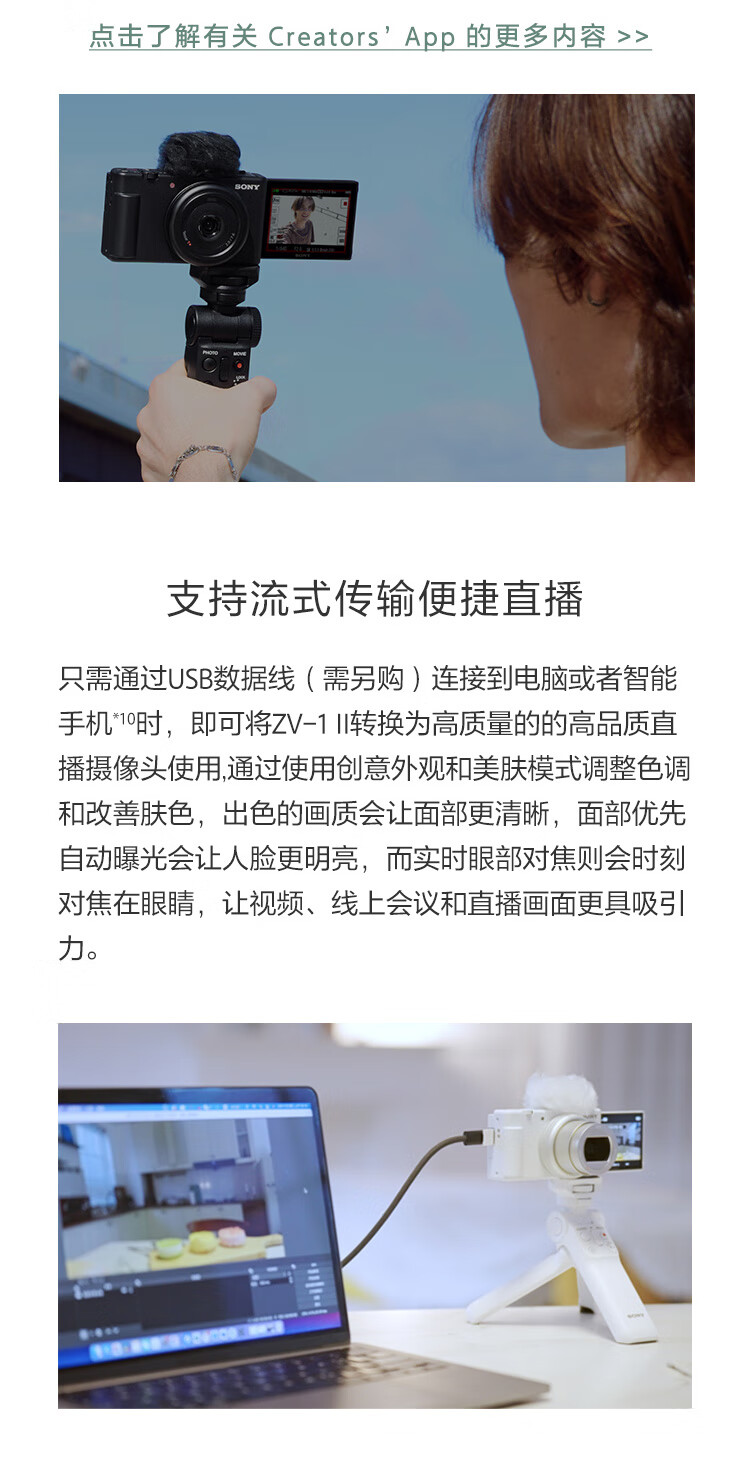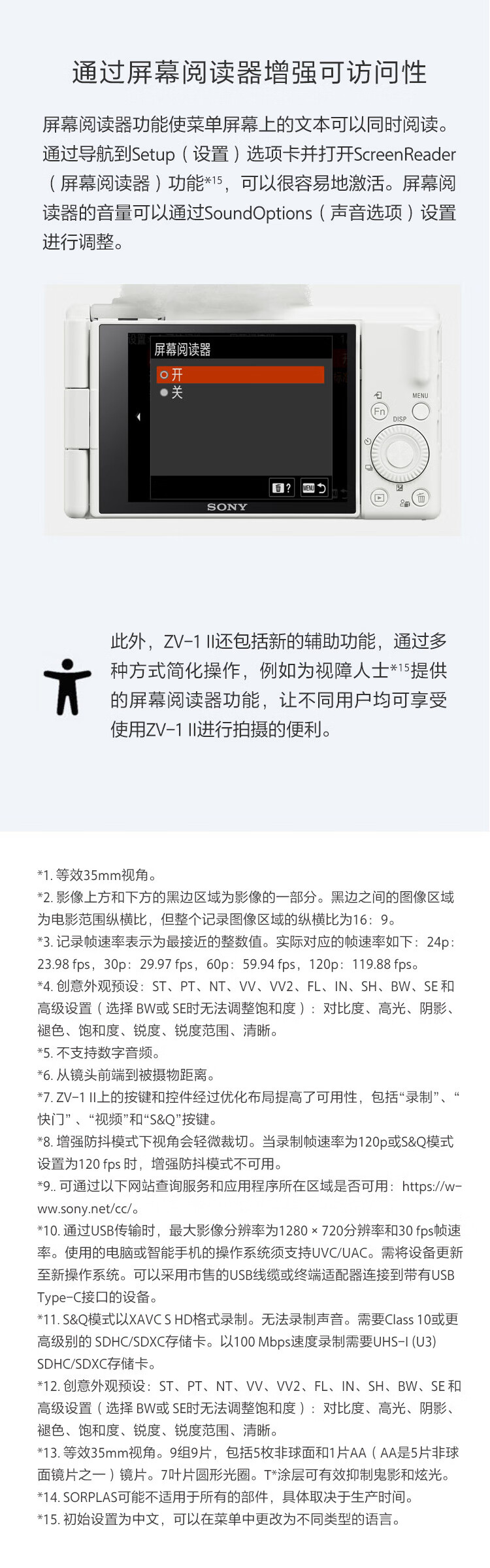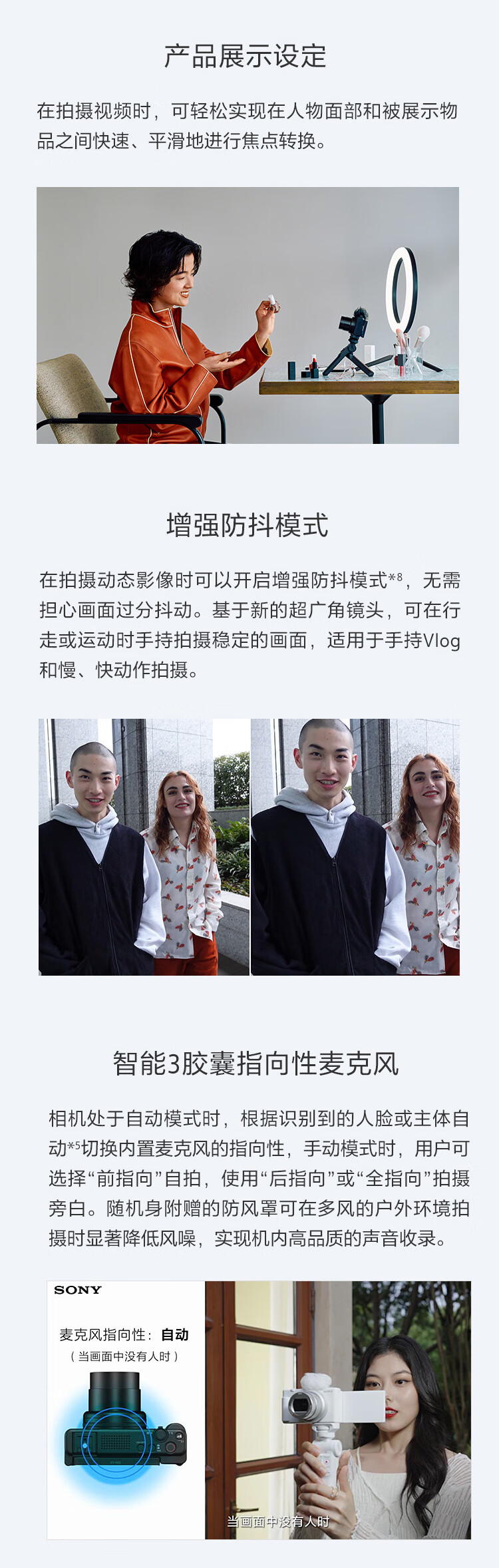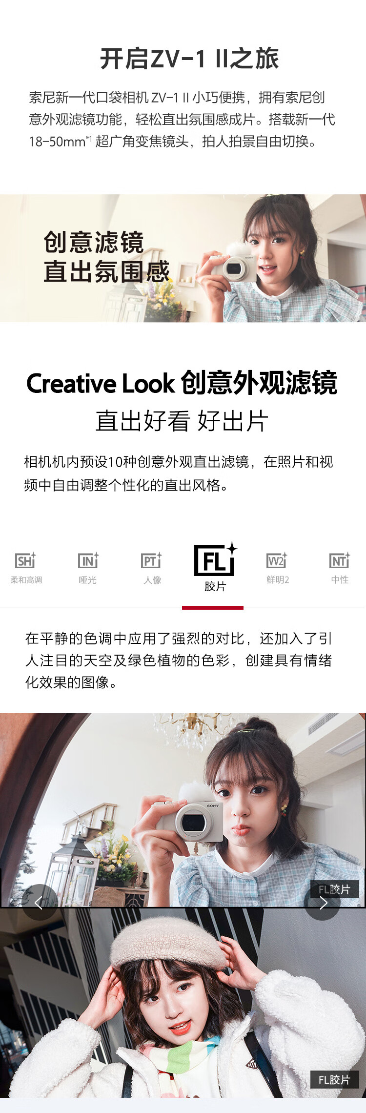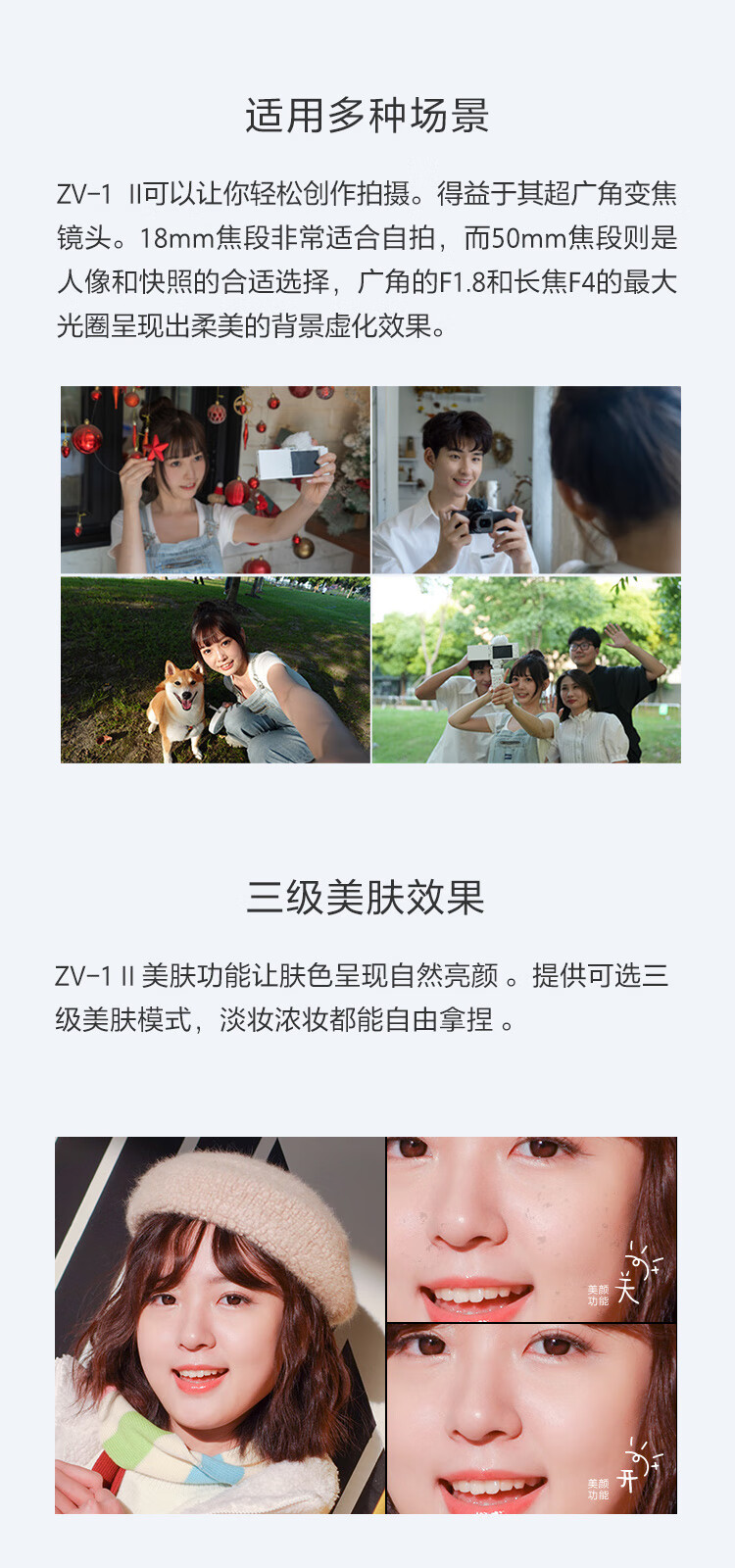 索尼(SONY)【官方直营】 索尼ZV-1 II 超广角变焦Vlog相机 新一代Vlog相机 ZV-1M2 数码相机 卡片机 白色单机身
