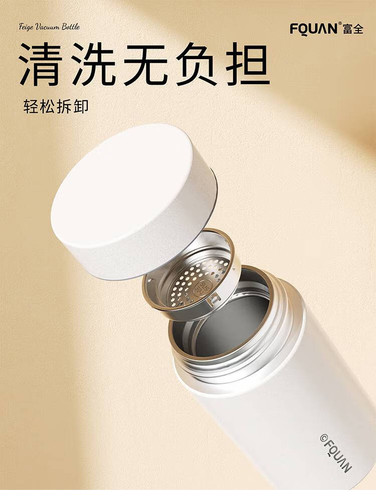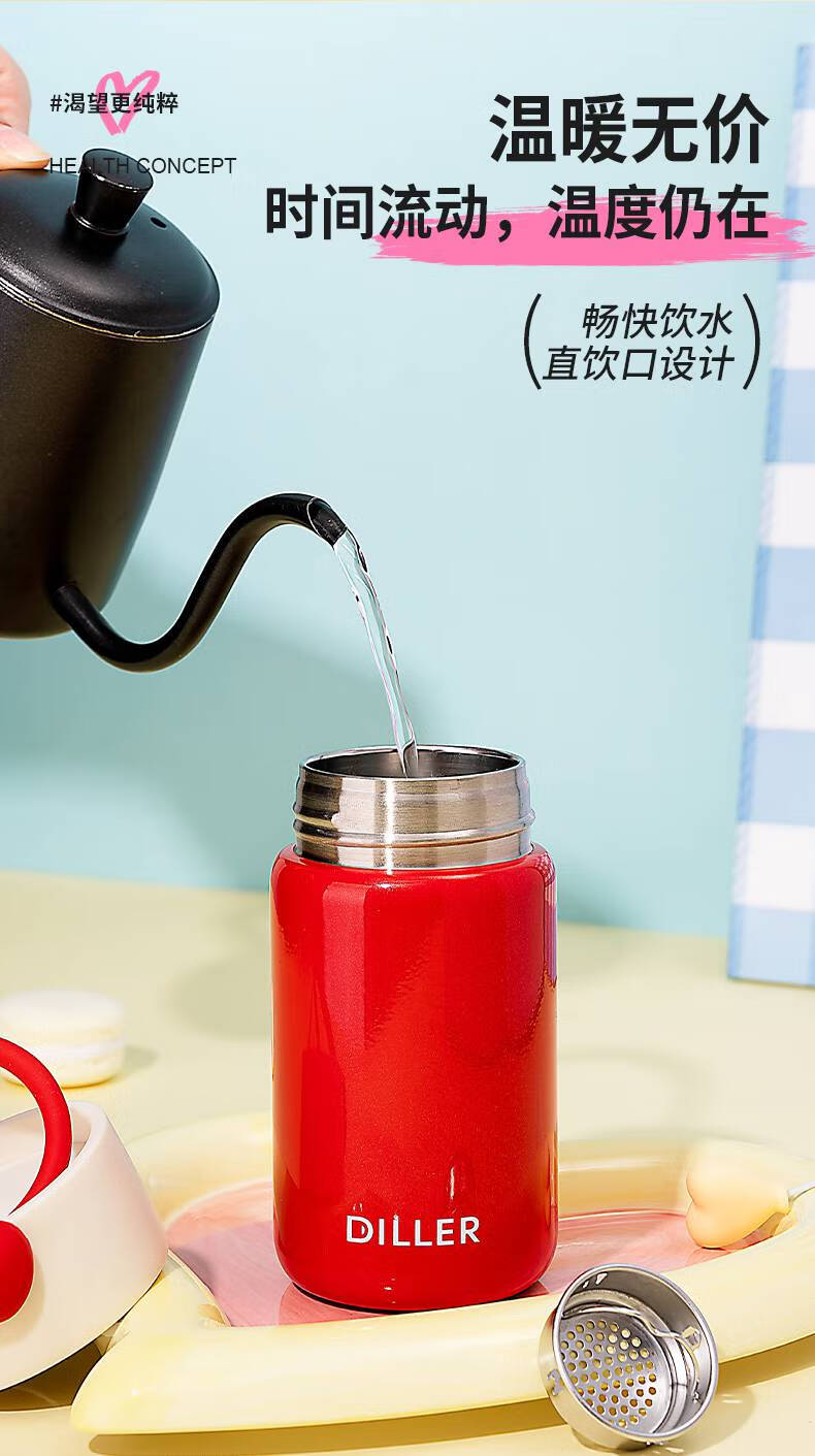 富光咖啡杯保温杯不锈钢水杯男女士精致便携高颜值情侣杯圣诞节日礼物 枣泥红 420ml 【升级陶瓷内胆】