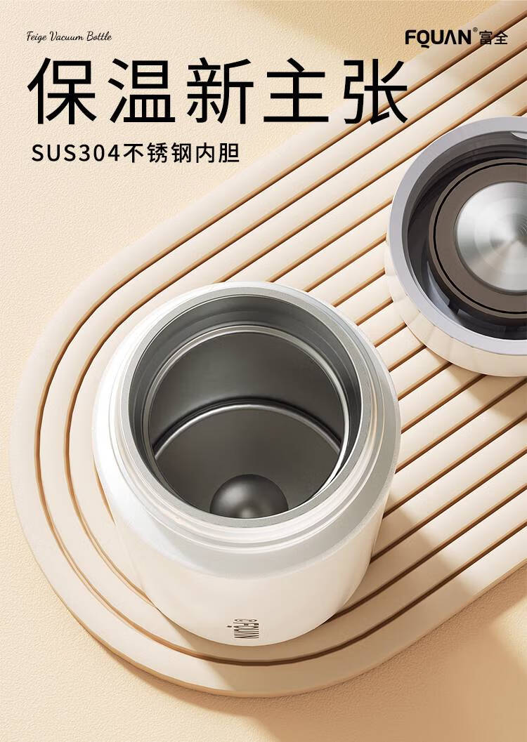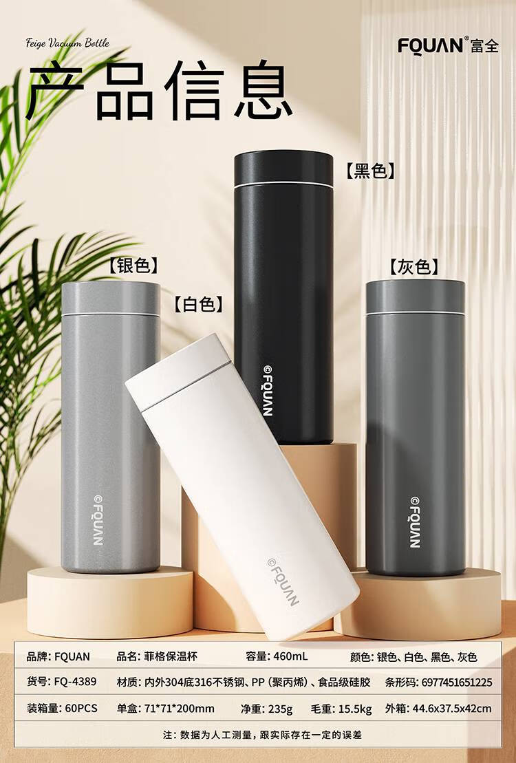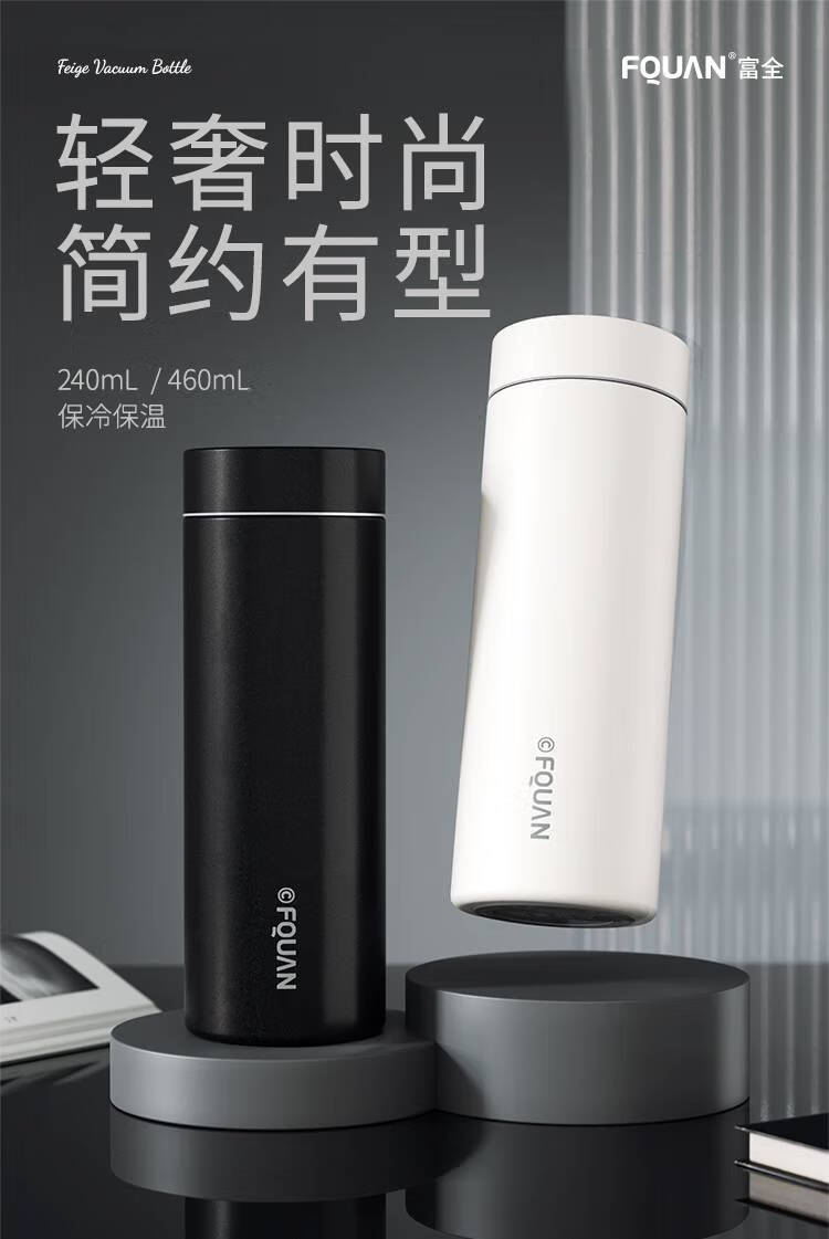 富光 男女士真空不锈钢保温杯 旅行运动水杯子 便携式车载办公茶杯 幽冥黑 500ml