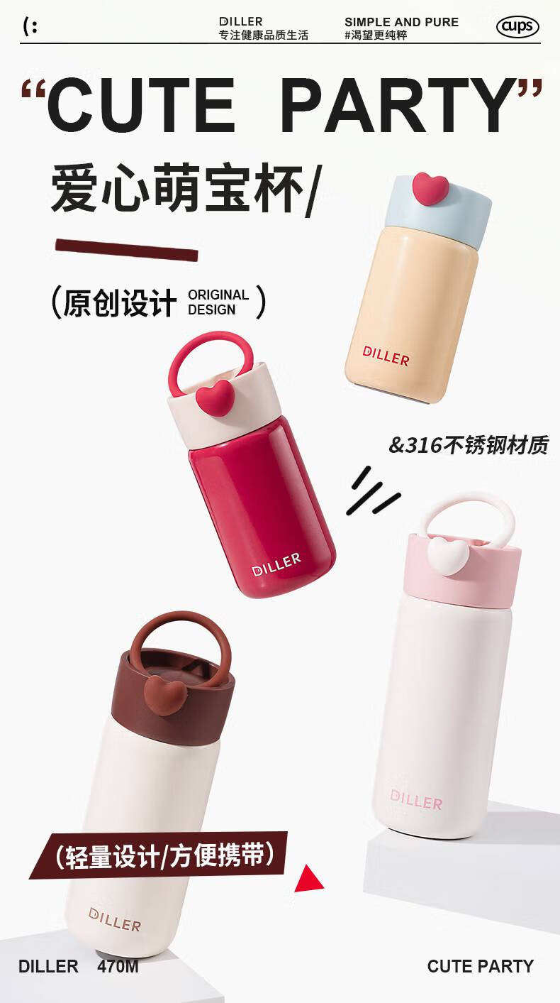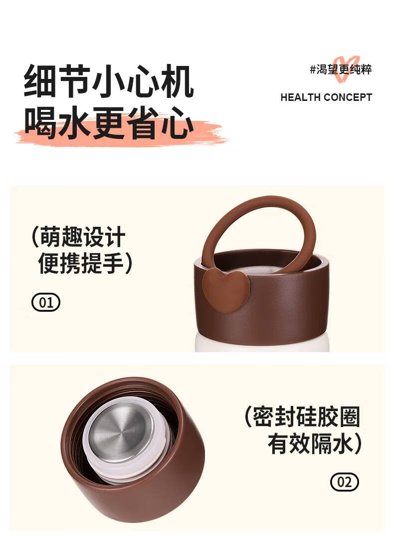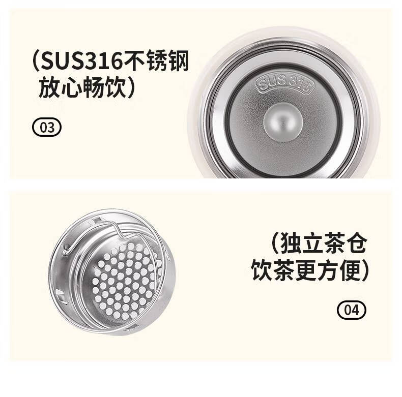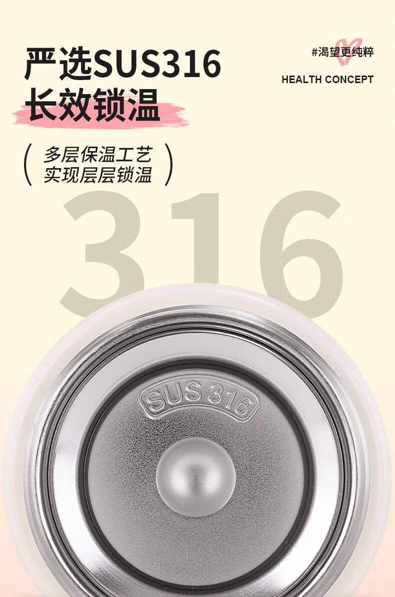 物生物儿童保温杯女士高颜值吸管水杯316L不锈钢大容量学生上学圣诞礼物 甜巧麻薯【一盖双饮】380ml